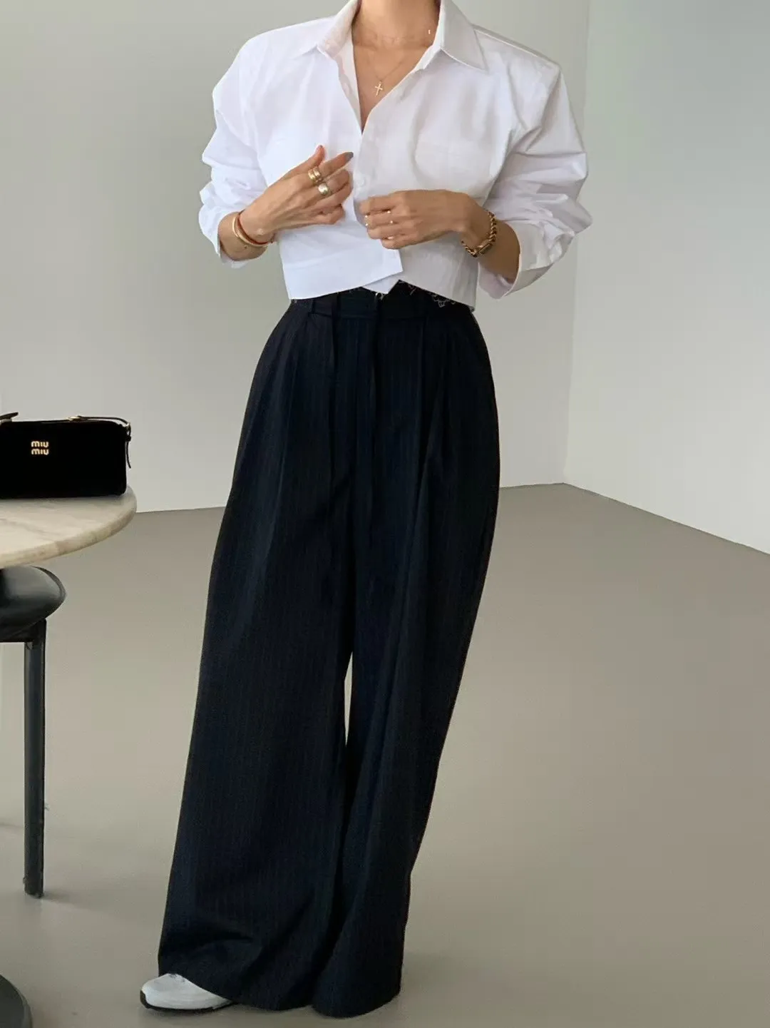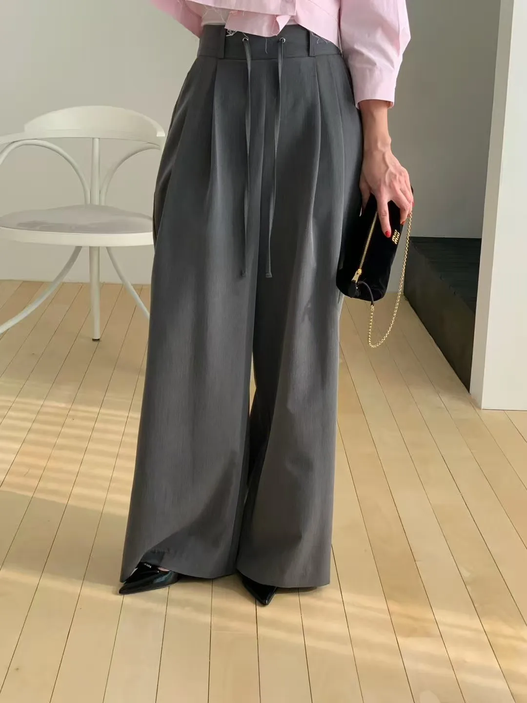 26CA10 後鬆緊打褶瘦腰西裝長褲 3色