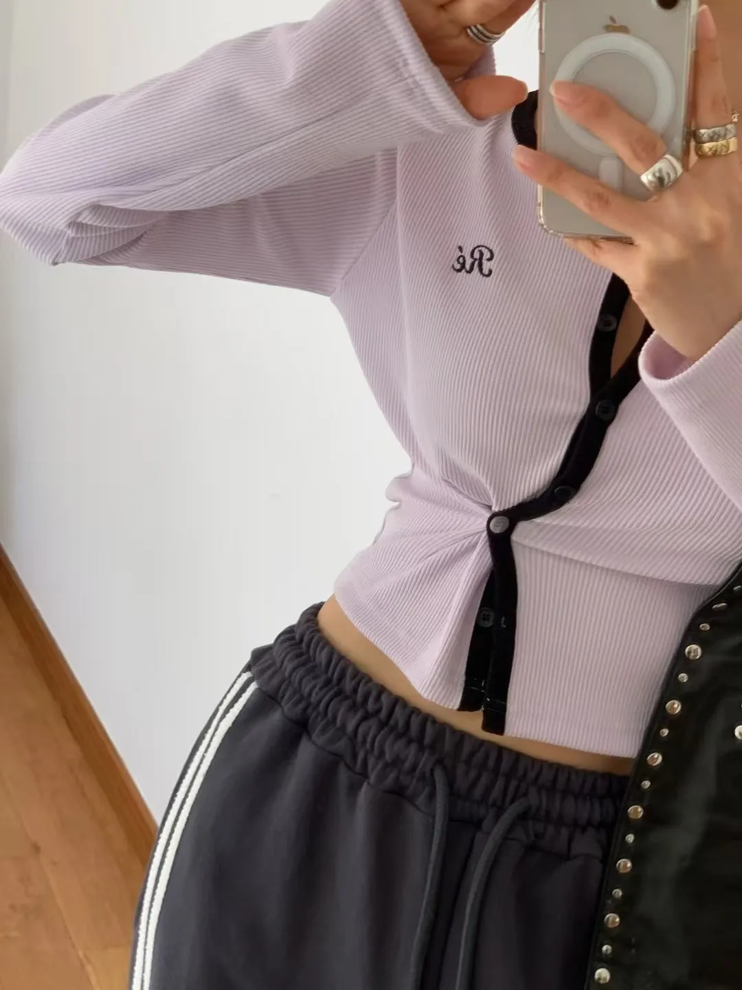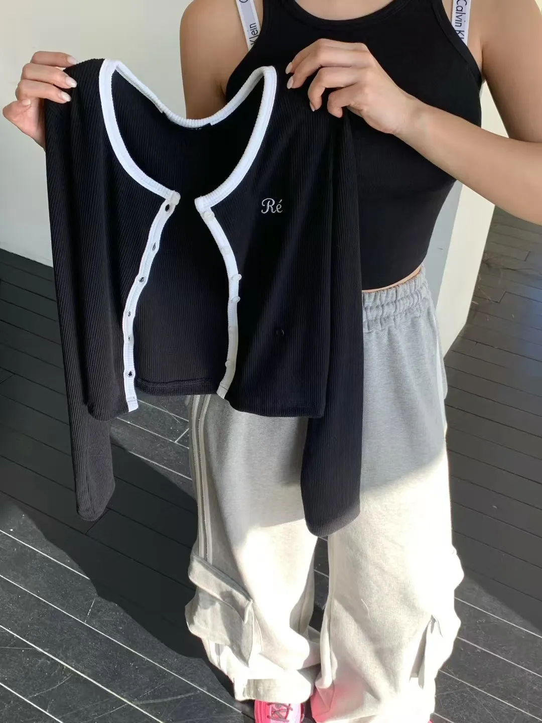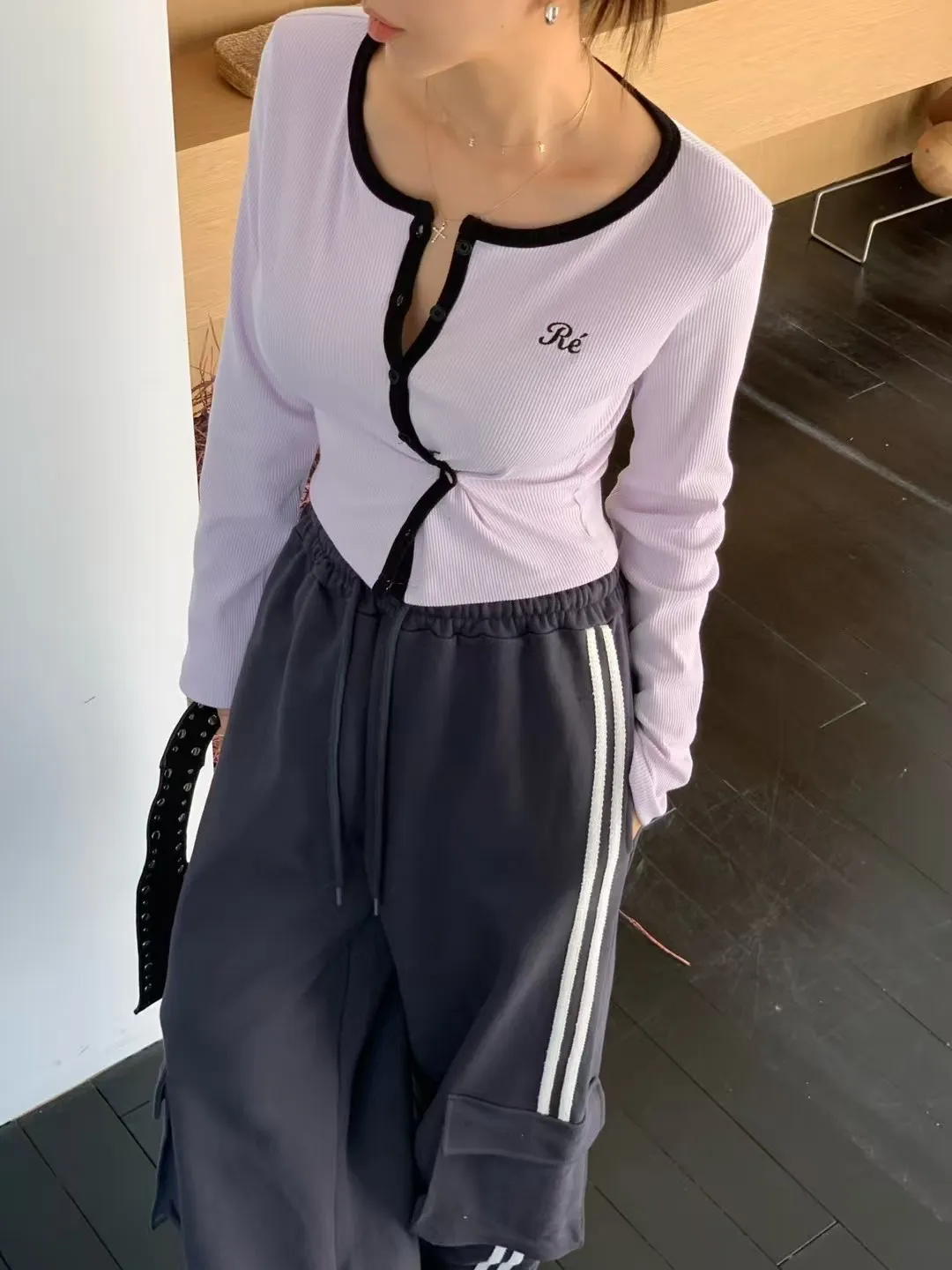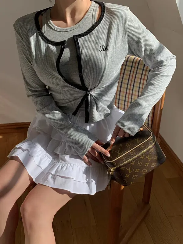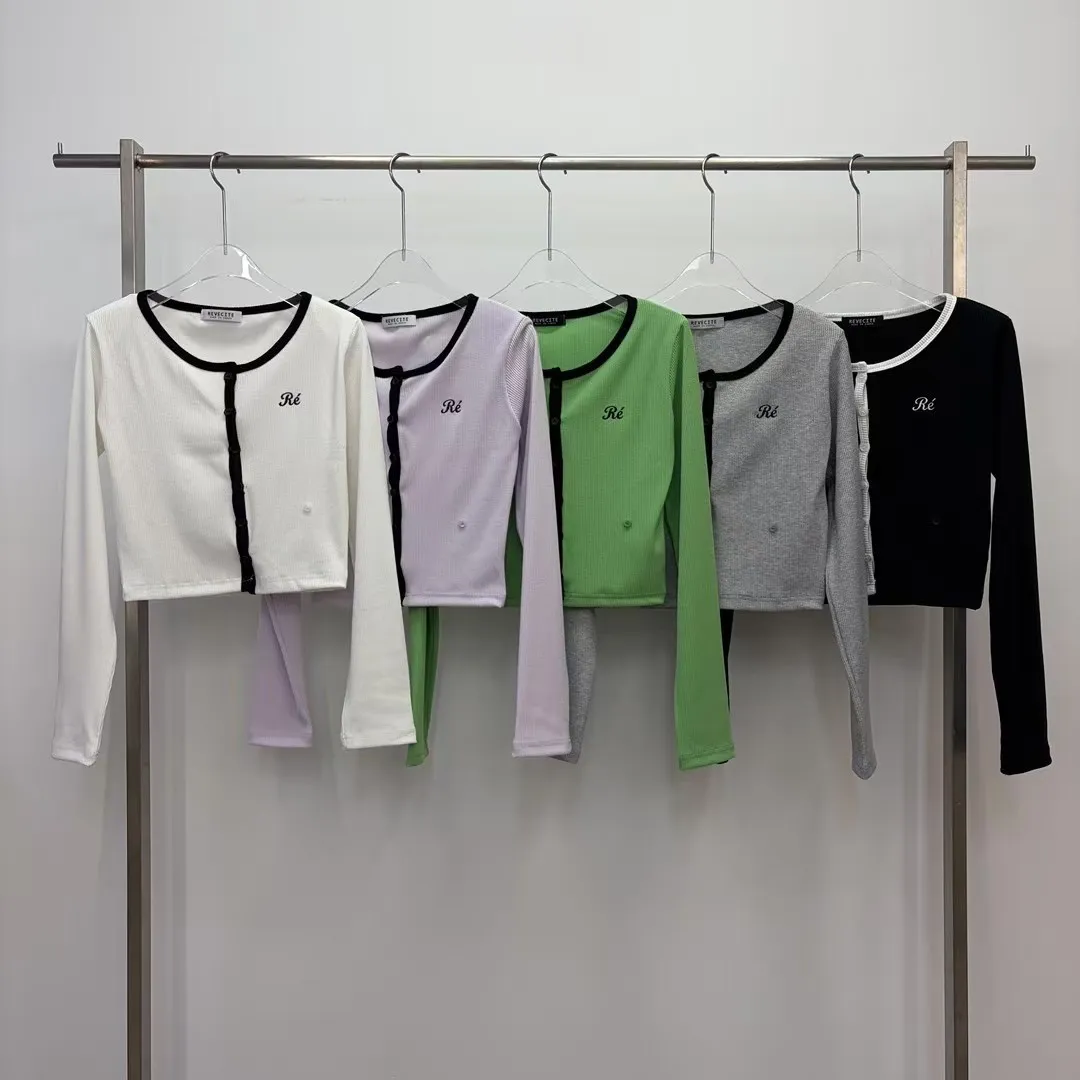 26CA15 滾邊坑條開襟排扣長T 5色