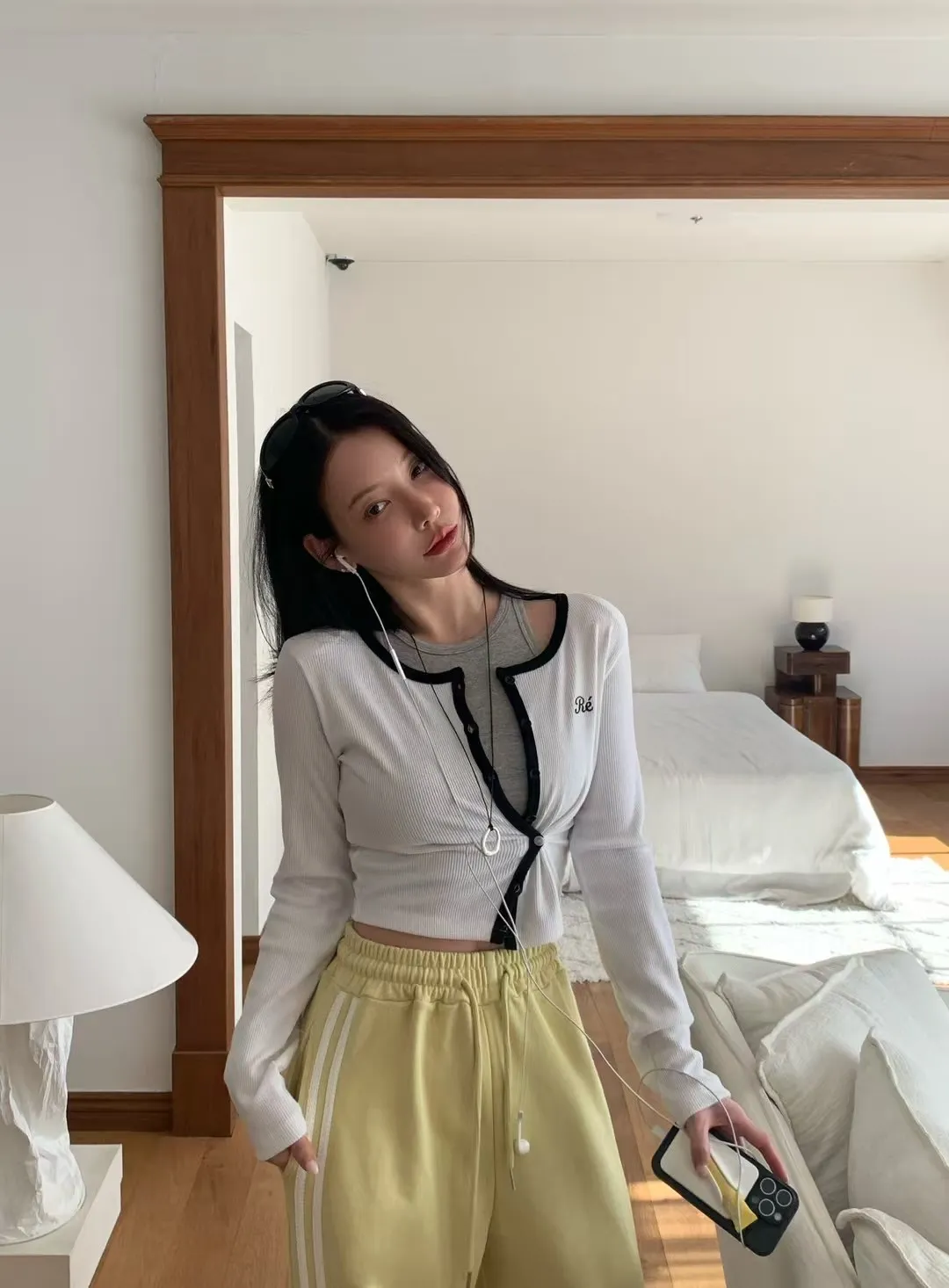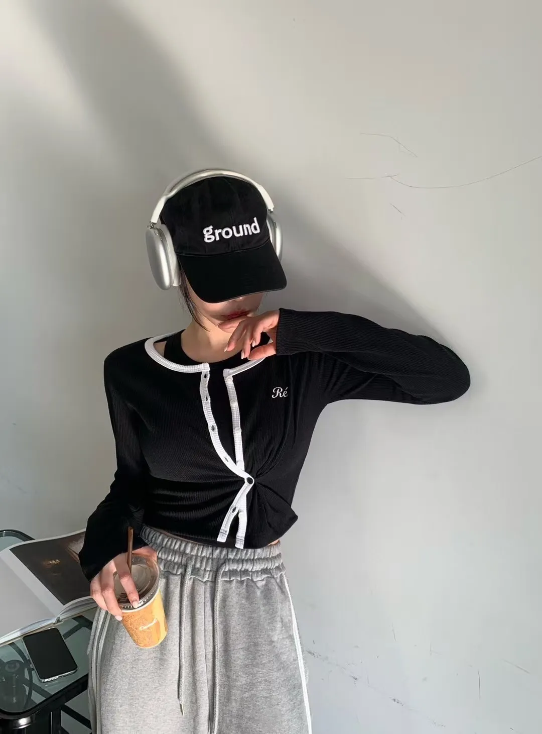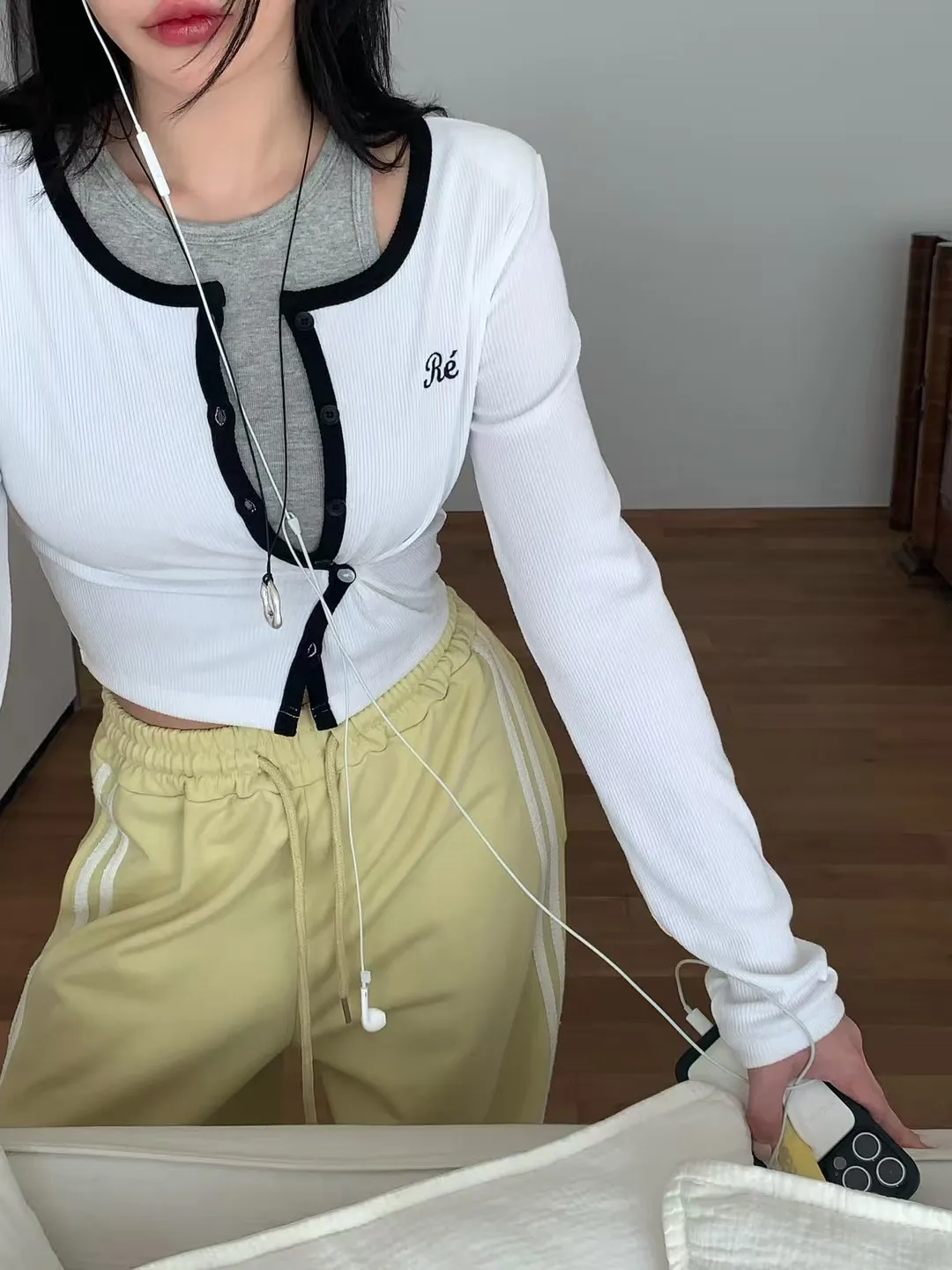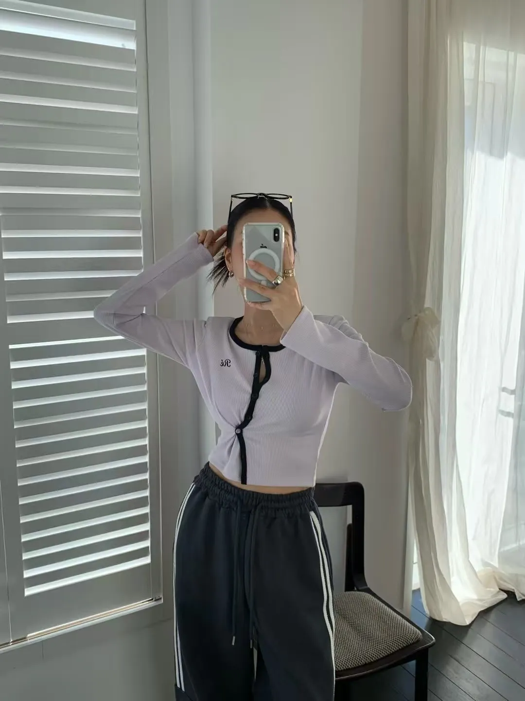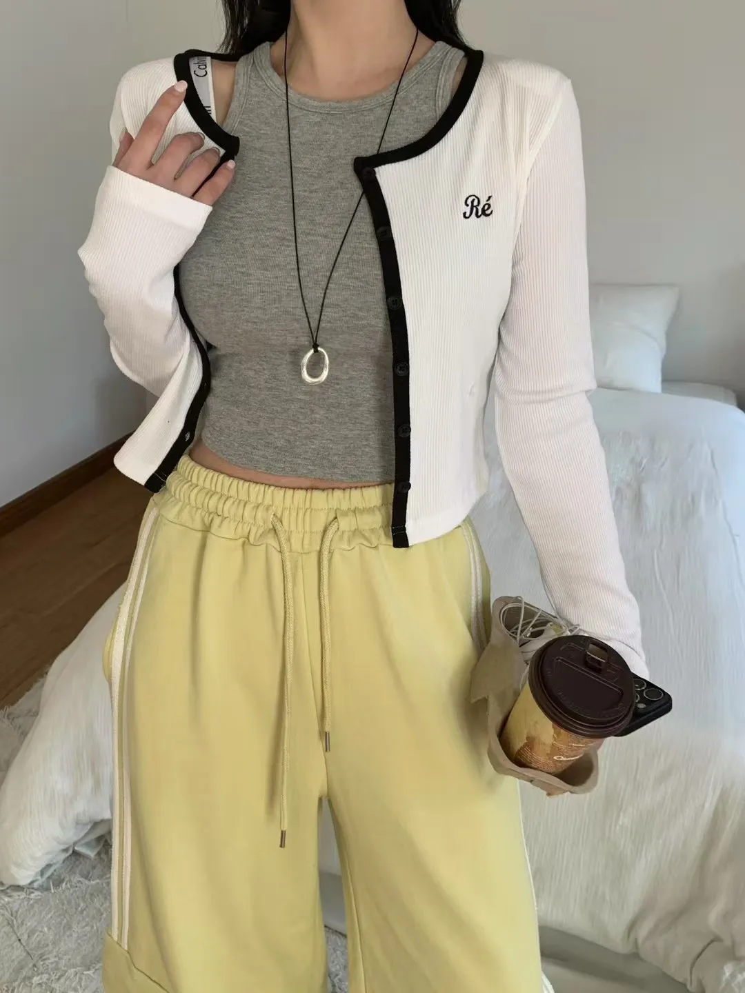 26CA15 滾邊坑條開襟排扣長T 5色