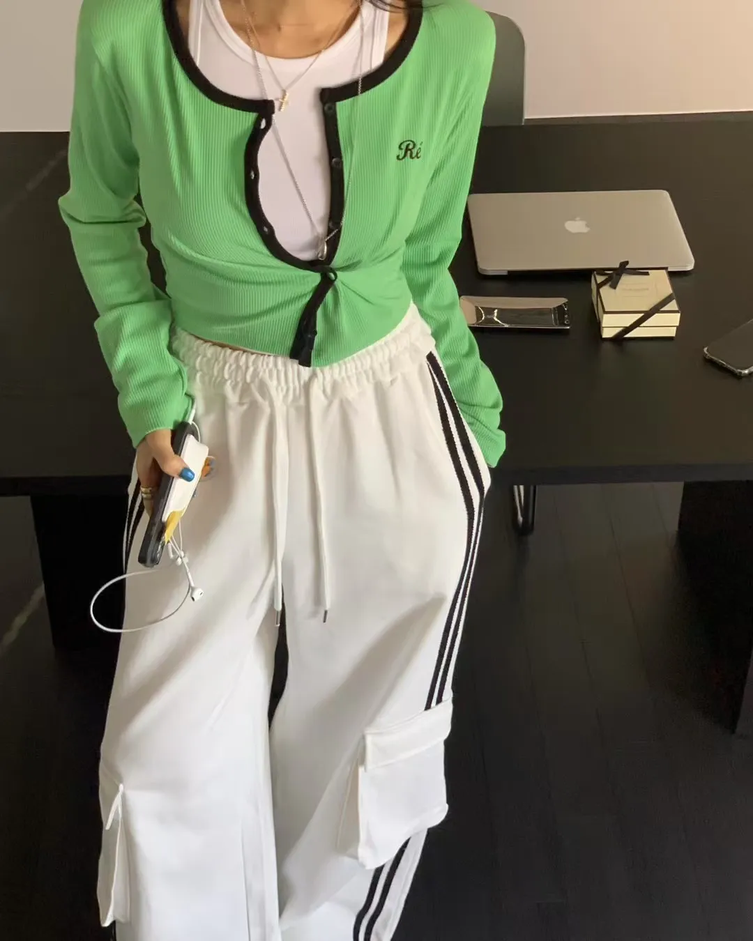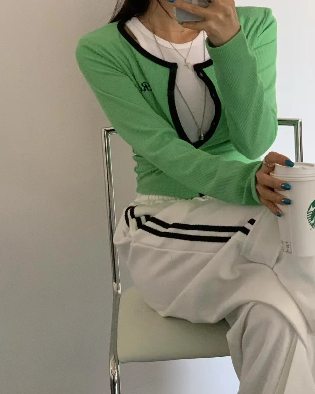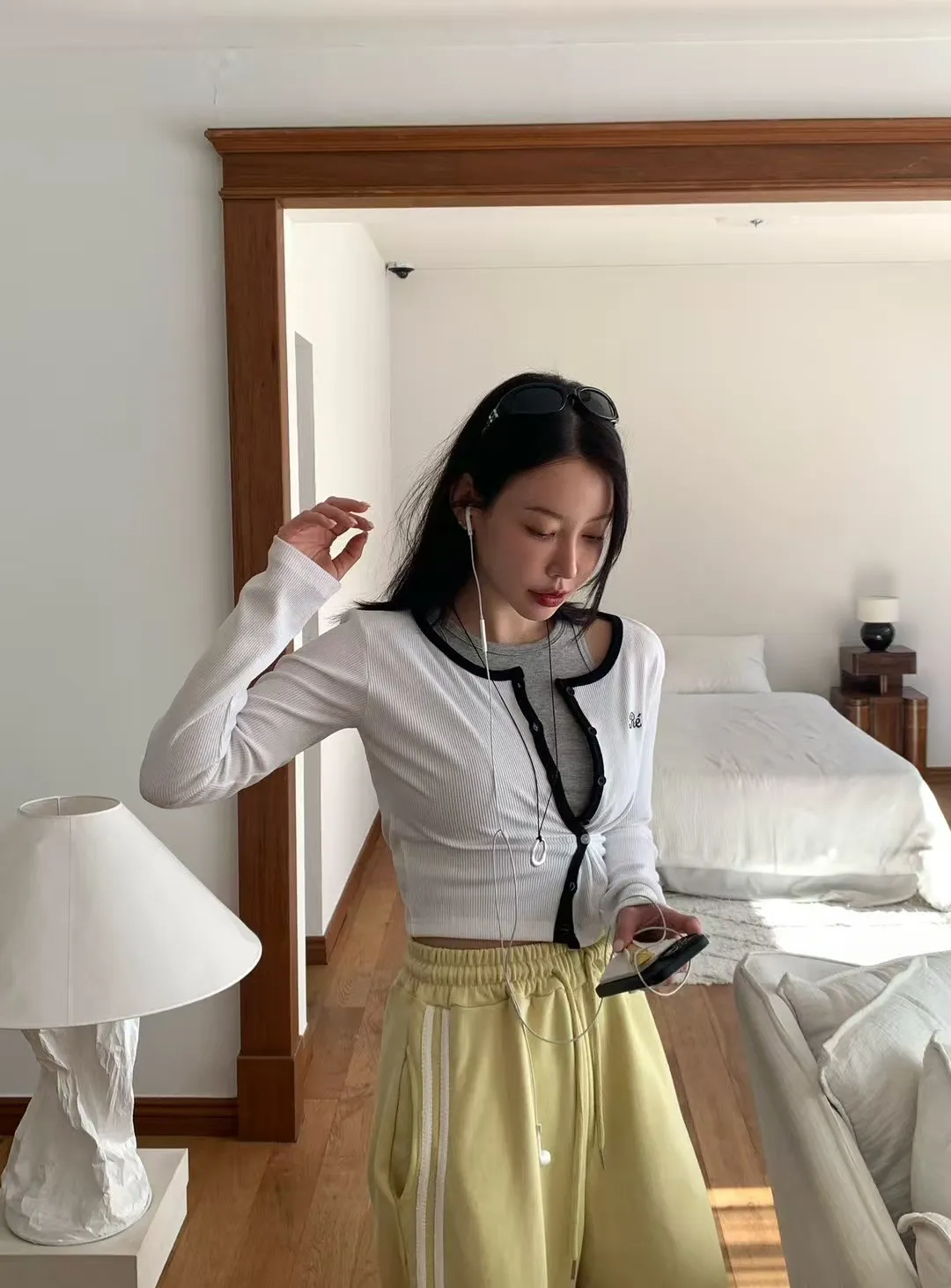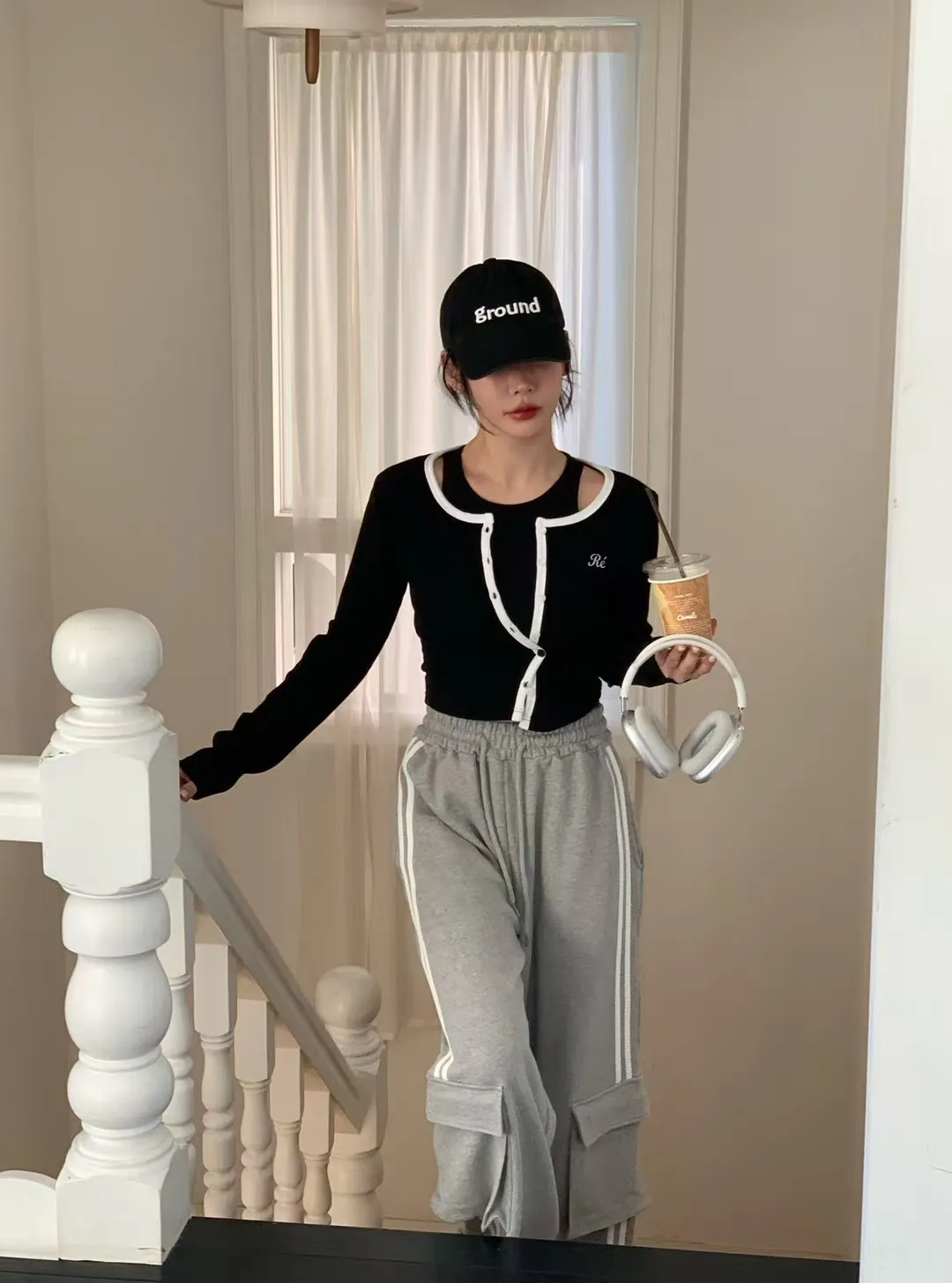 26CA15 滾邊坑條開襟排扣長T 5色