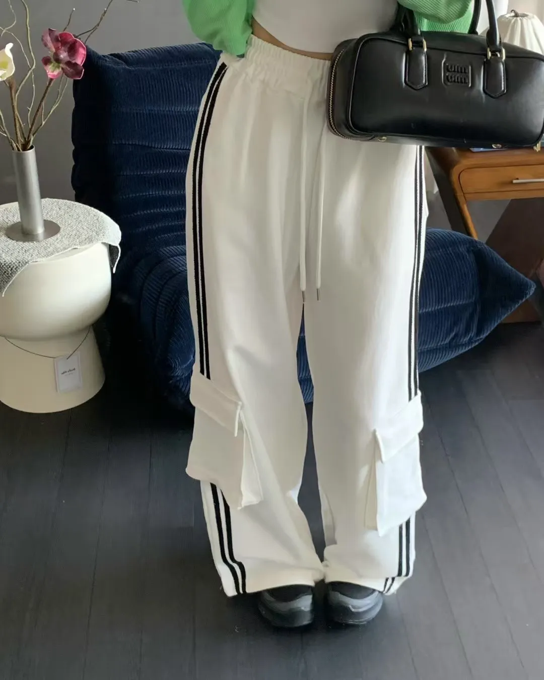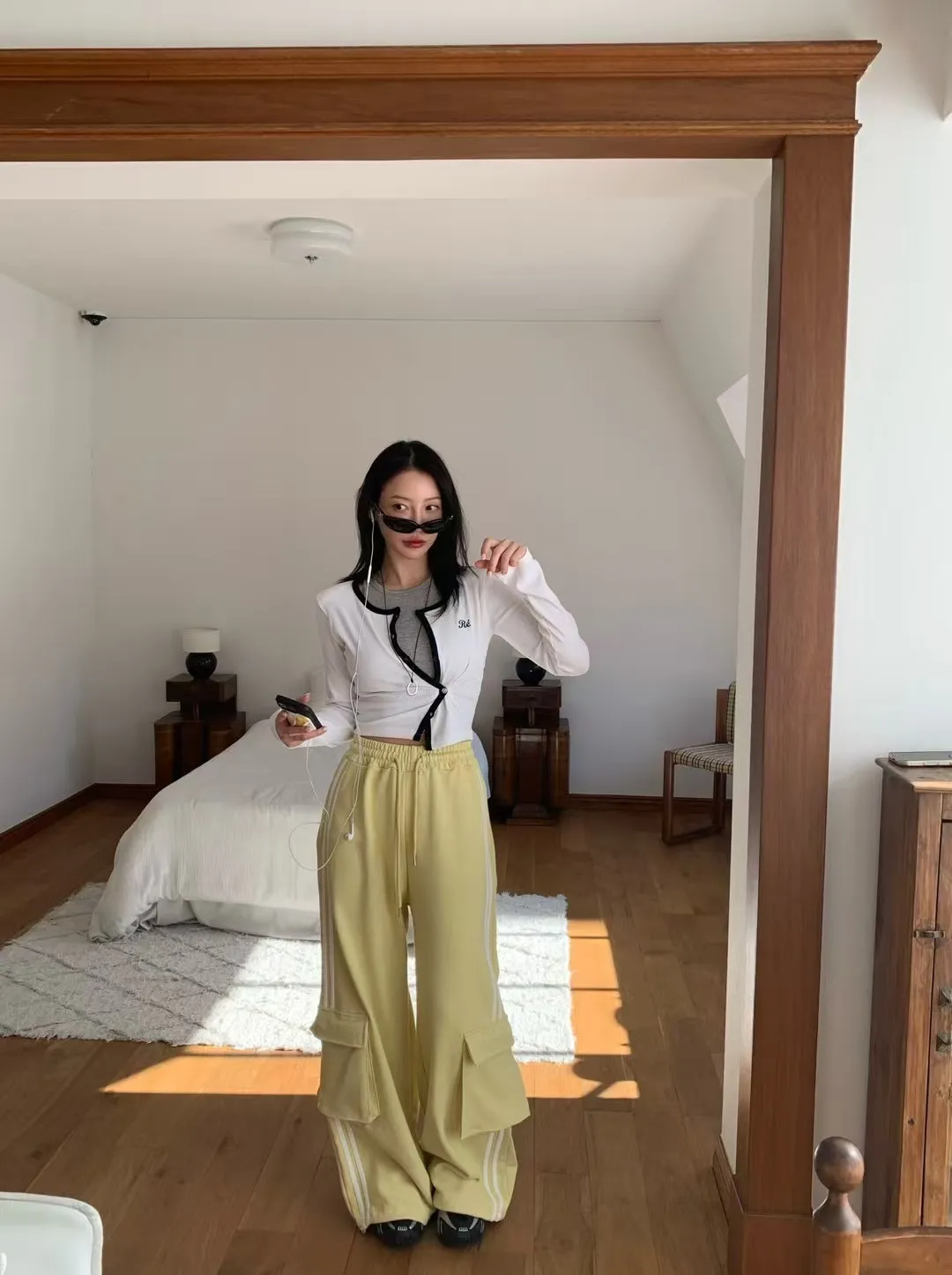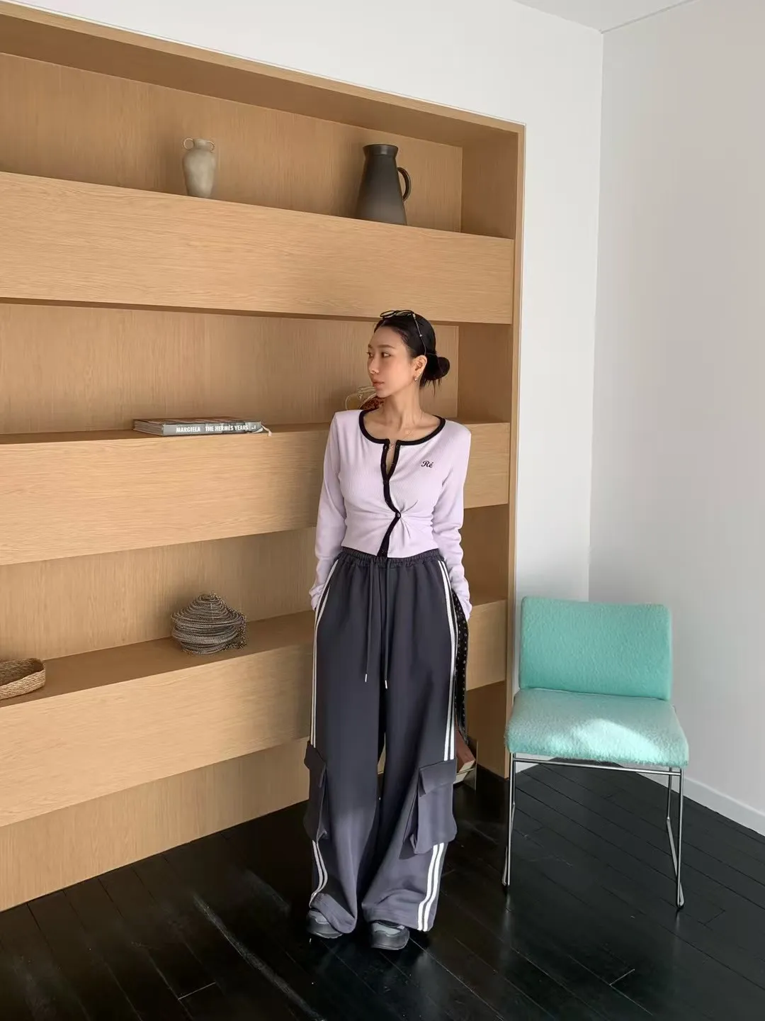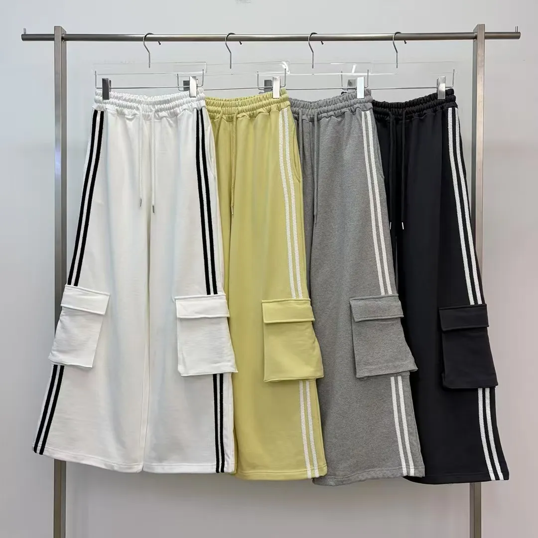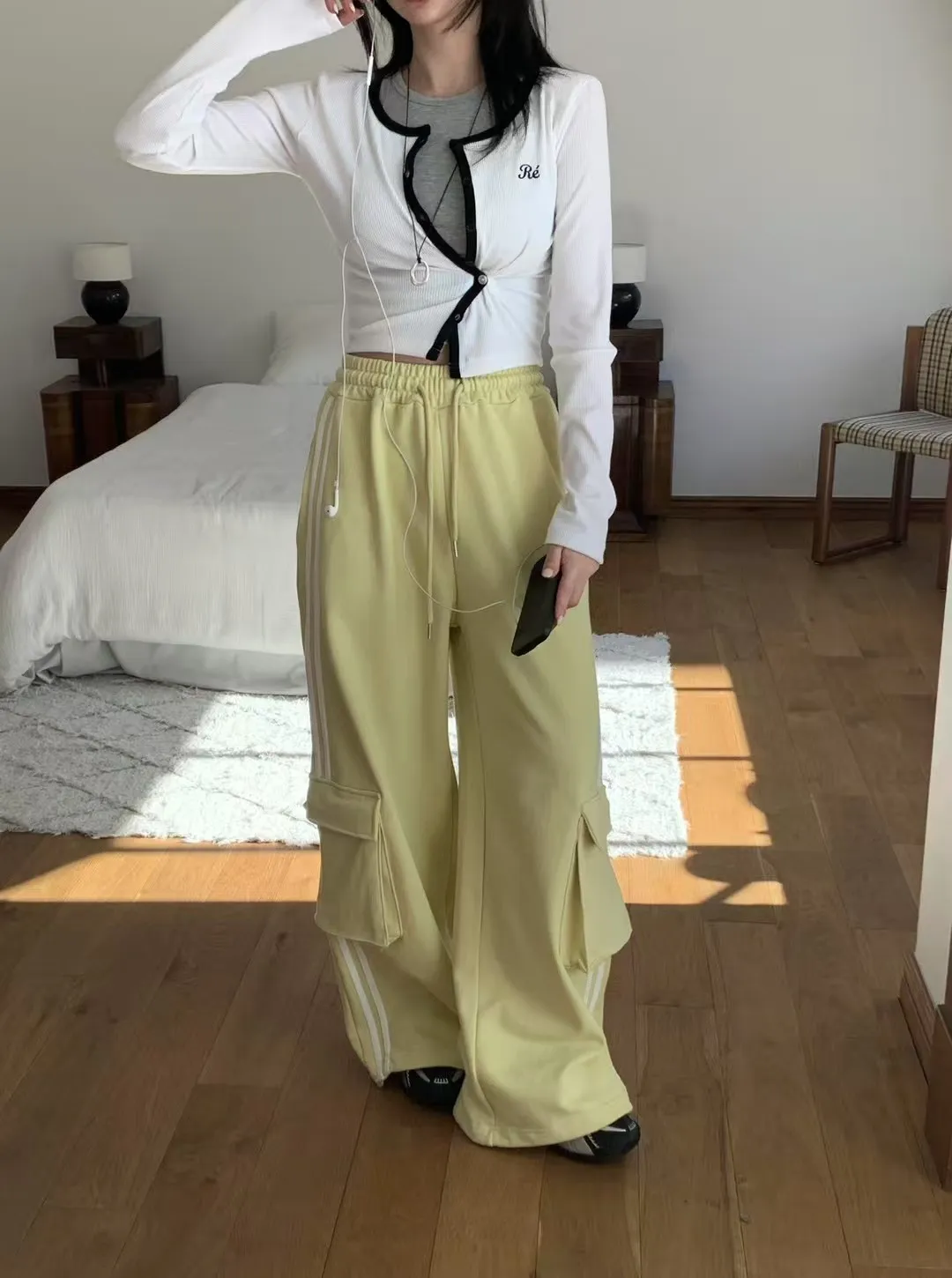 26CA16 邊條大工裝口袋薄毛巾兩穿縮腳長褲 4色