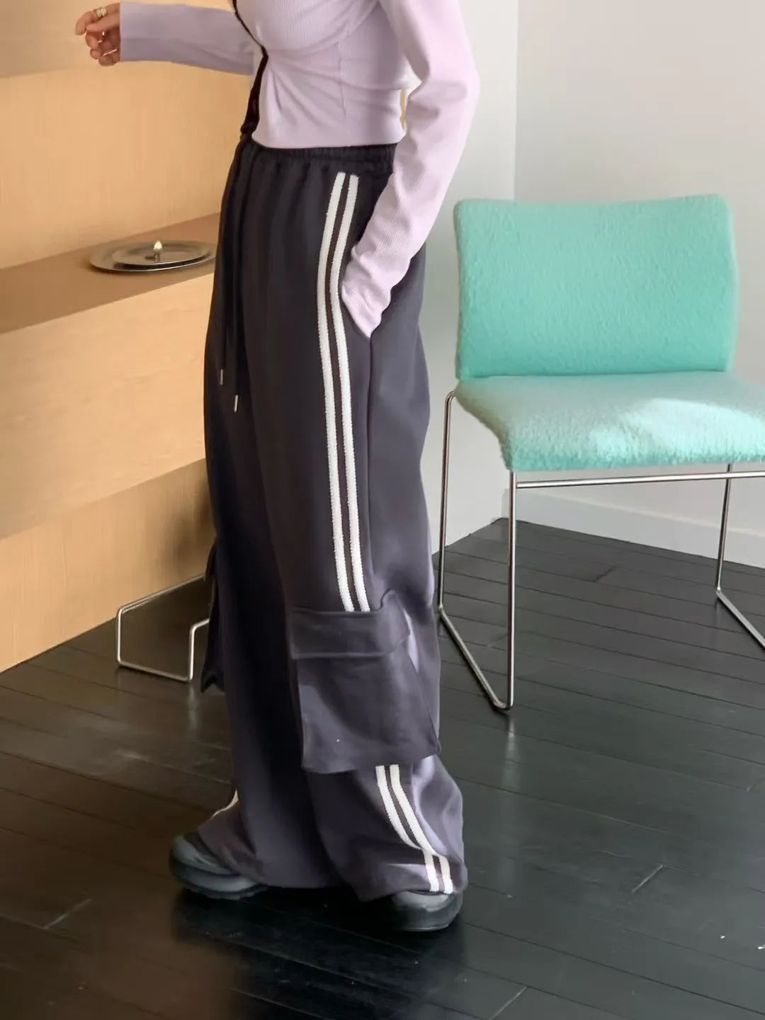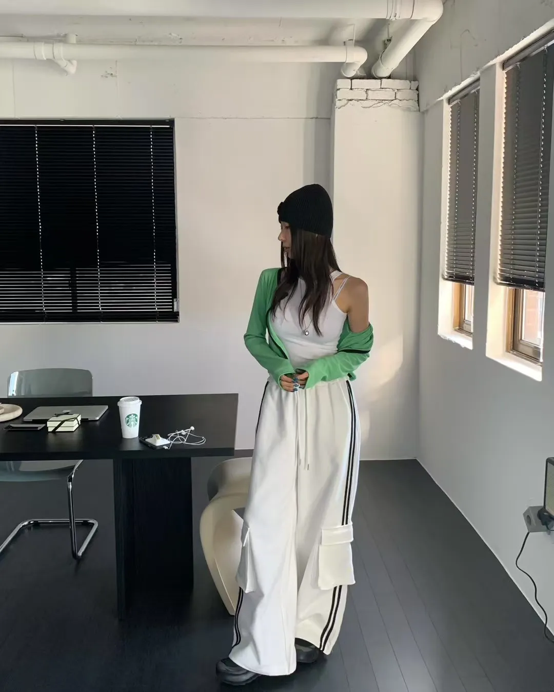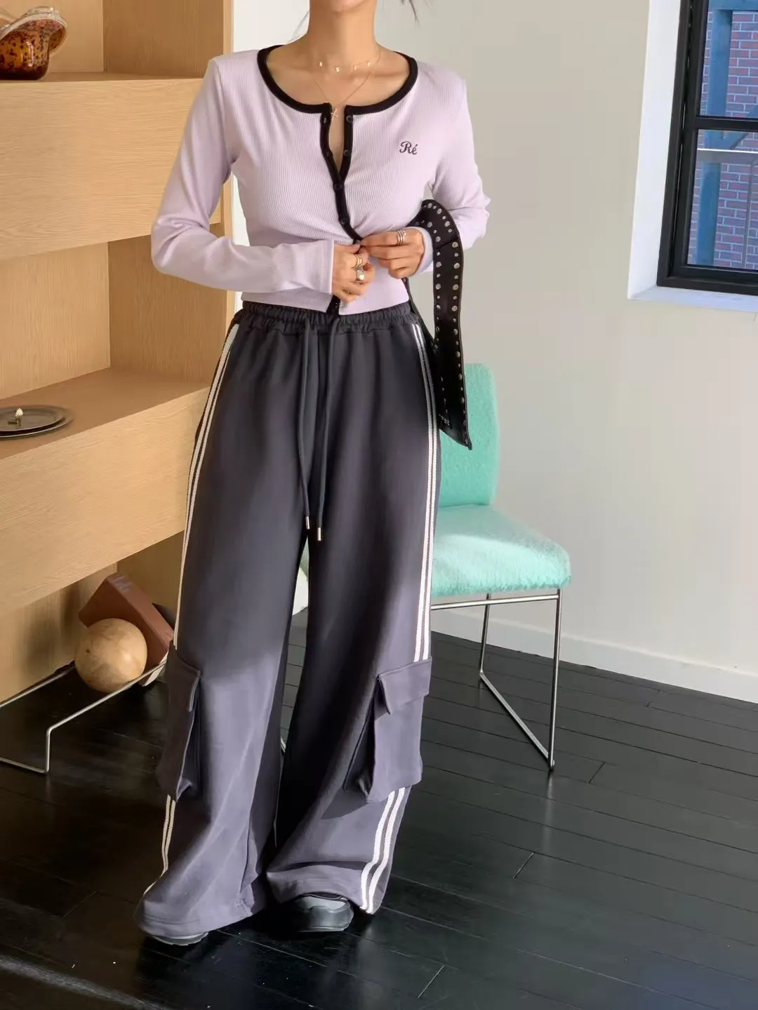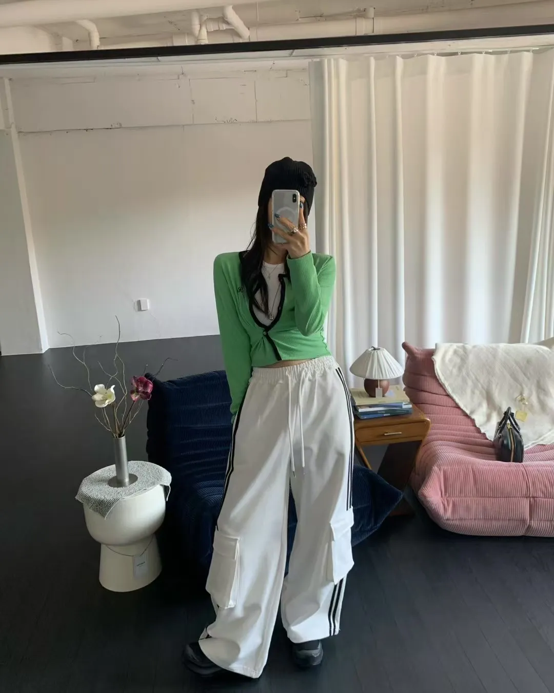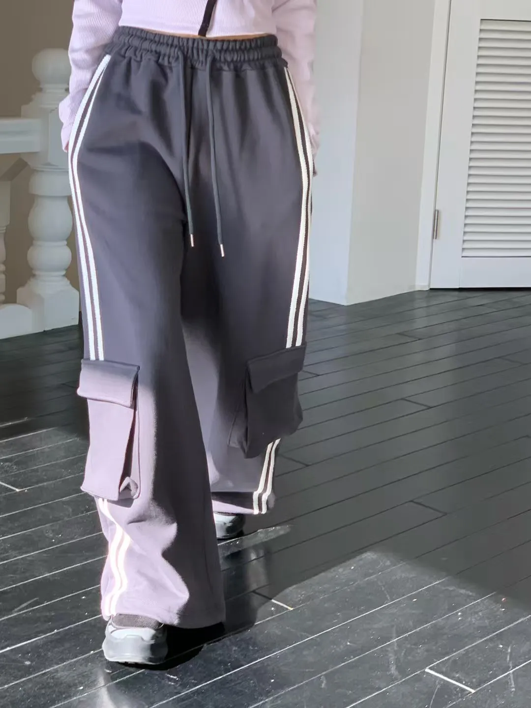 26CA16 邊條大工裝口袋薄毛巾兩穿縮腳長褲 4色