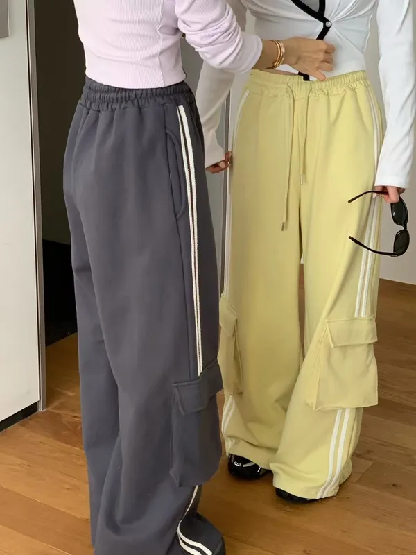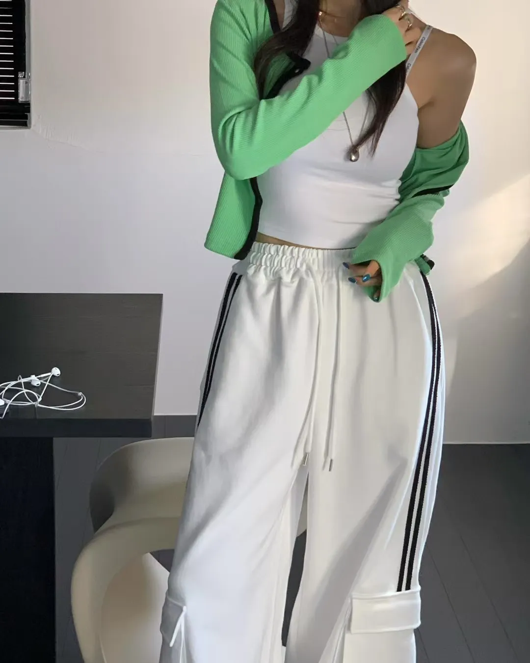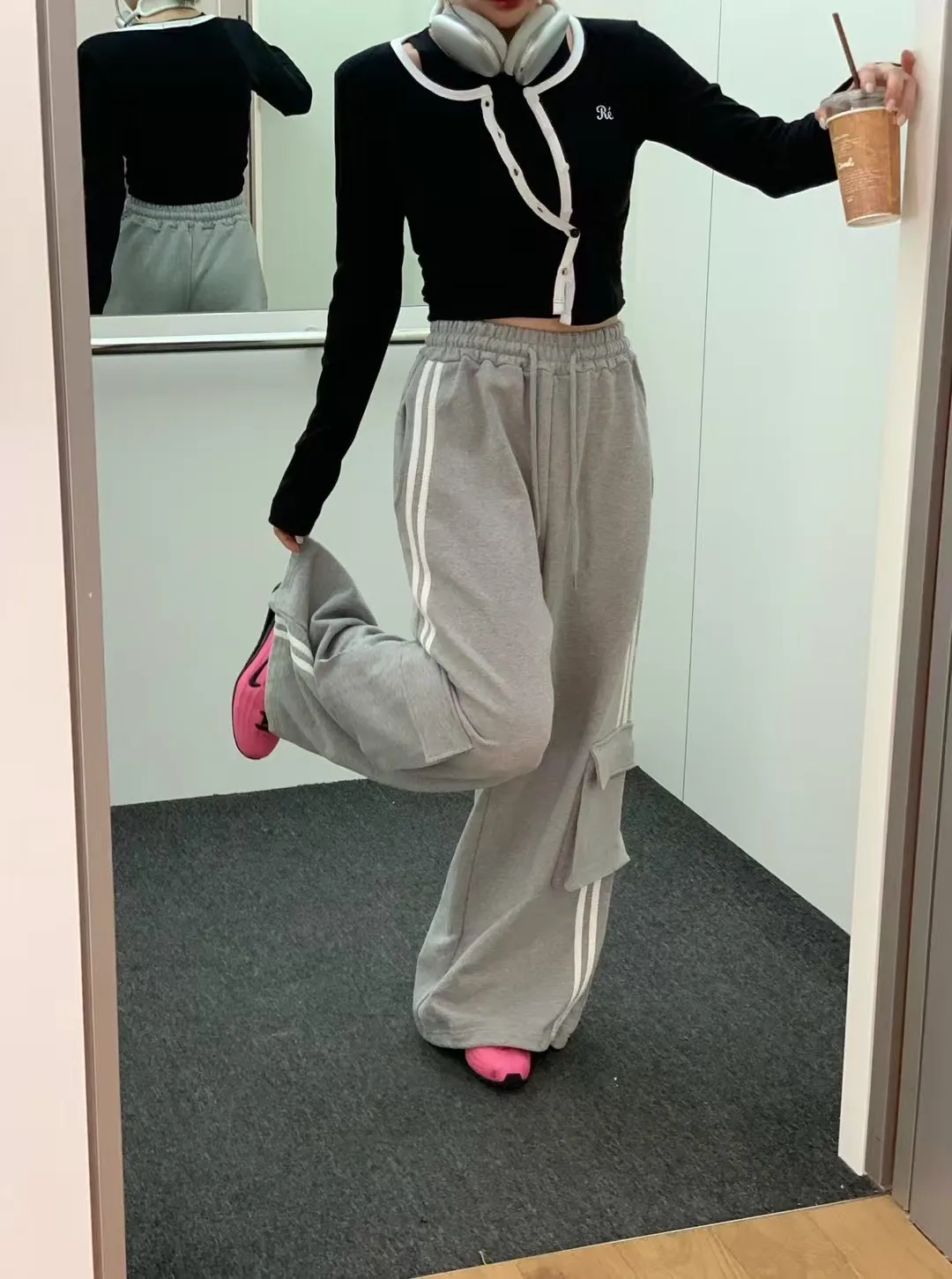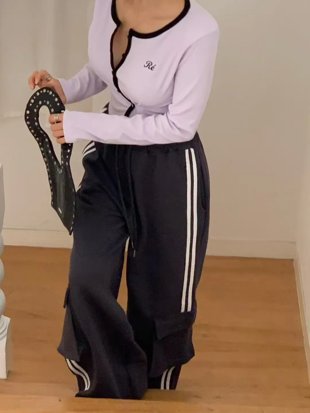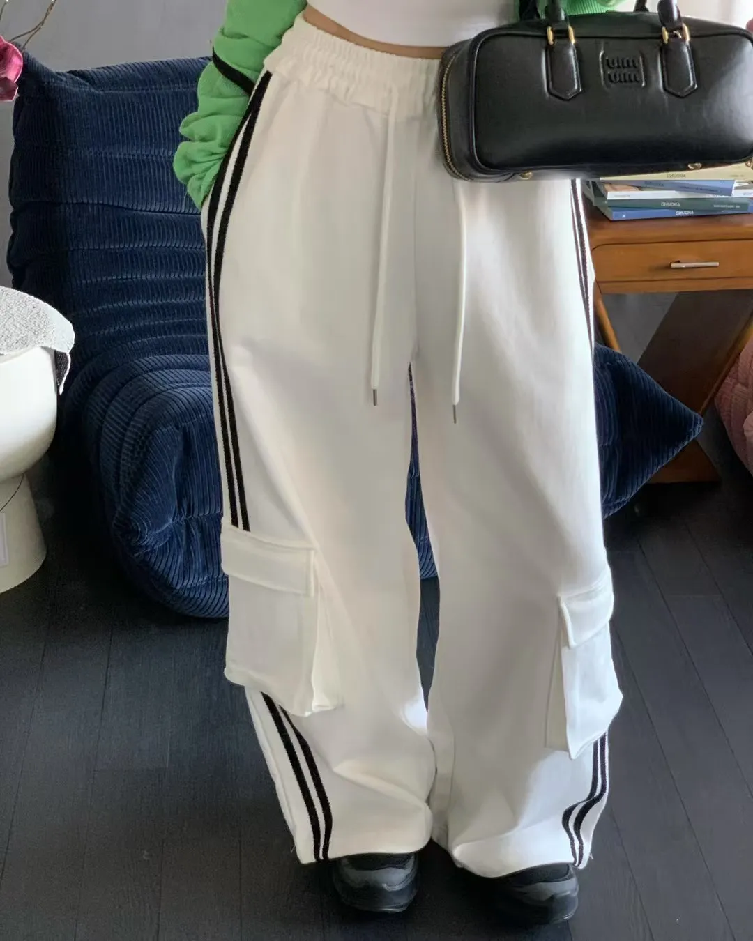26CA16 邊條大工裝口袋薄毛巾兩穿縮腳長褲 4色