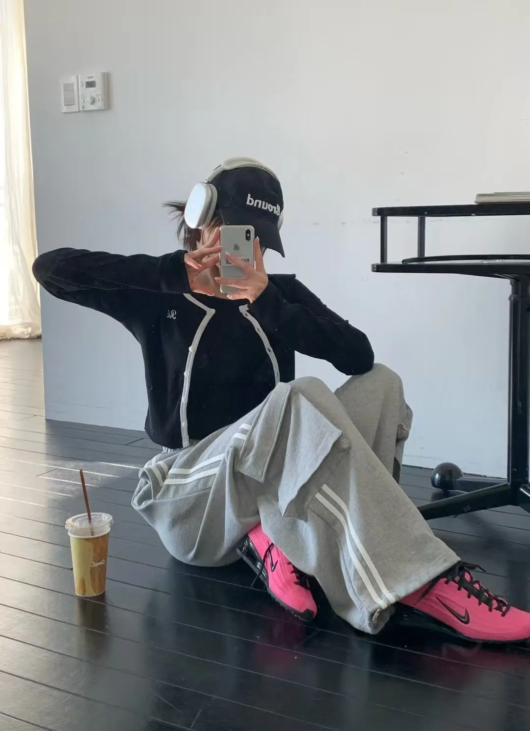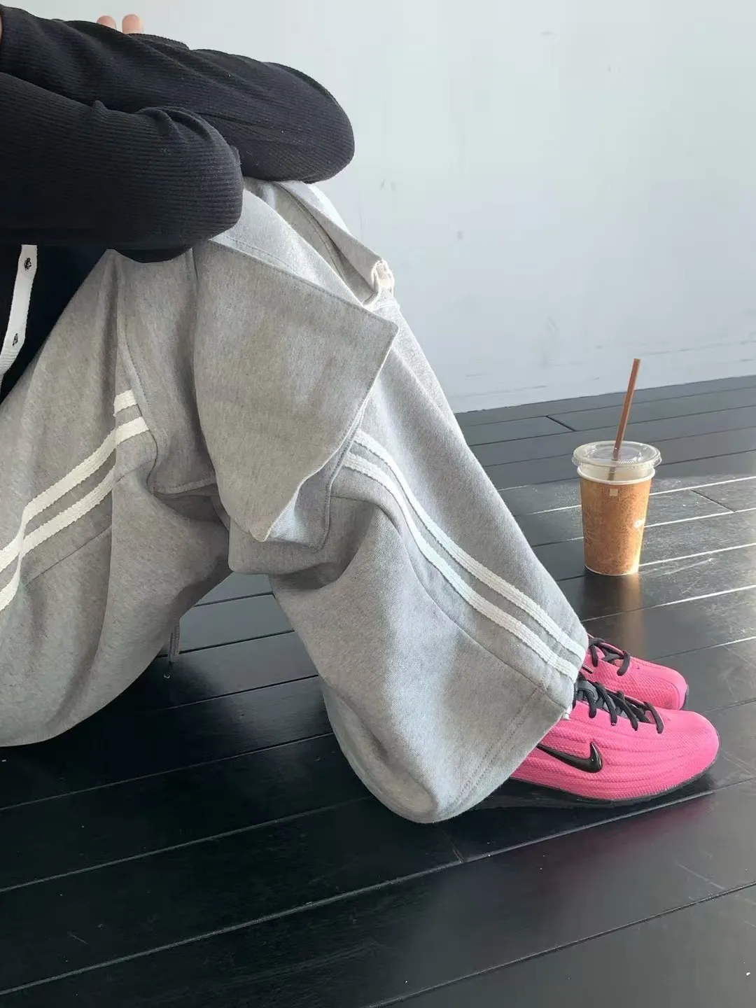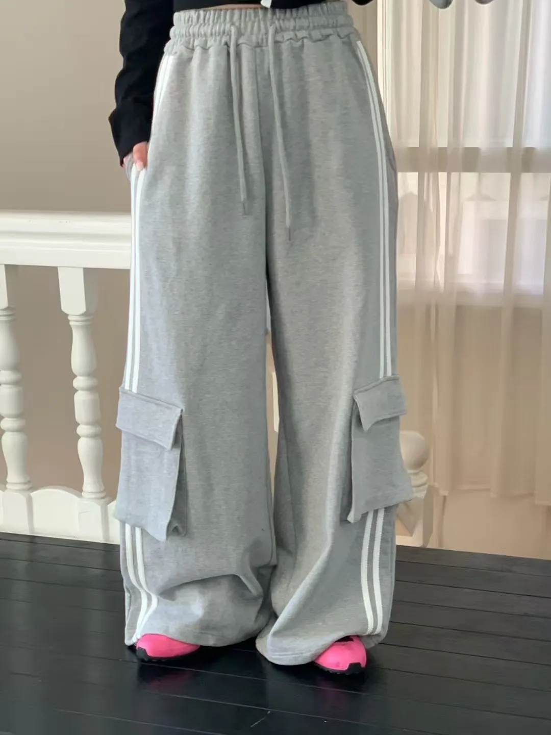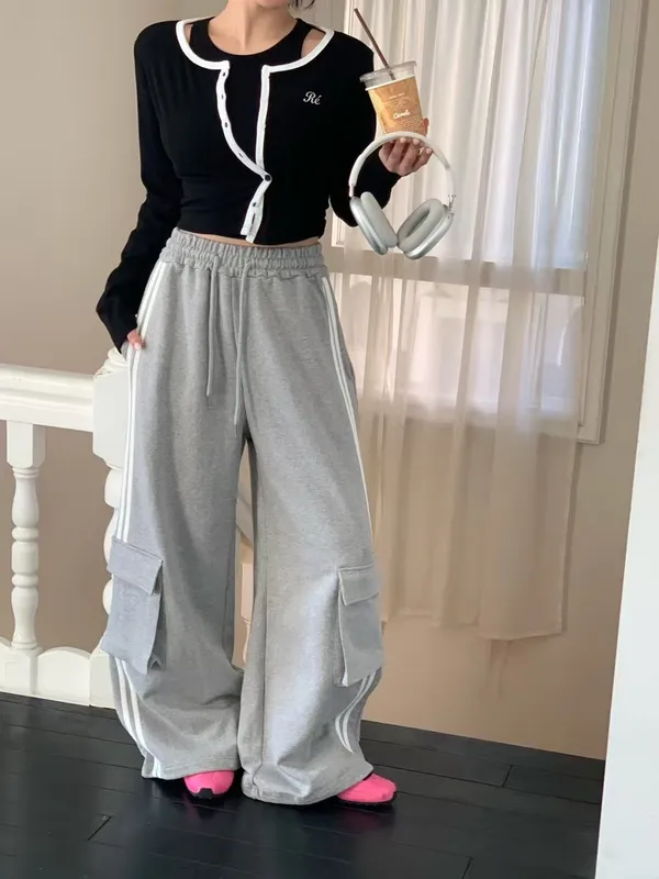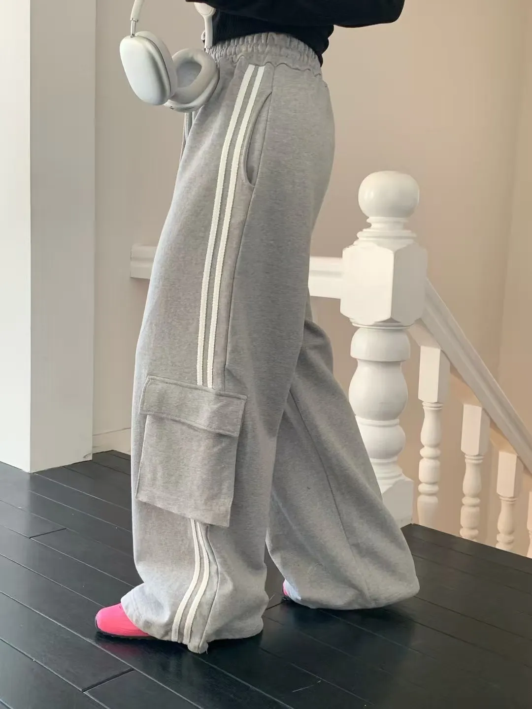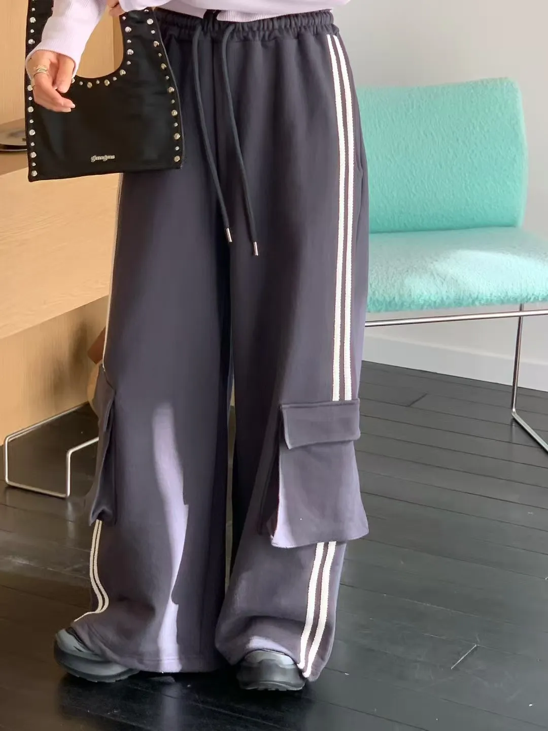 26CA16 邊條大工裝口袋薄毛巾兩穿縮腳長褲 4色