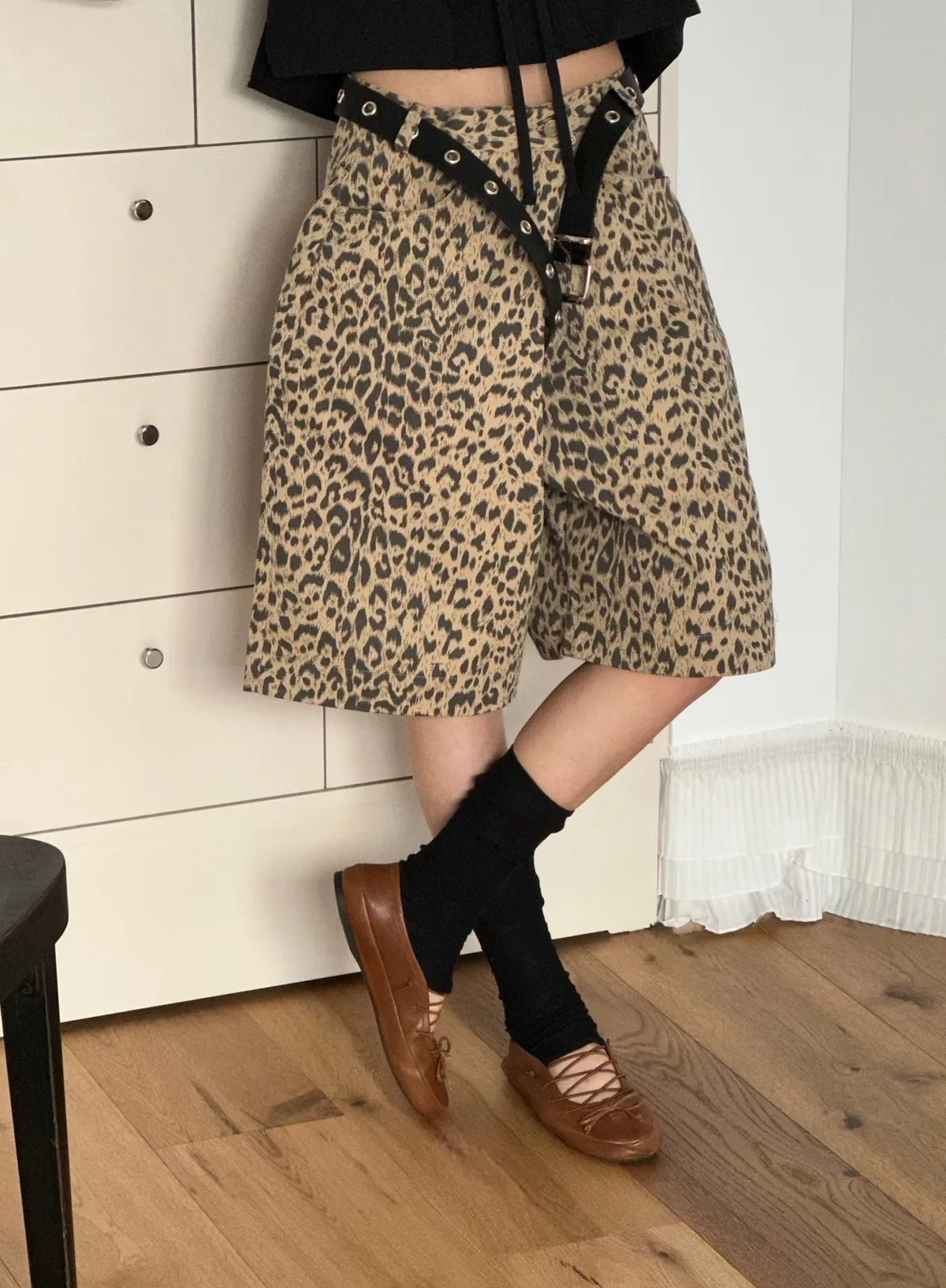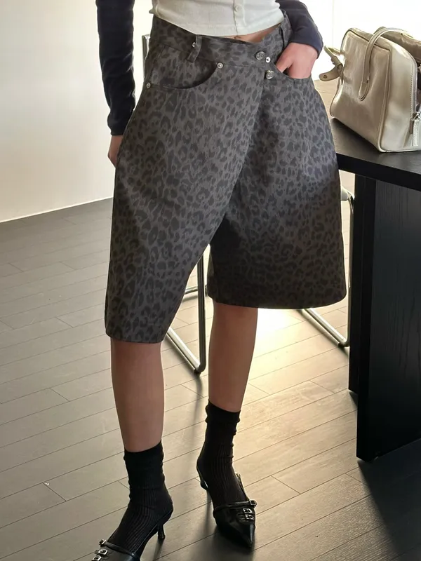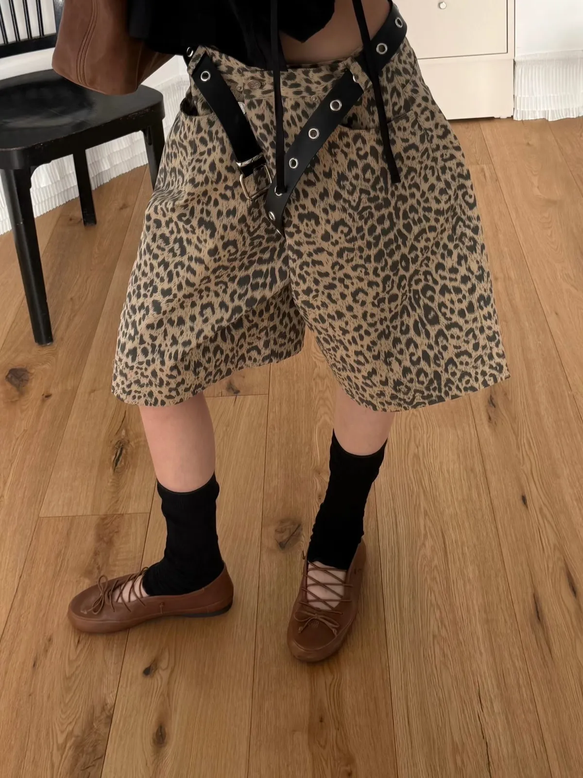 26CB05 豹紋交叉扣五六分短褲 3色 SM
