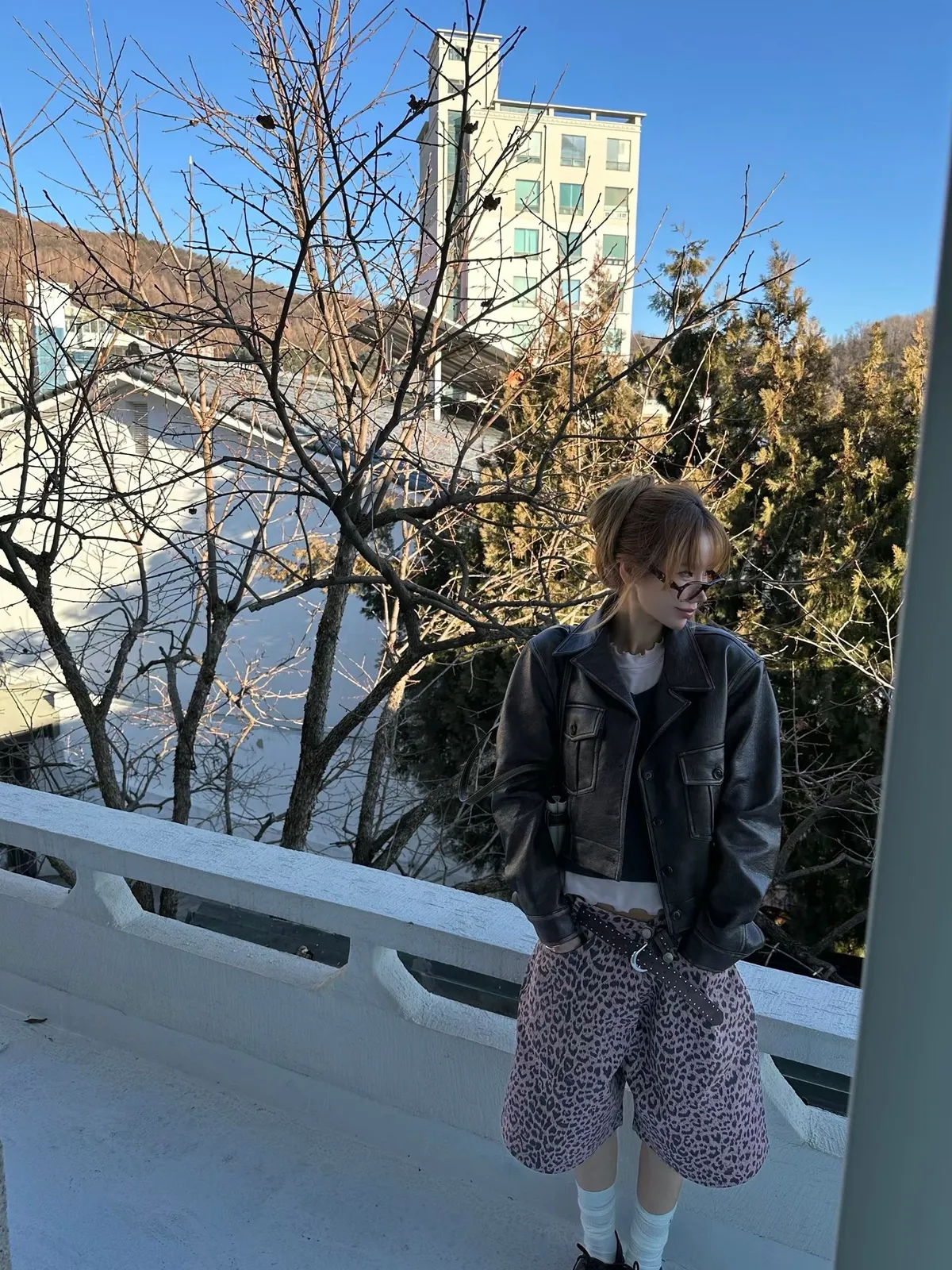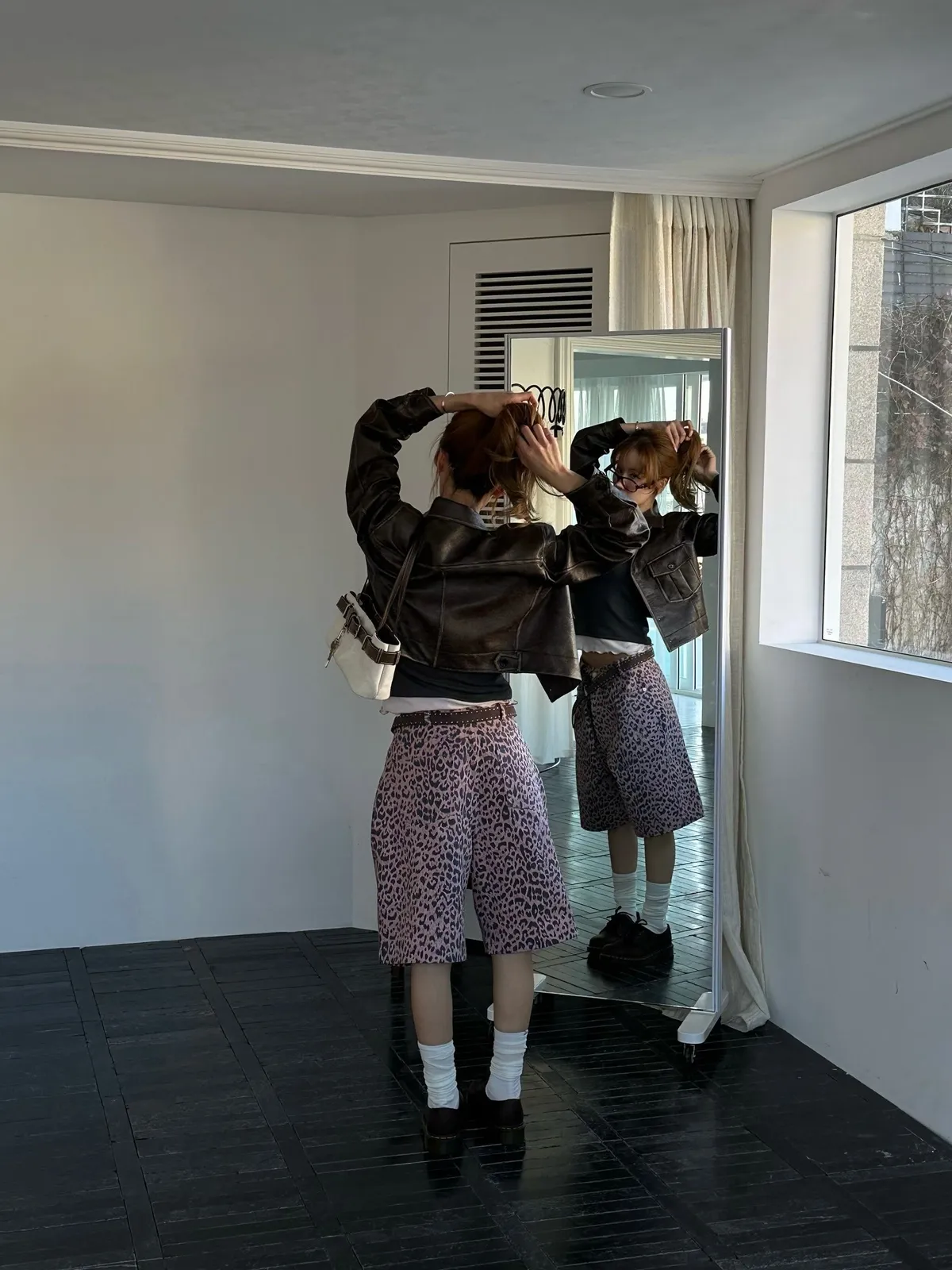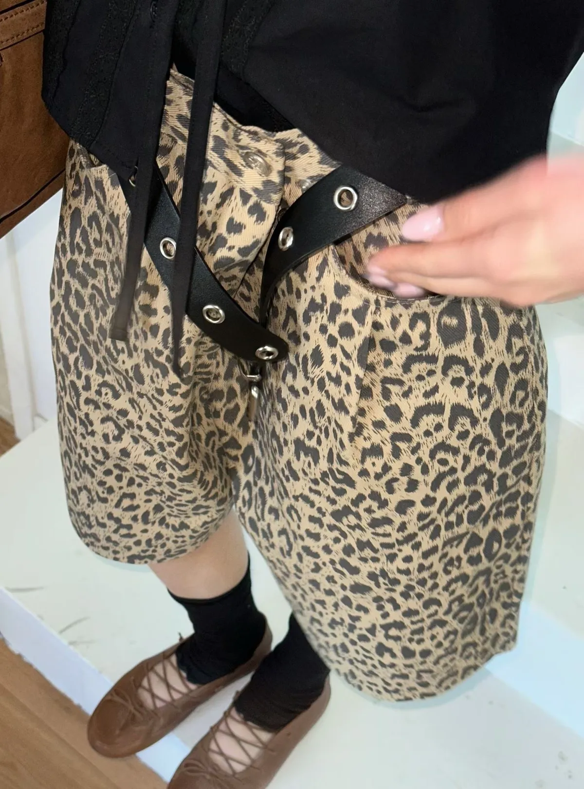 26CB05 豹紋交叉扣五六分短褲 3色 SM