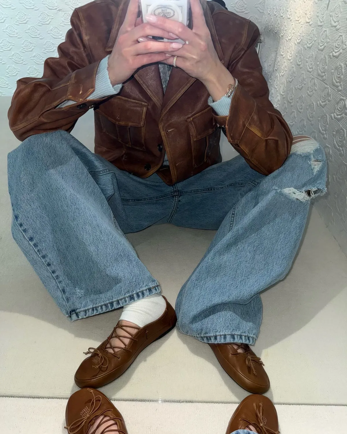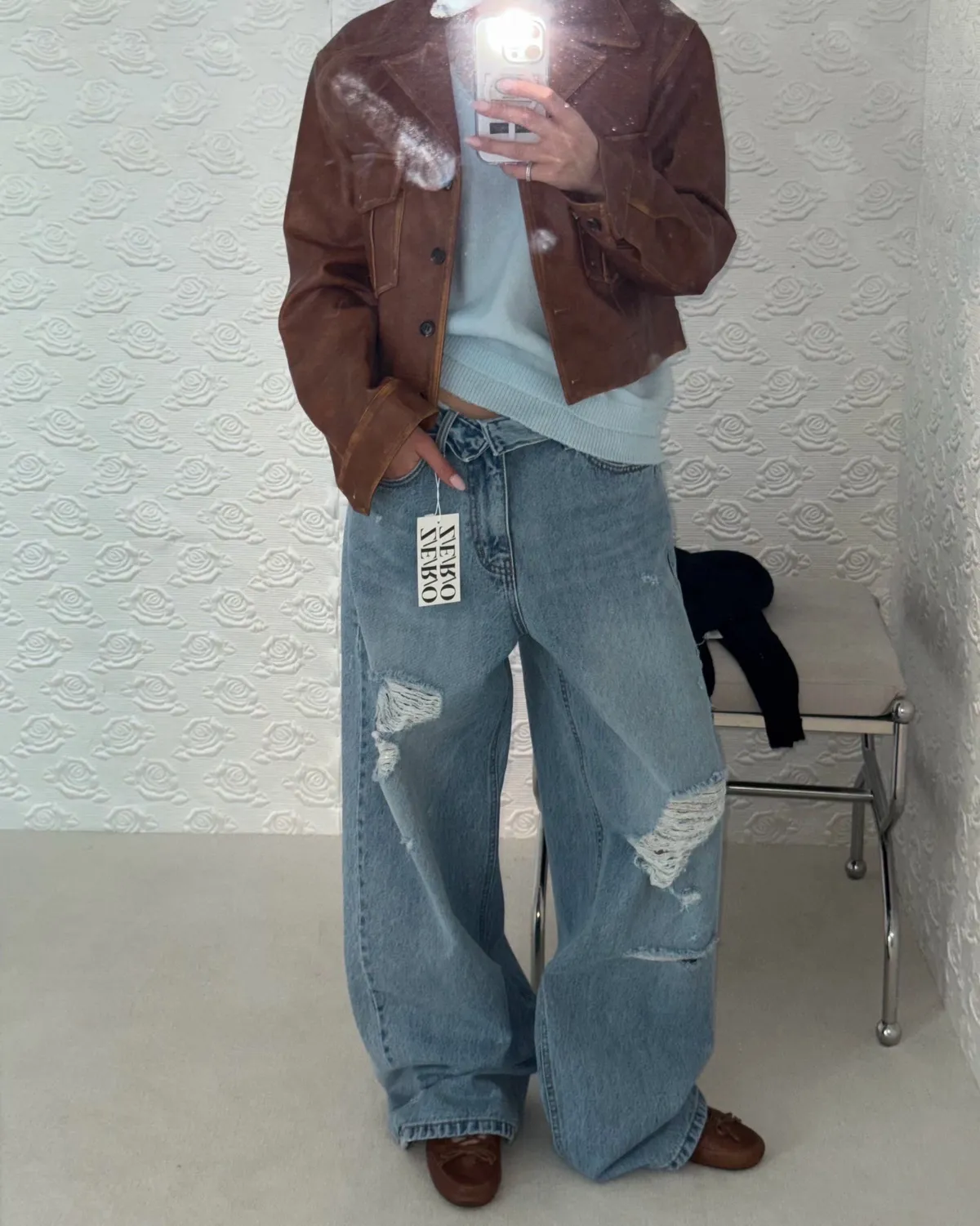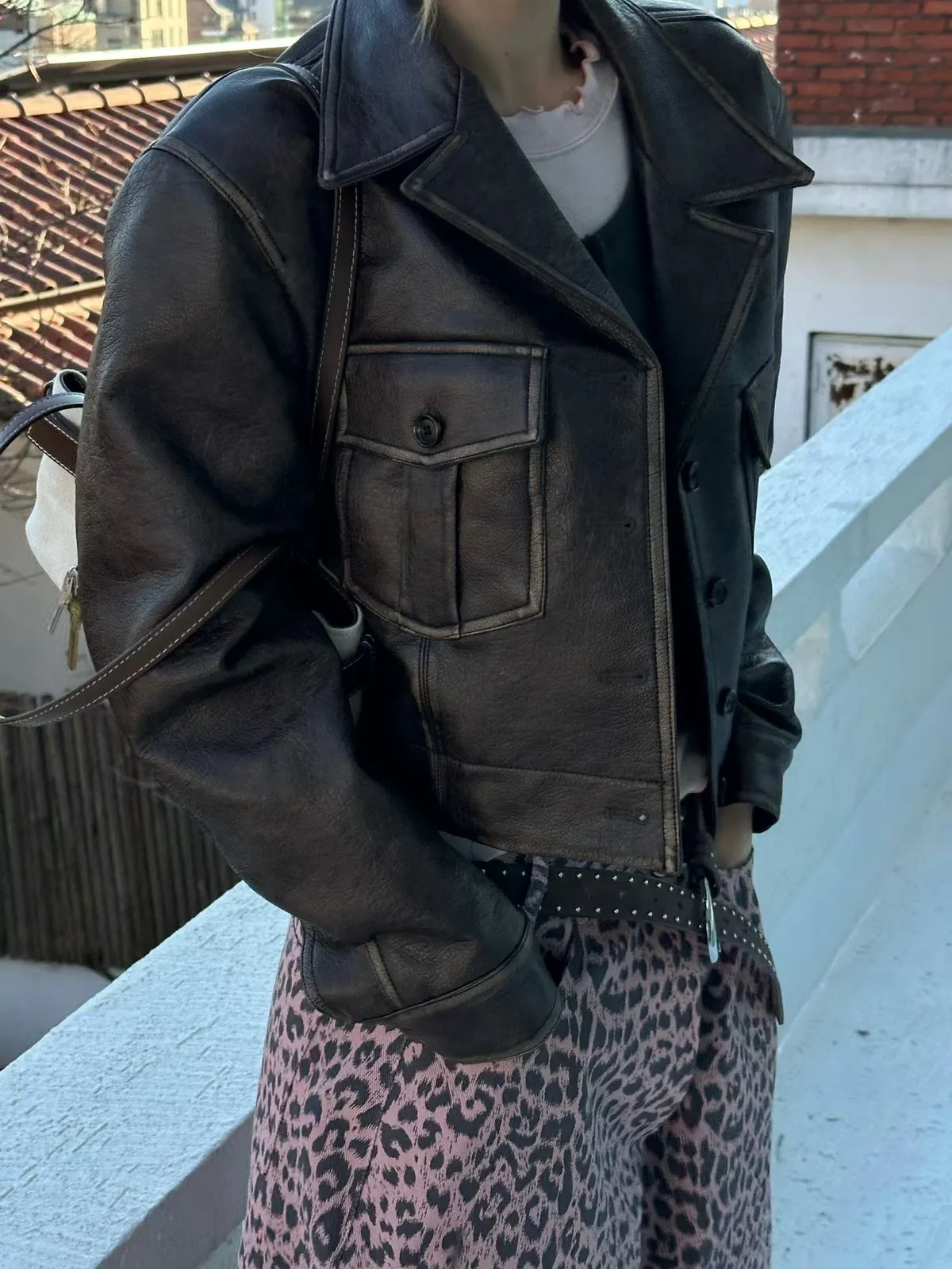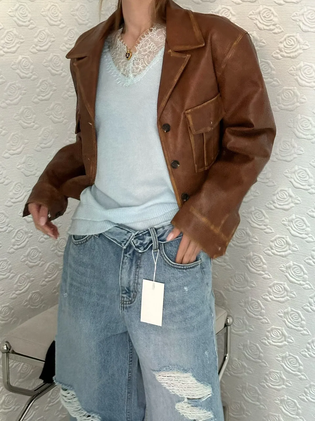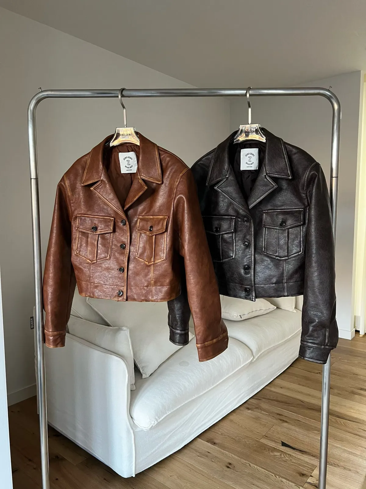 26CB06 手工縫製洗舊軟皮革外套 2色