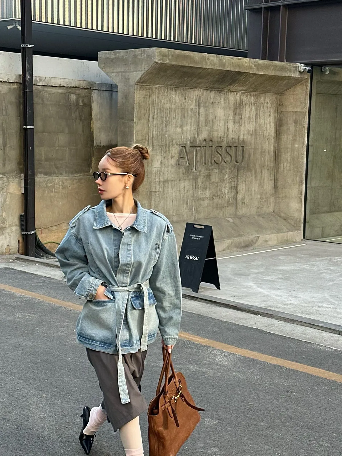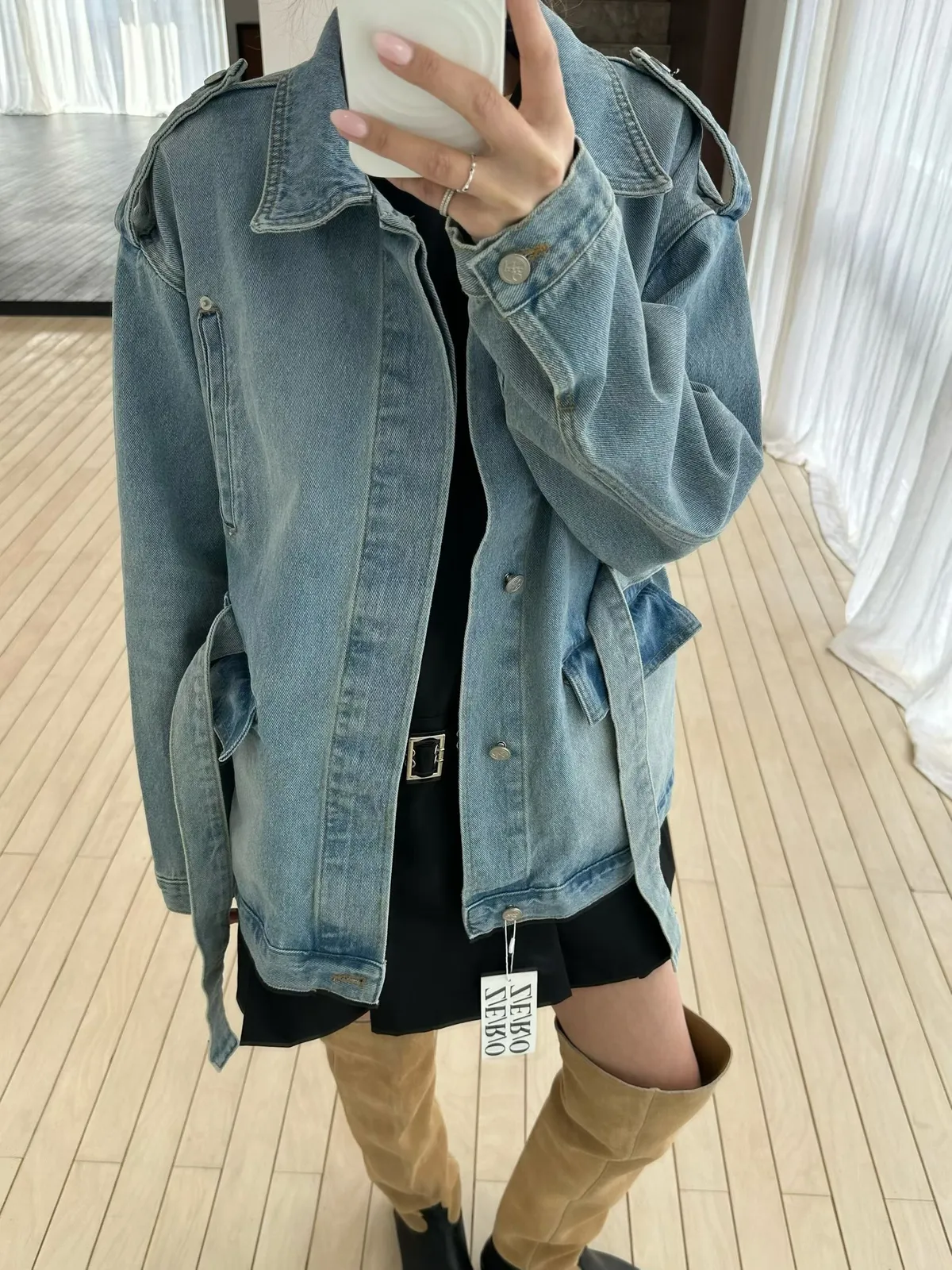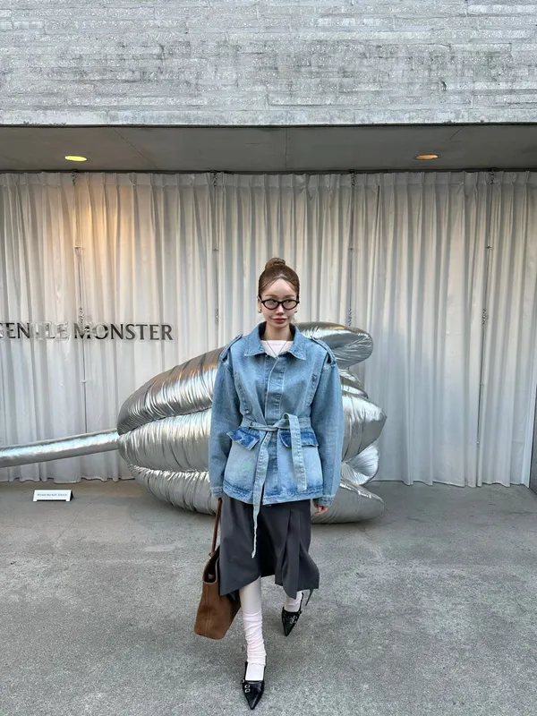 26CB14 中長版腰綁軍裝牛仔外套
