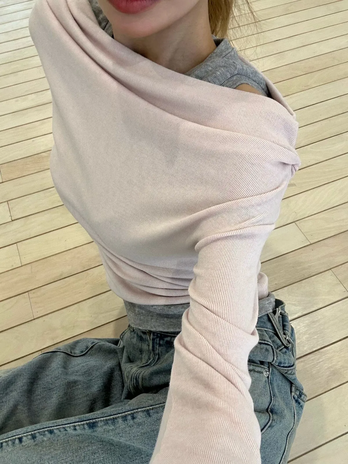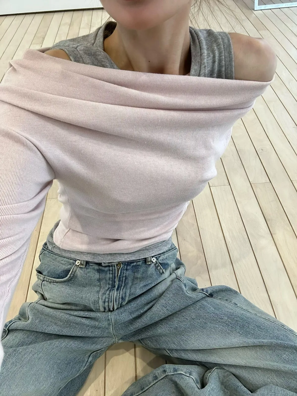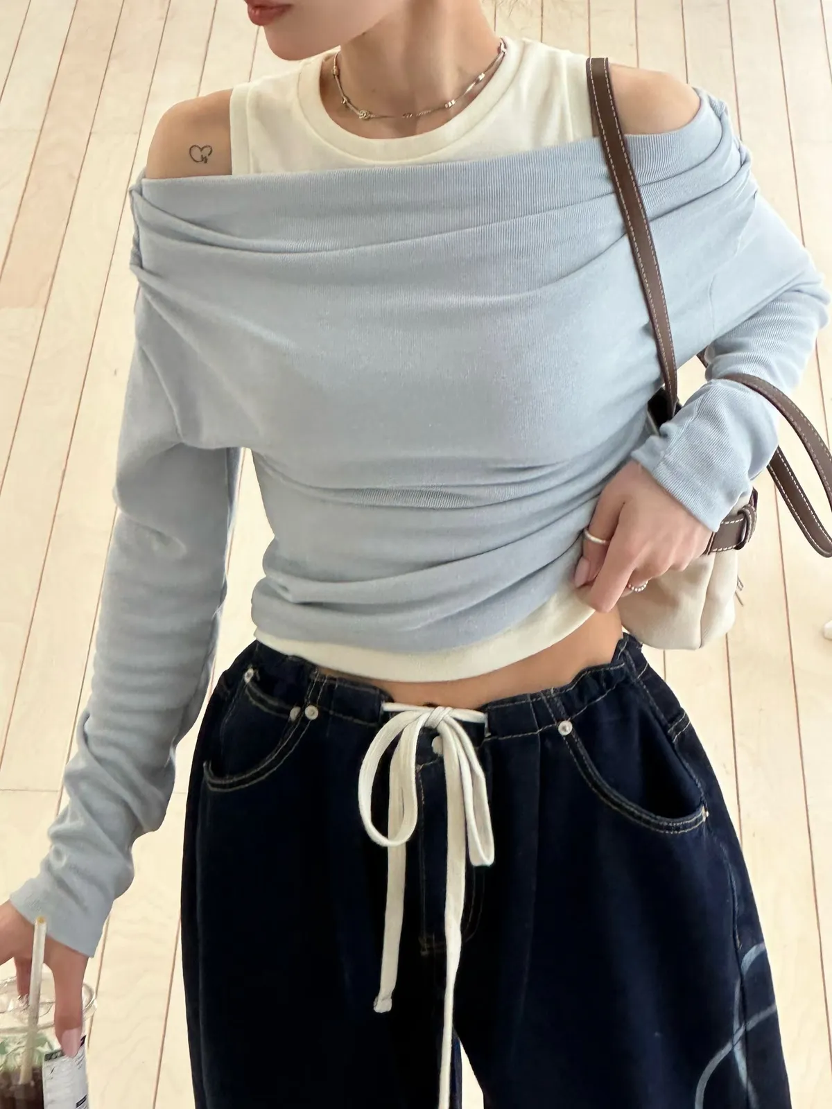 26CB15 假兩件背心拼接船領長T 3色