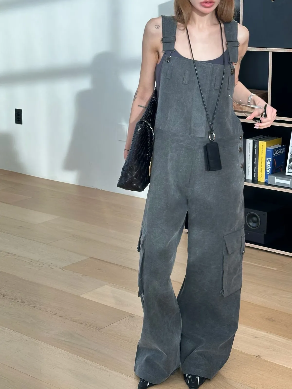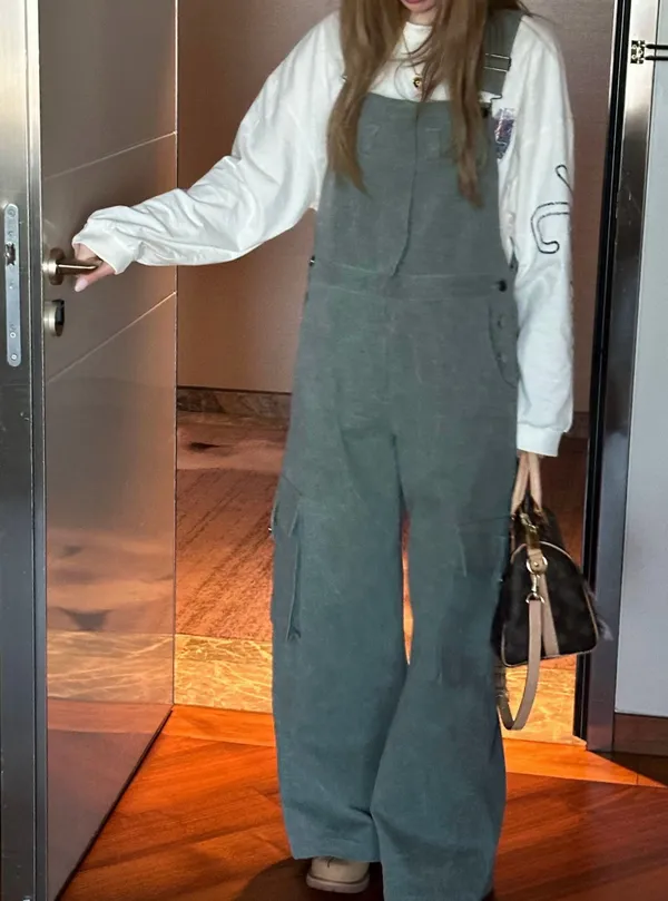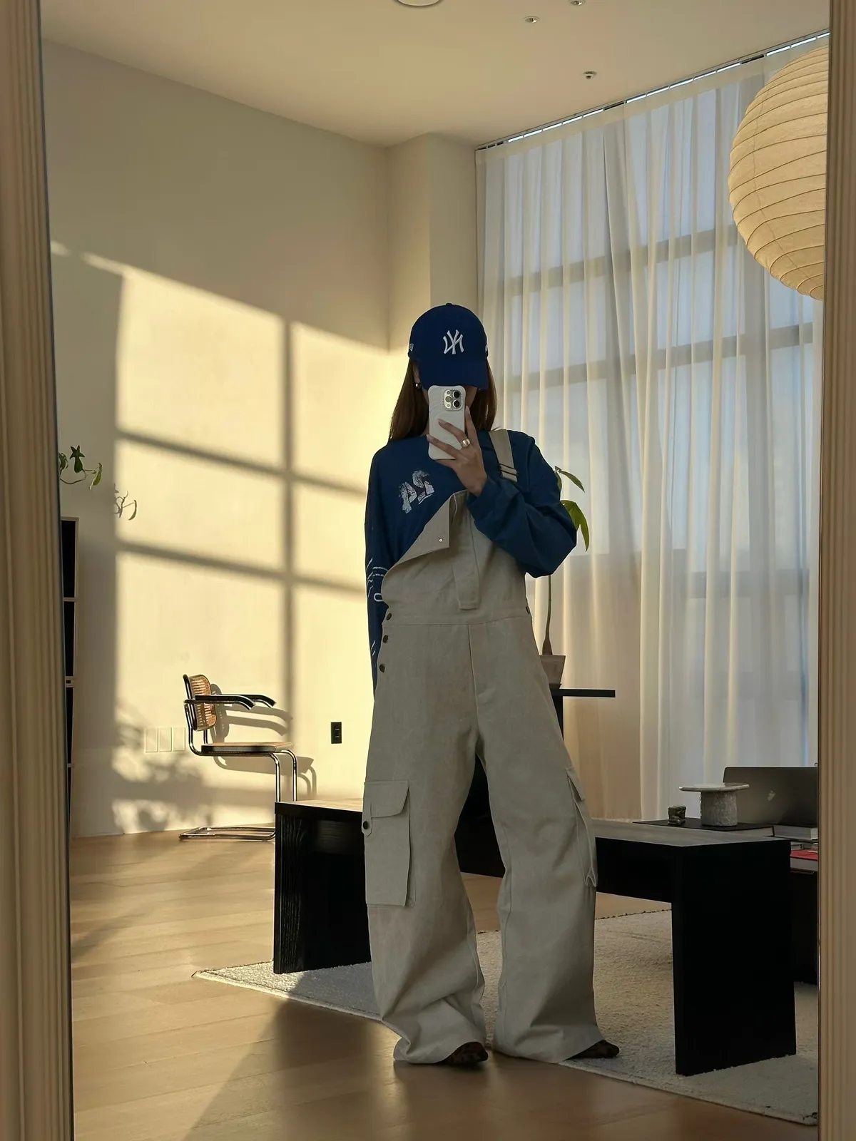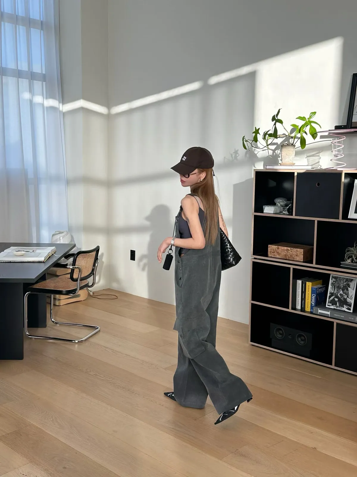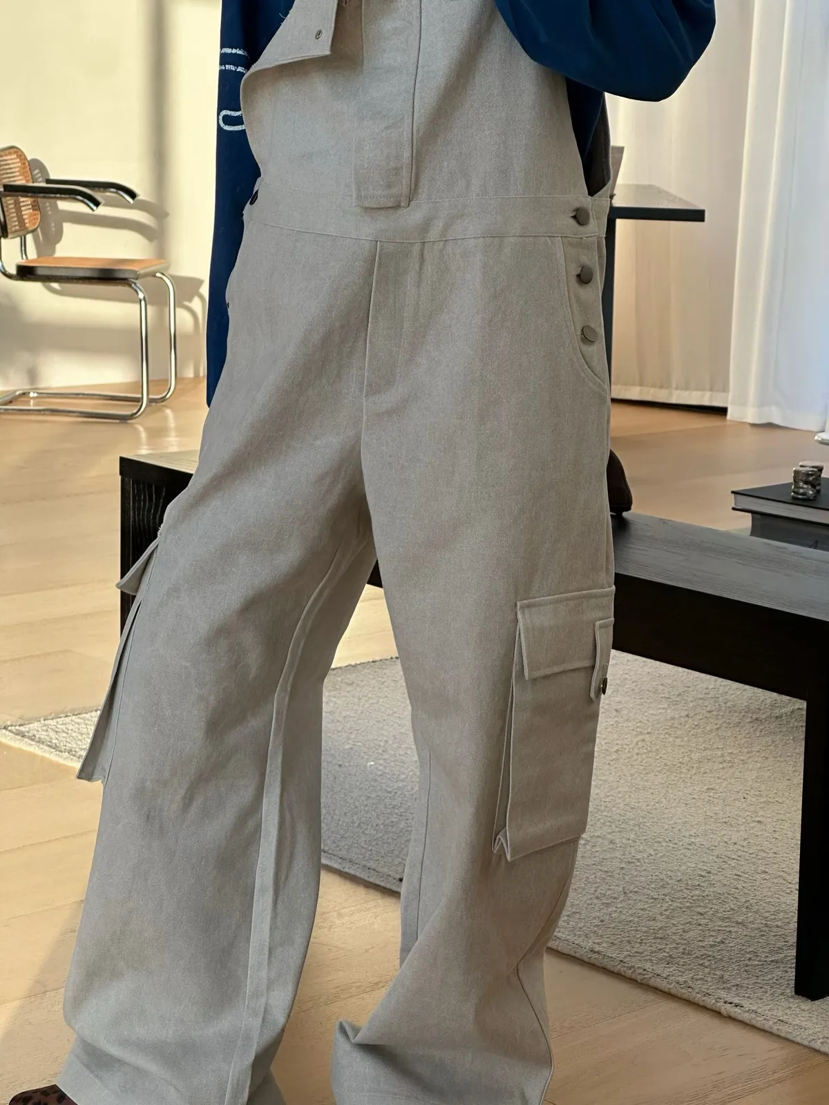 26CB18 斜紋洗色感挺料吊帶長褲 3色
