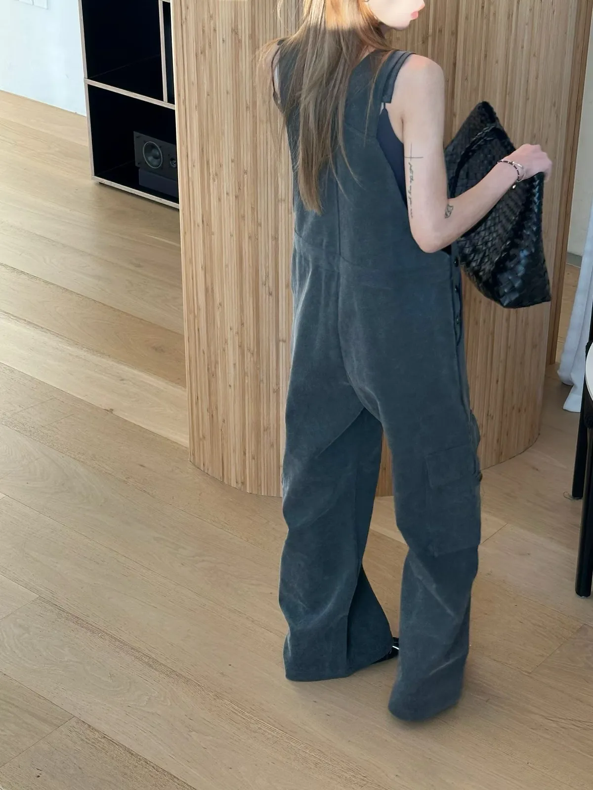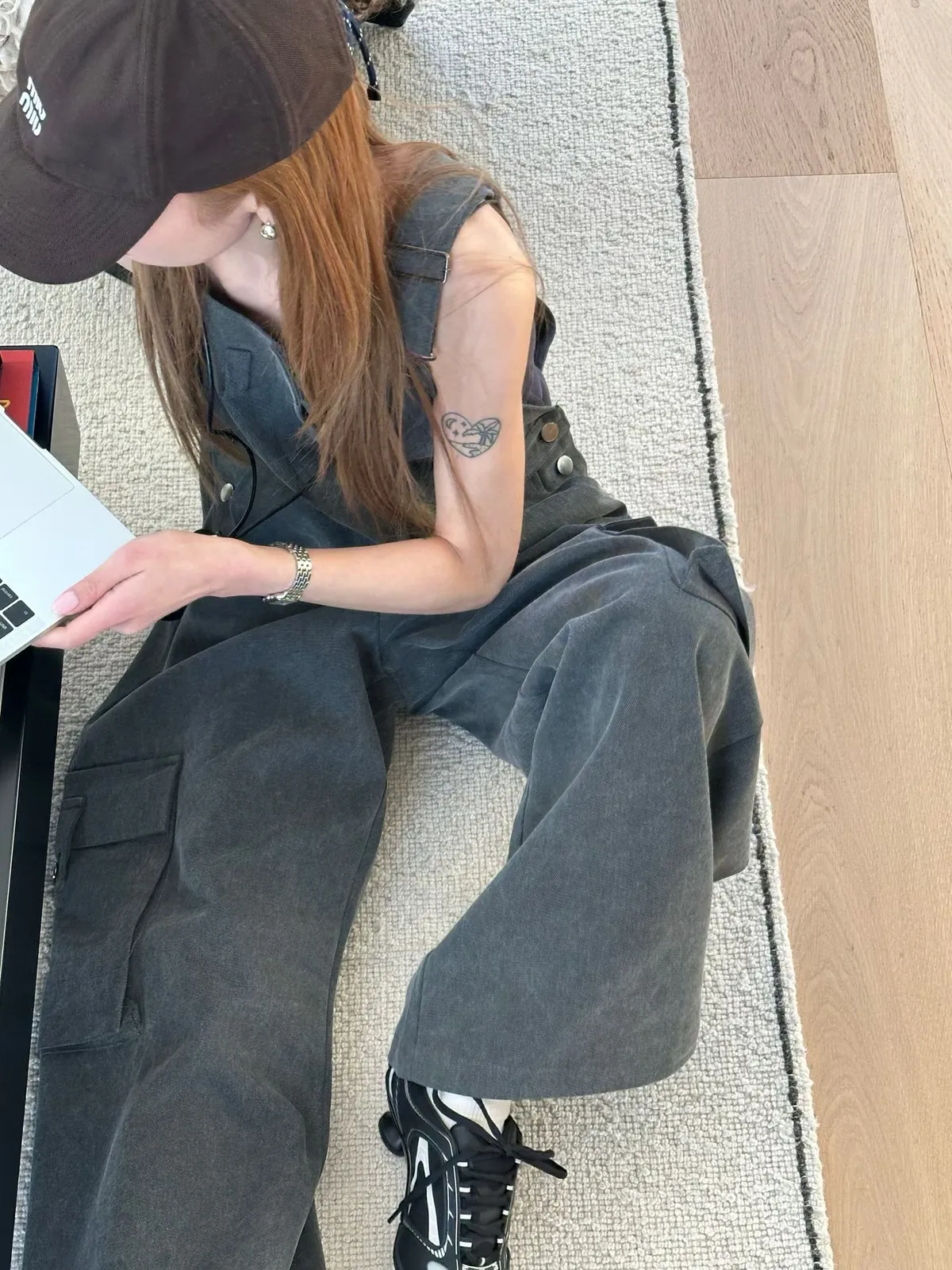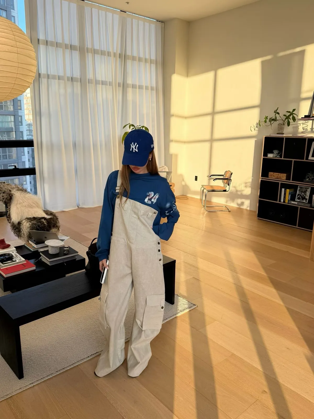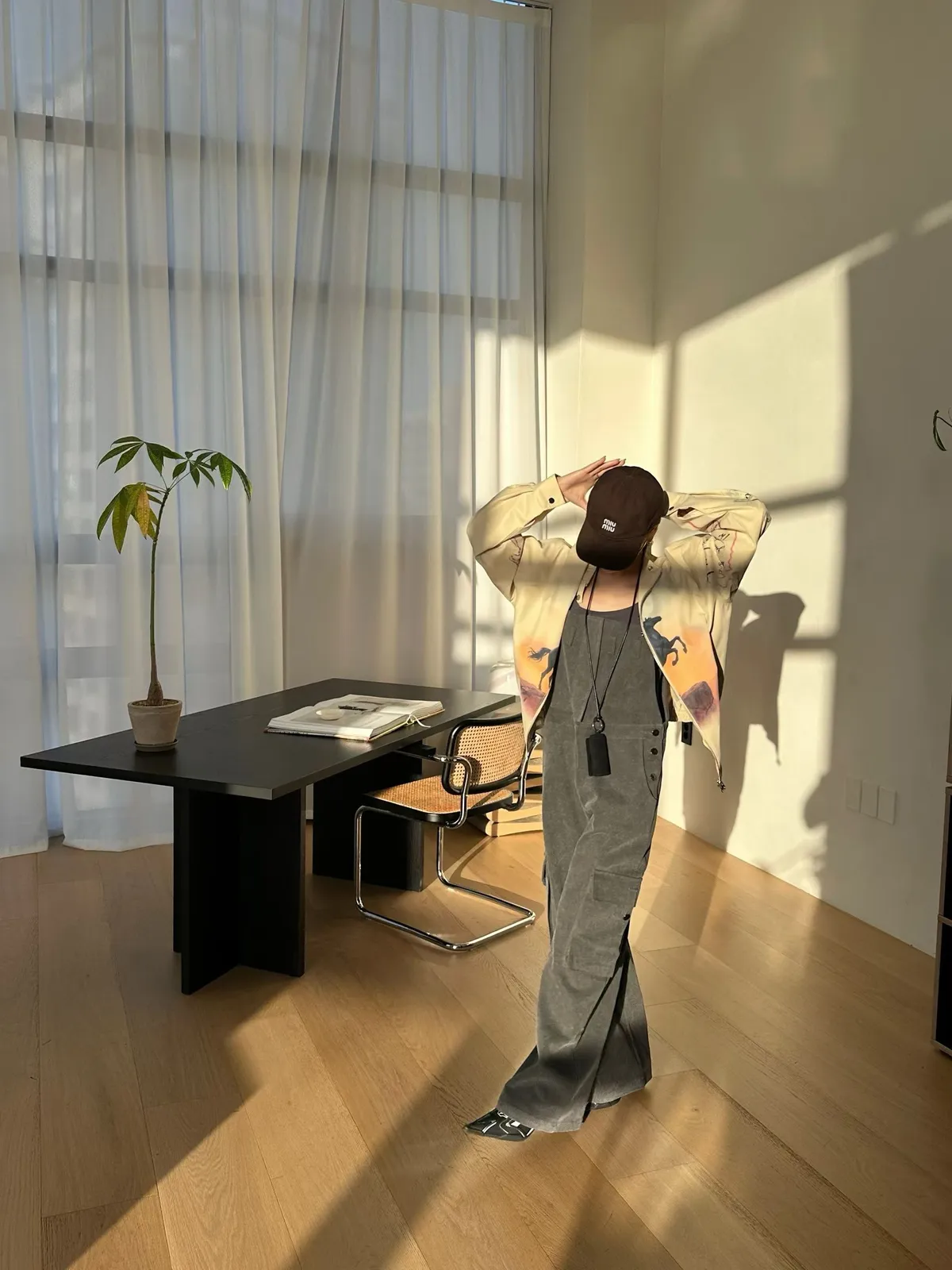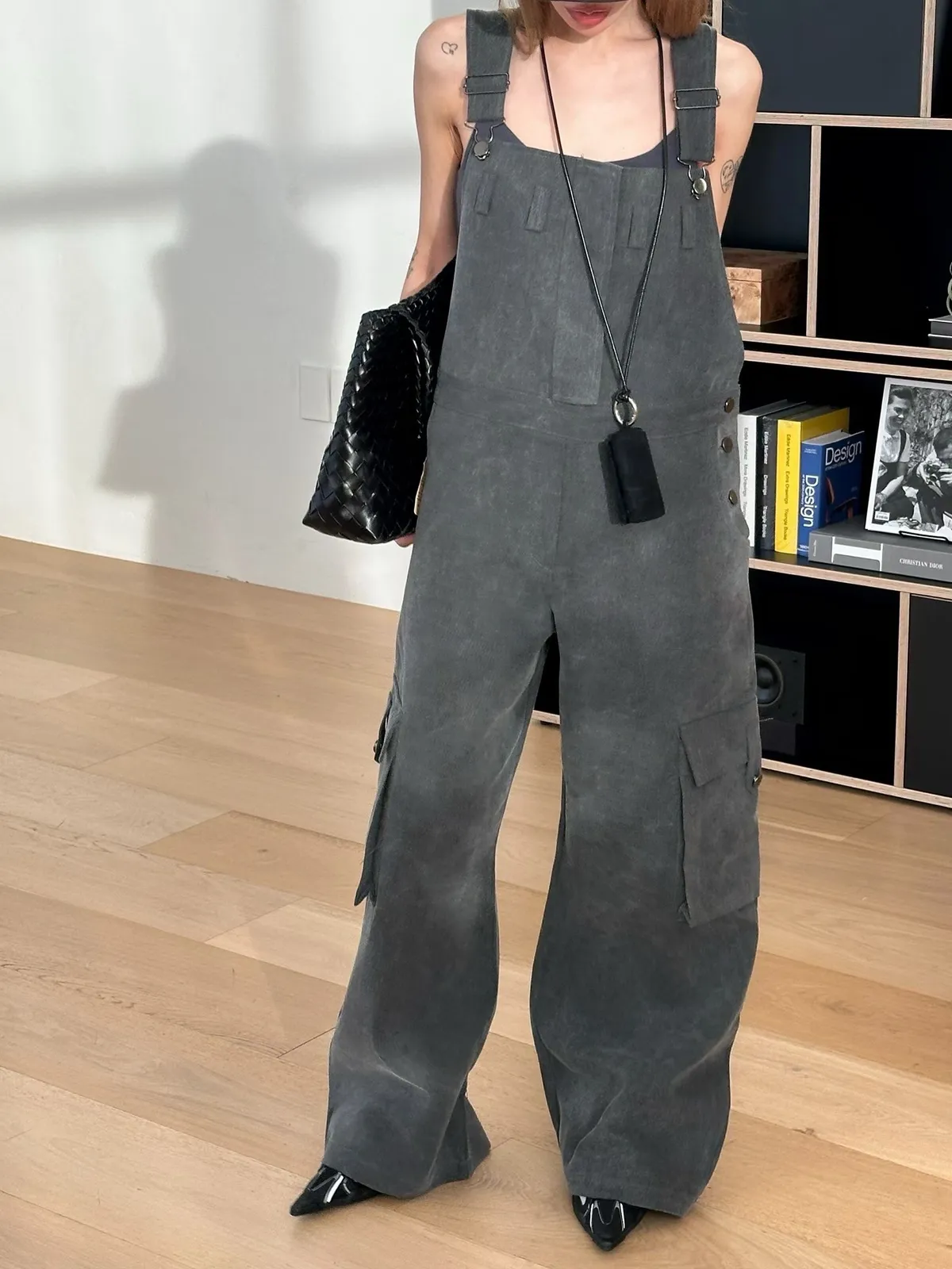 26CB18 斜紋洗色感挺料吊帶長褲 3色