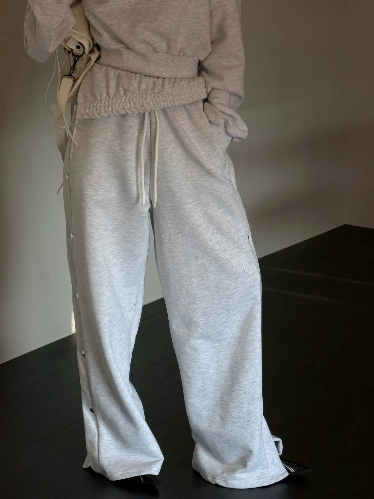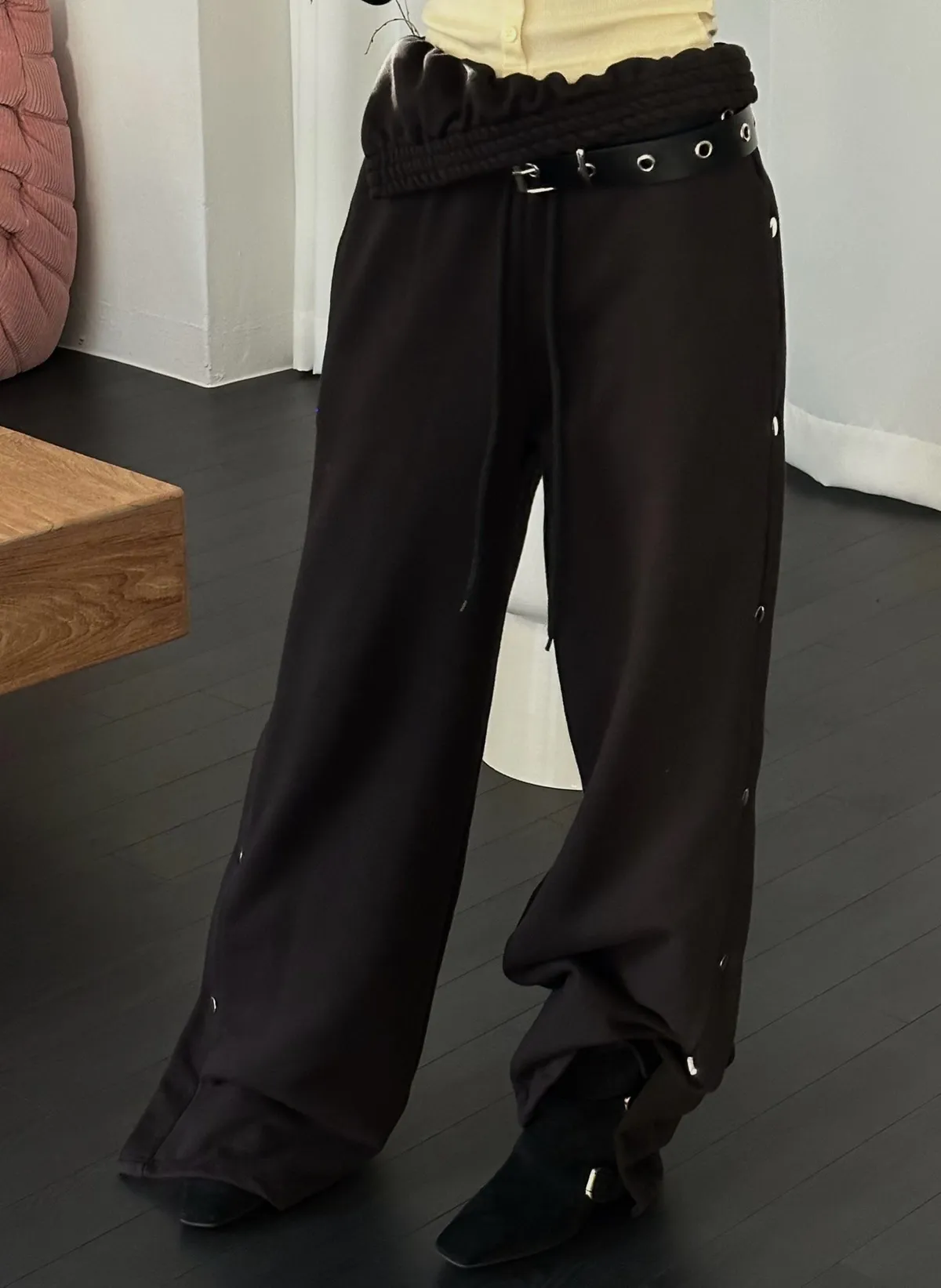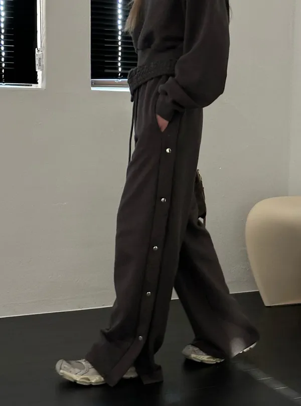 26CB21 側排釦翻腰薄毛巾棉長褲 3色