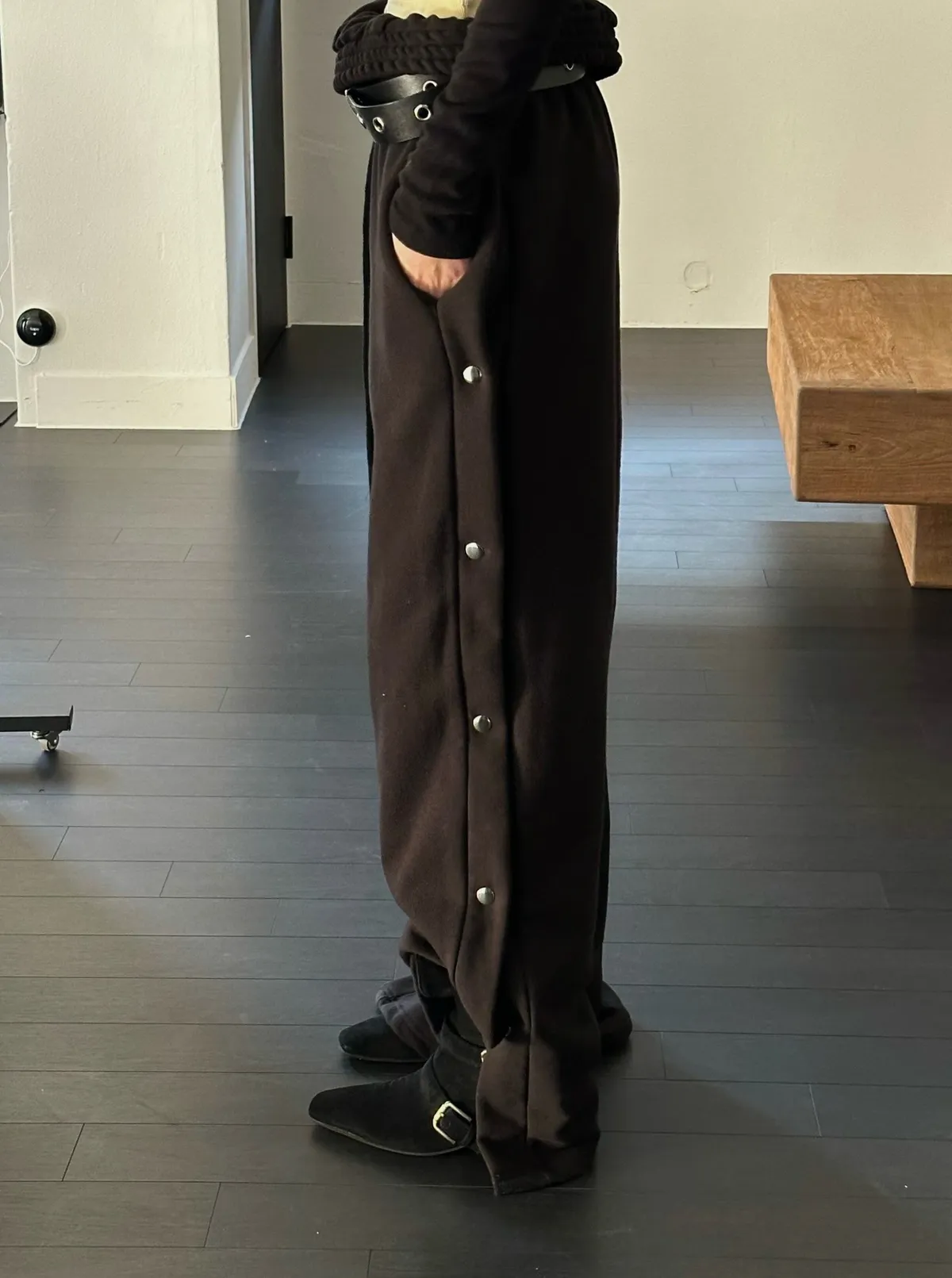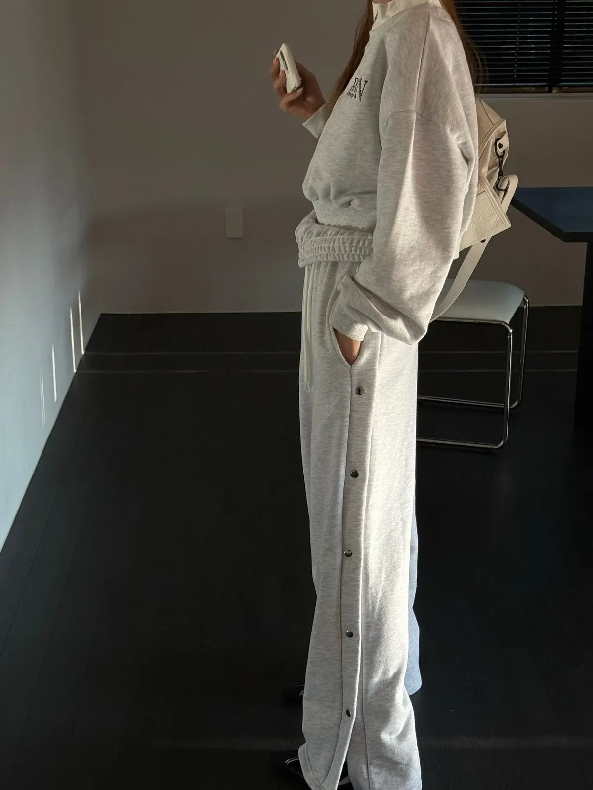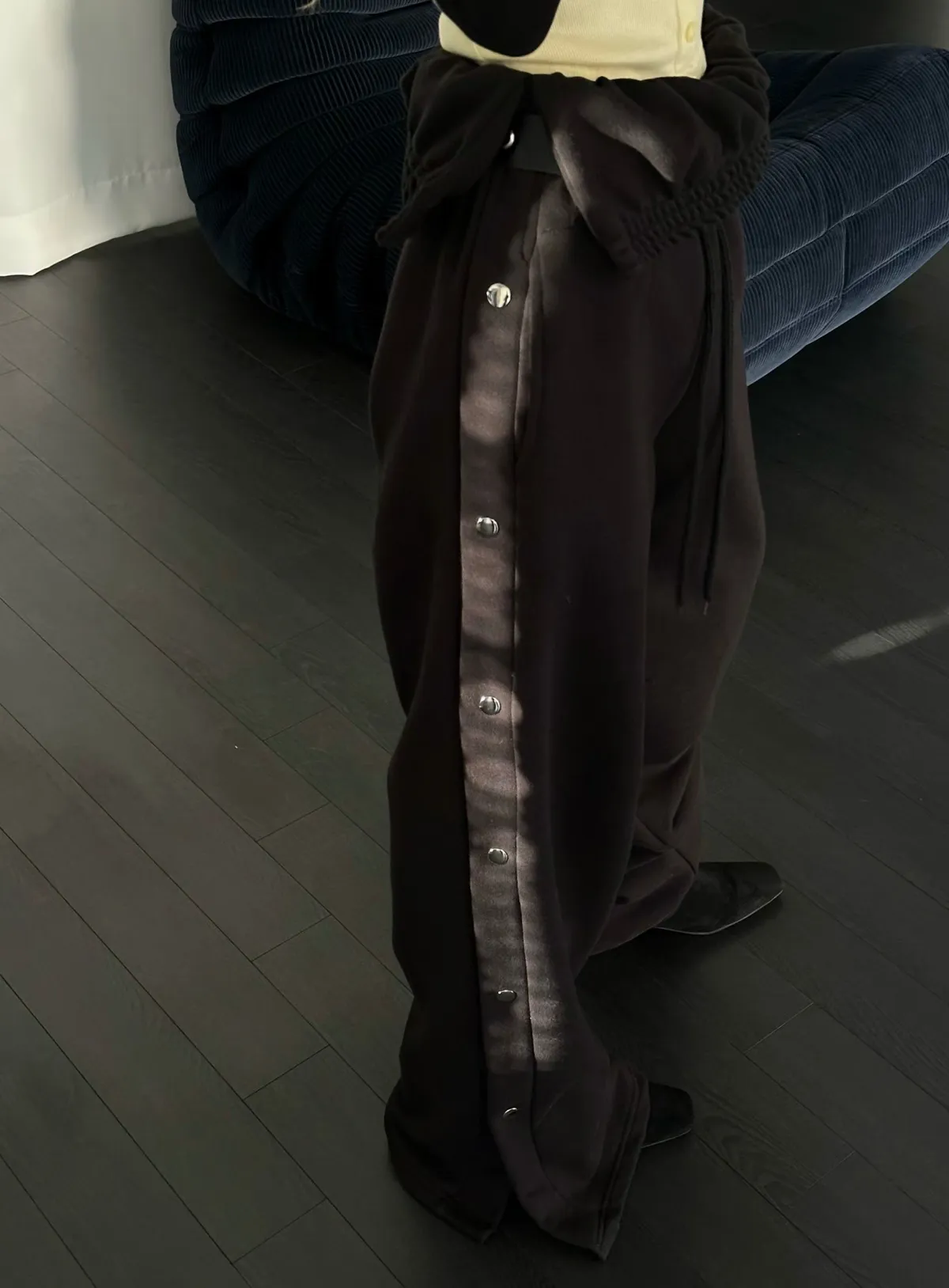 26CB21 側排釦翻腰薄毛巾棉長褲 3色