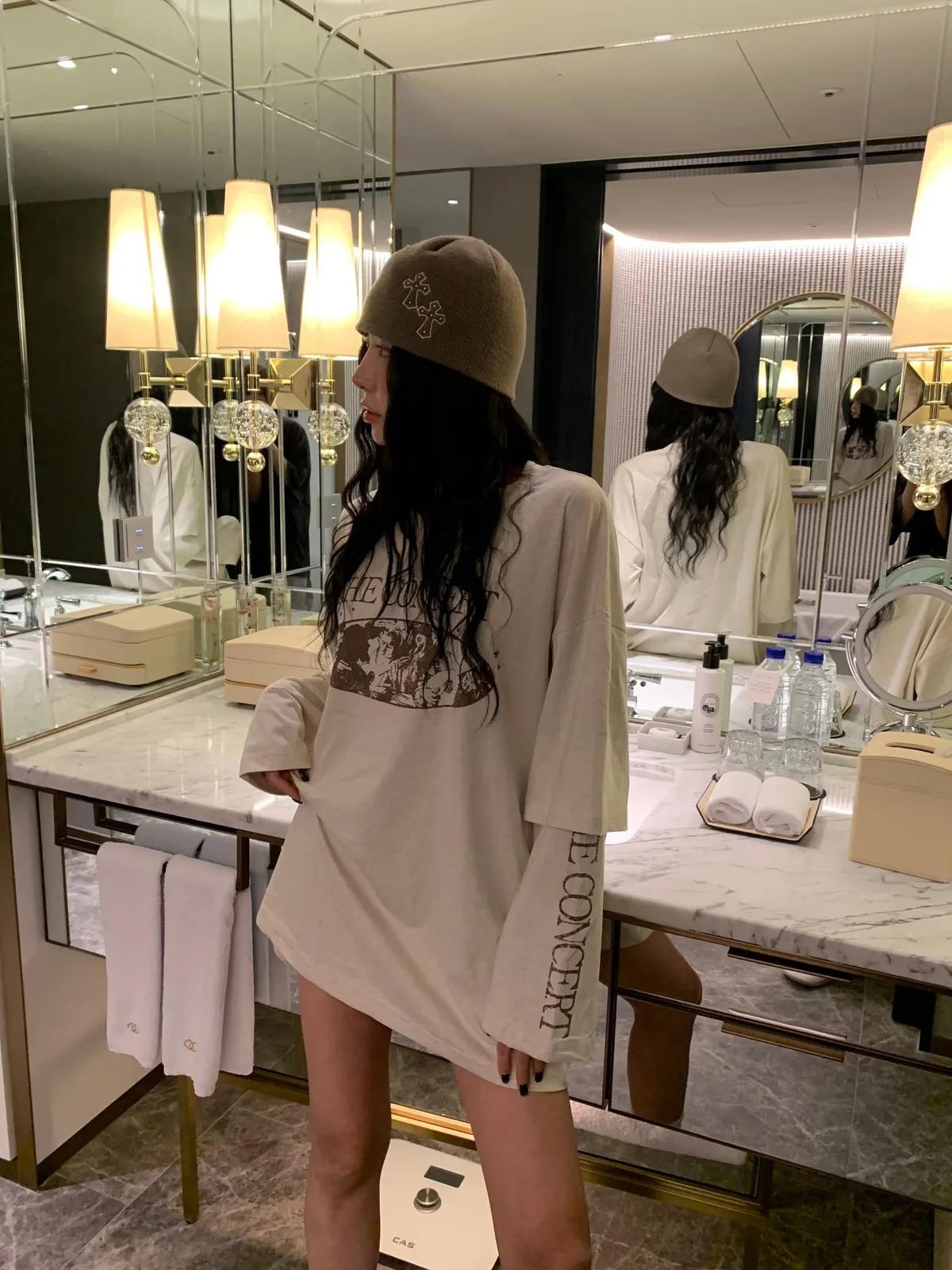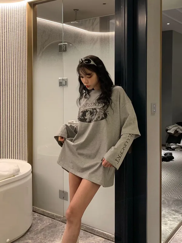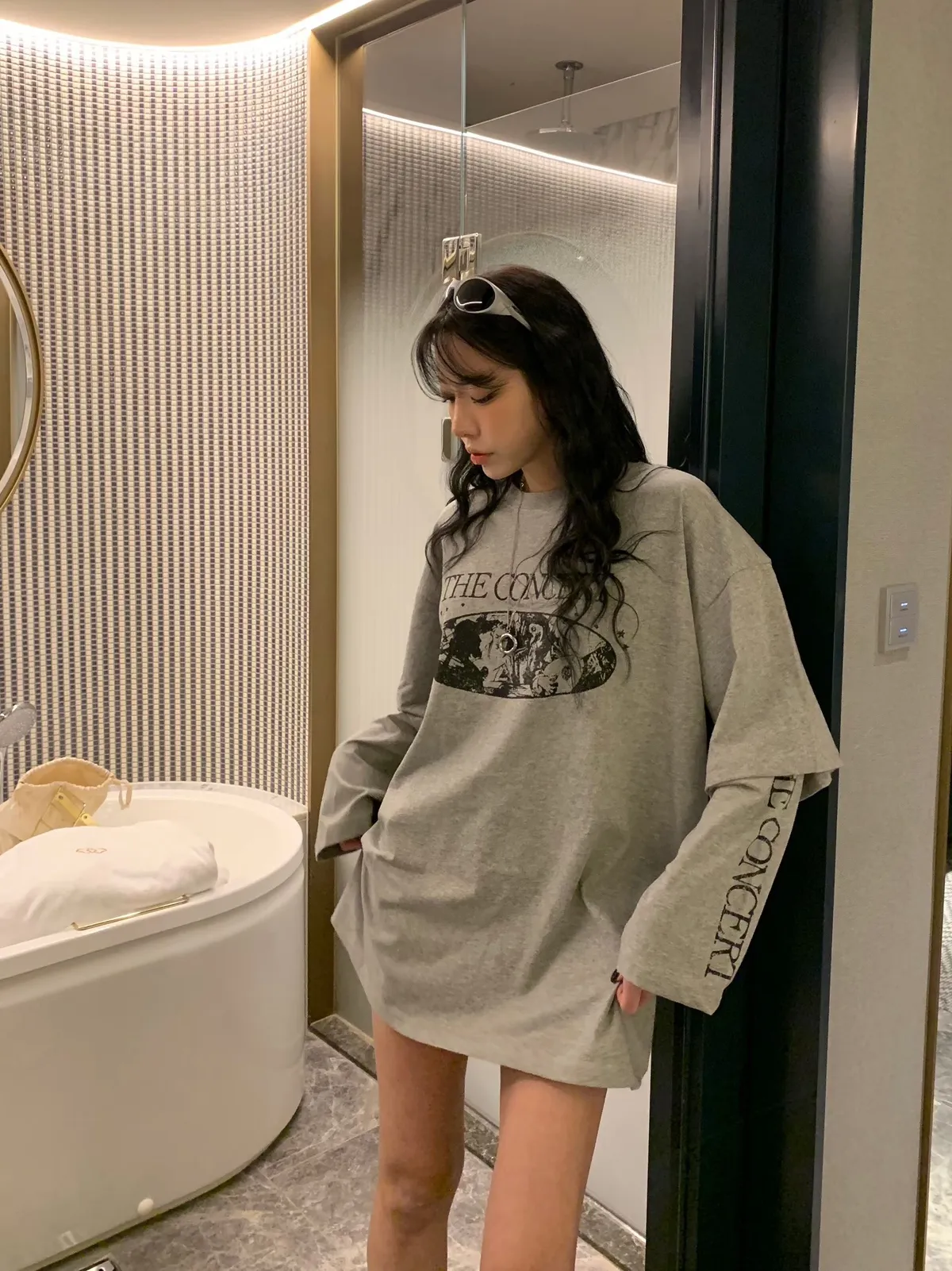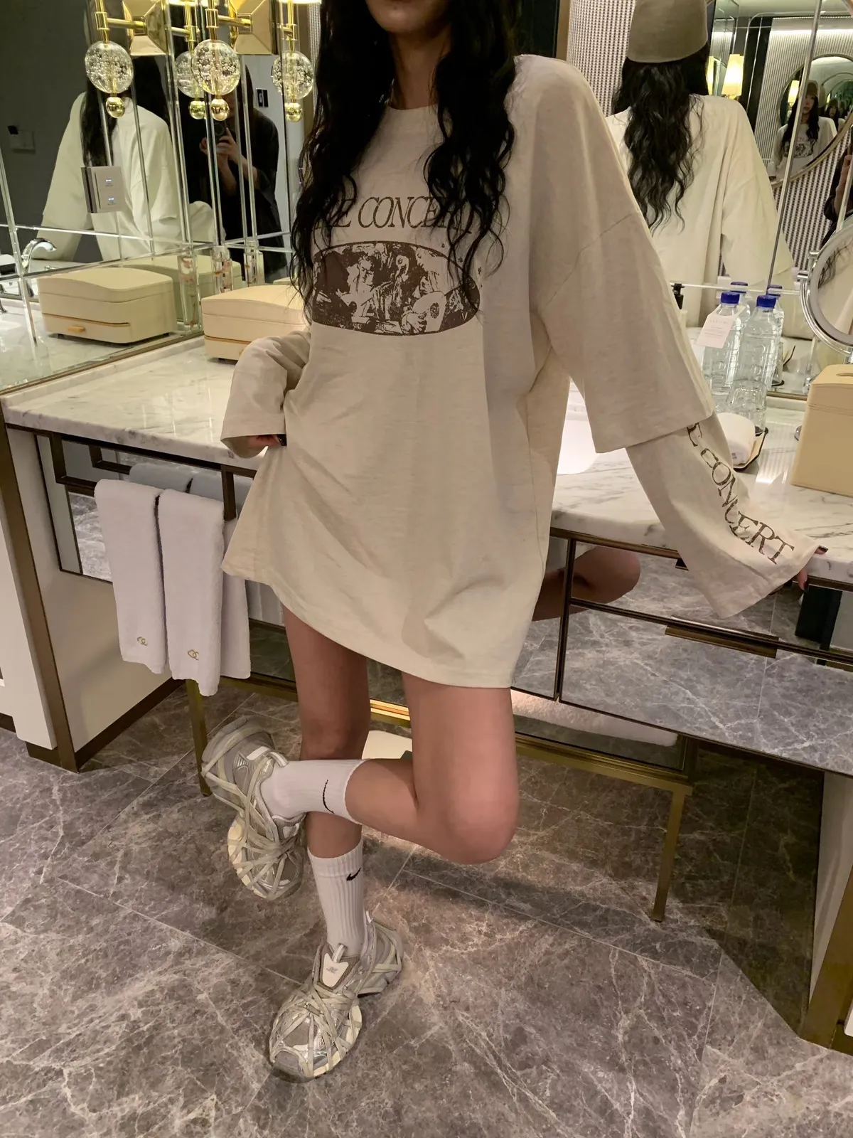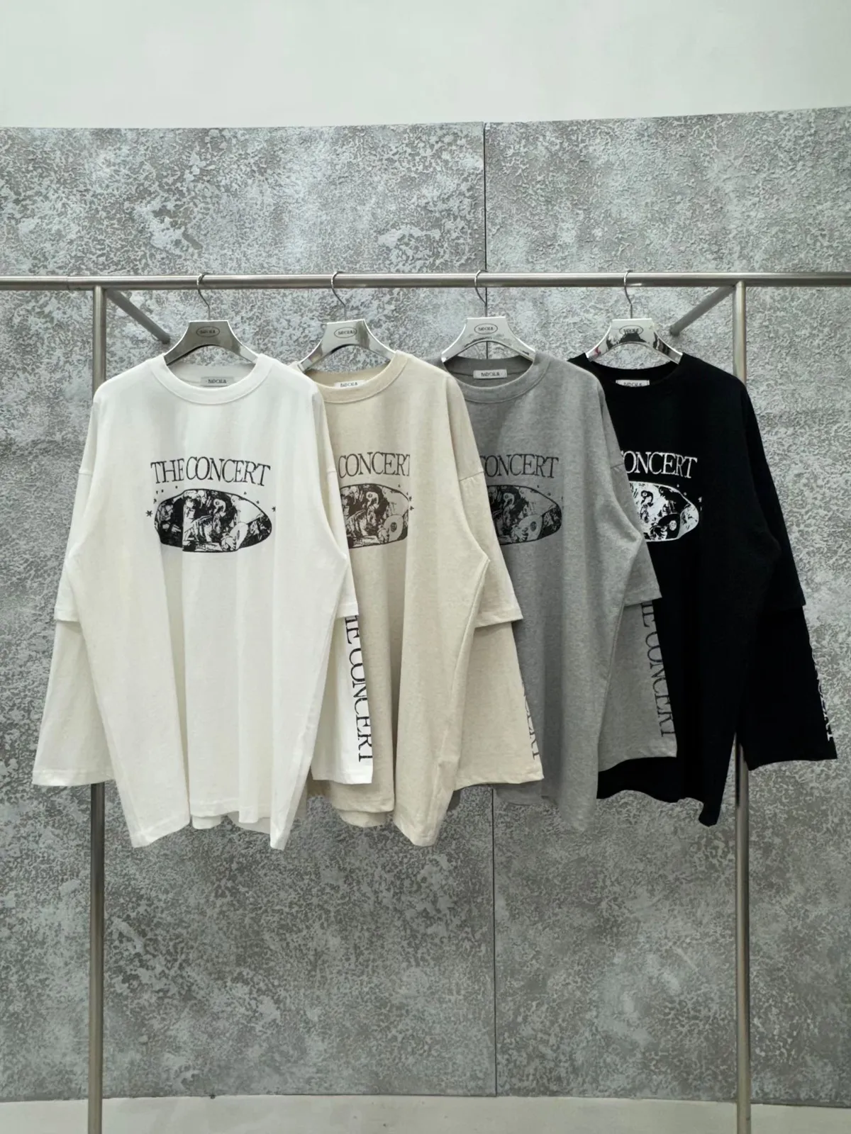 26CC08 THE CONCERT 假兩件中長版薄棉長T 4色
