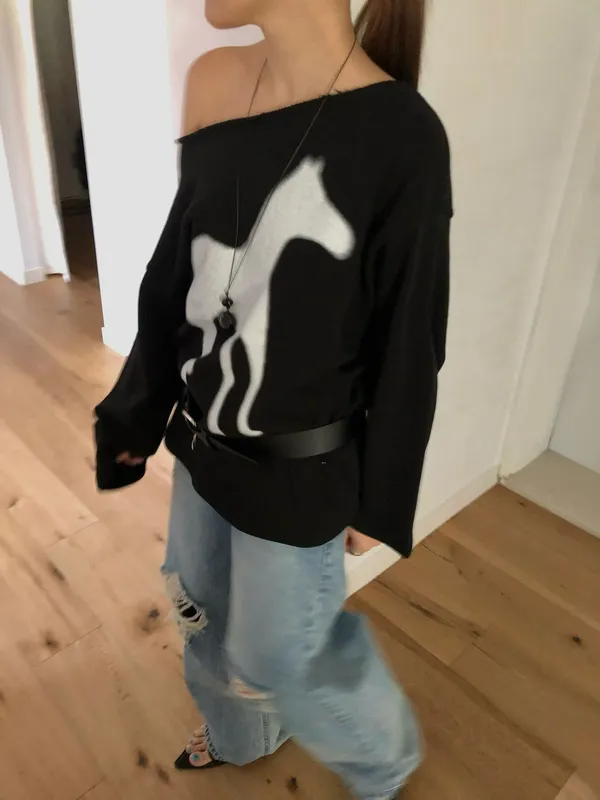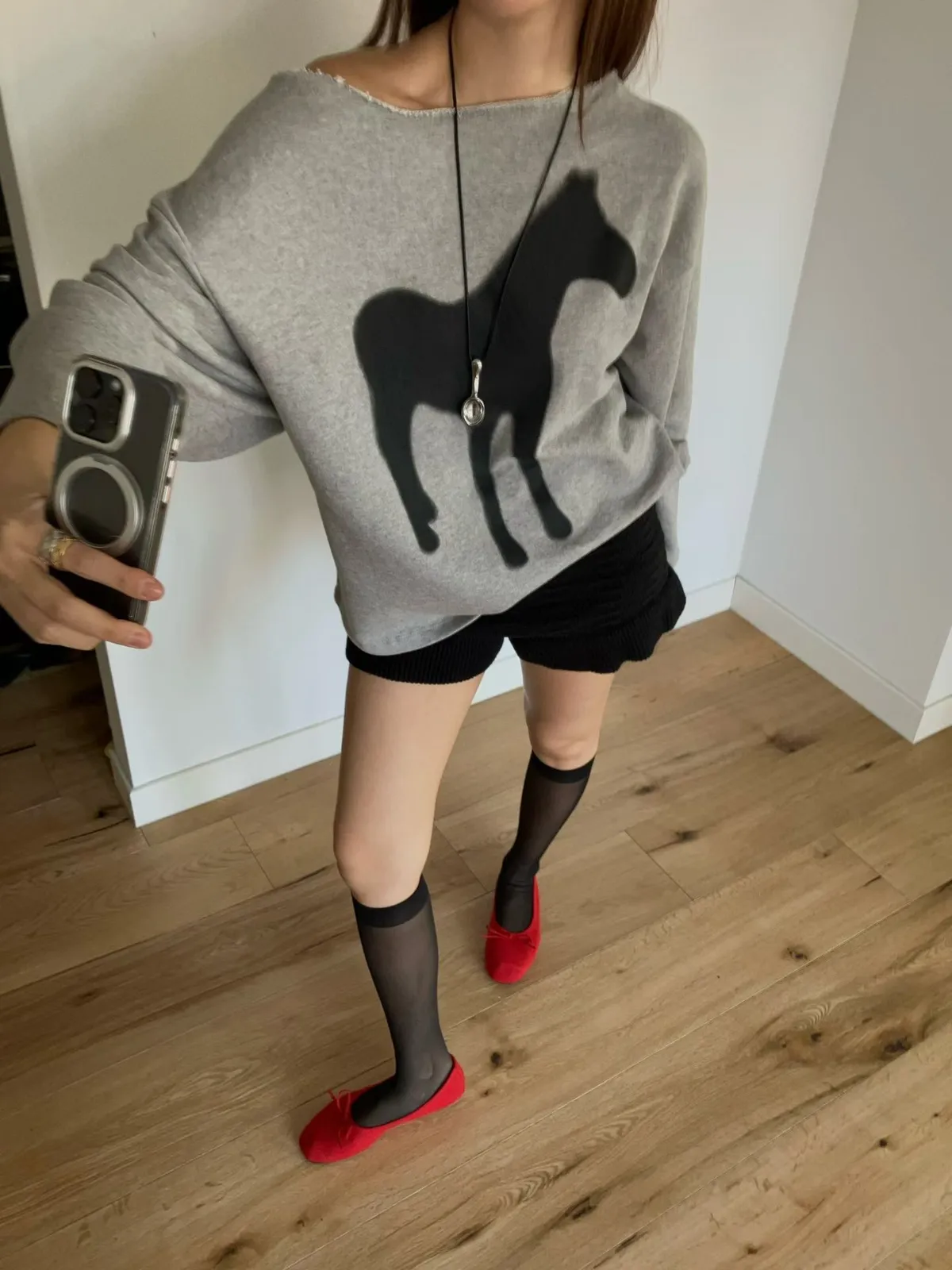 26CD01 剪影馬馬船領薄毛巾上衣 2色