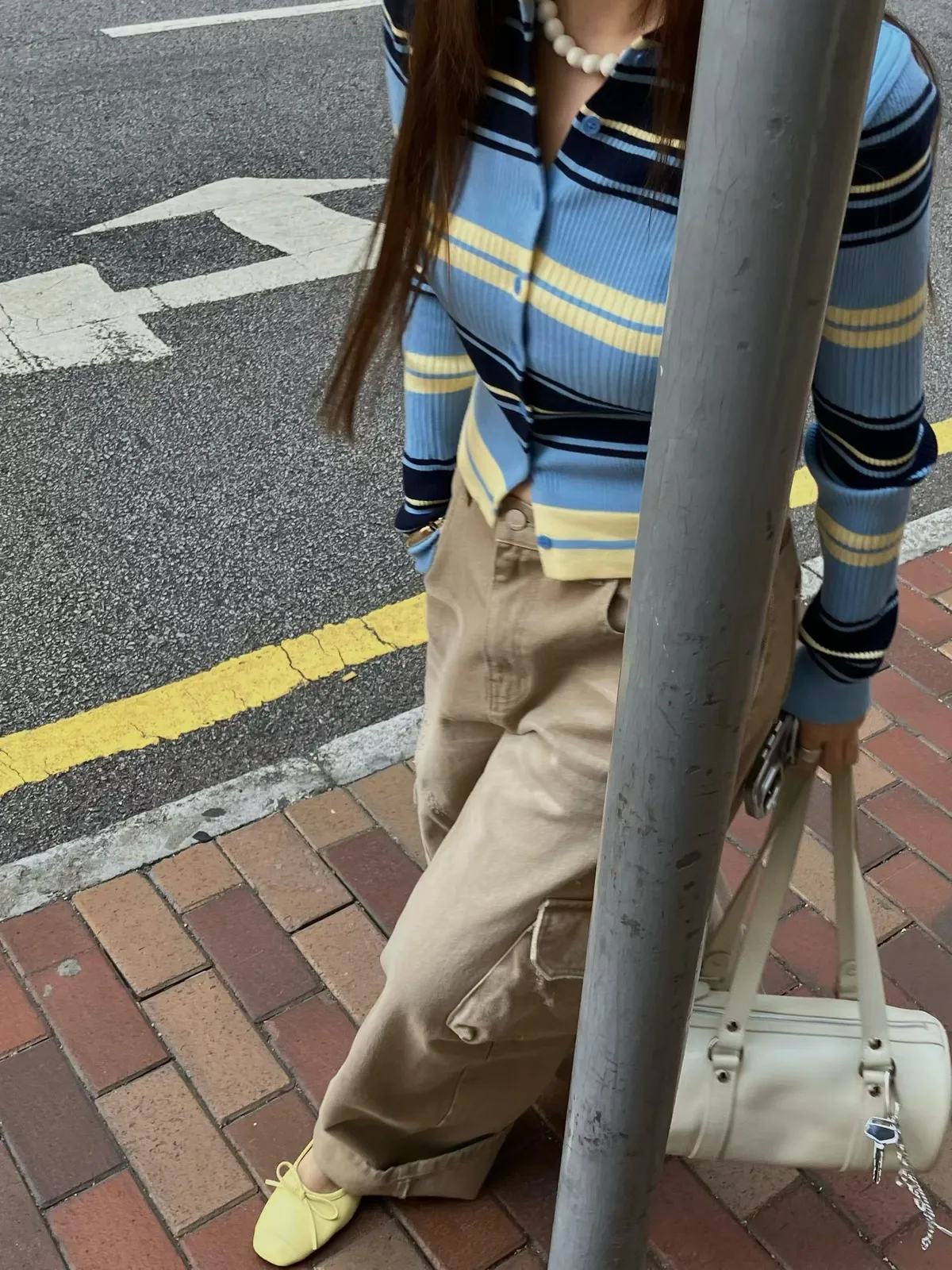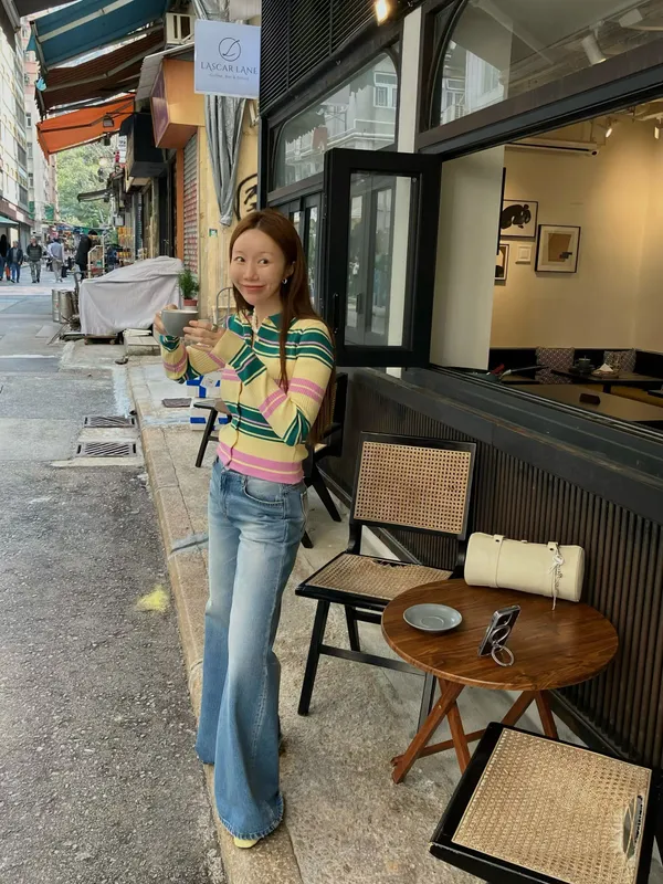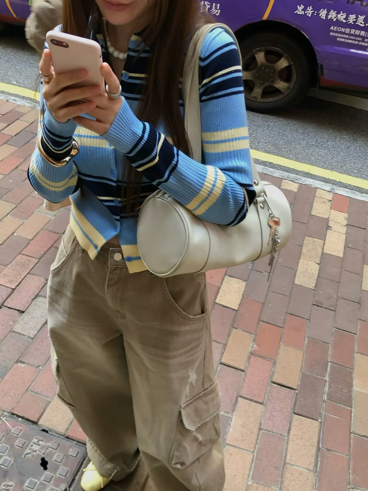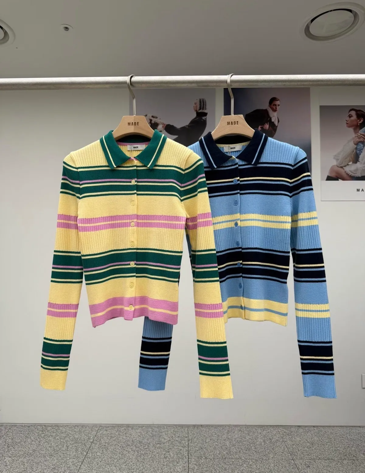 26CD08 POLO撞色條紋排扣坑條織線上衣 2色