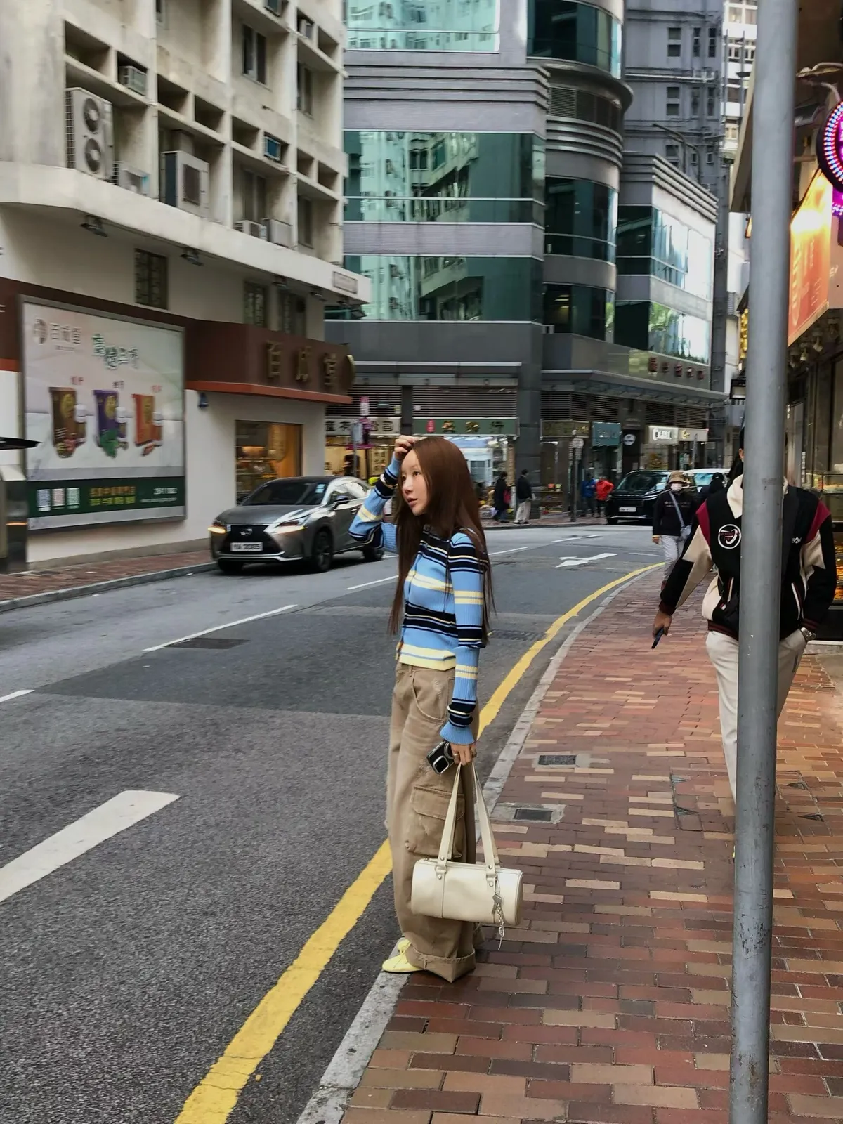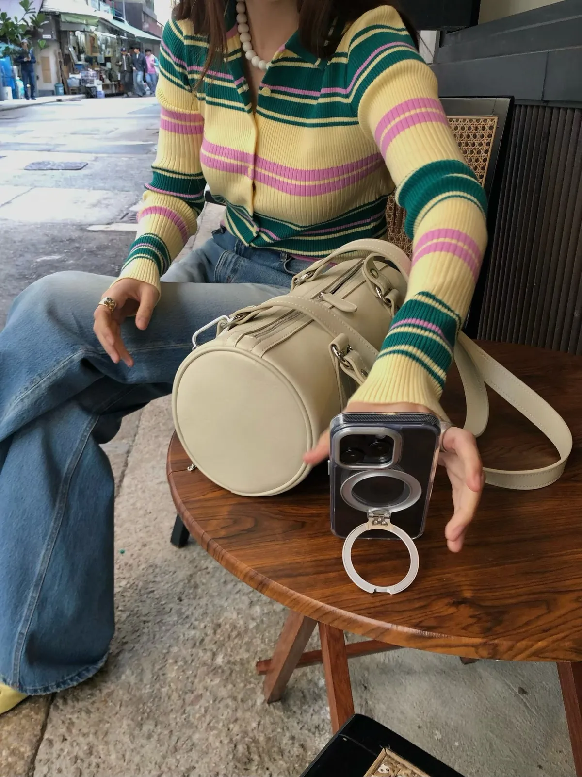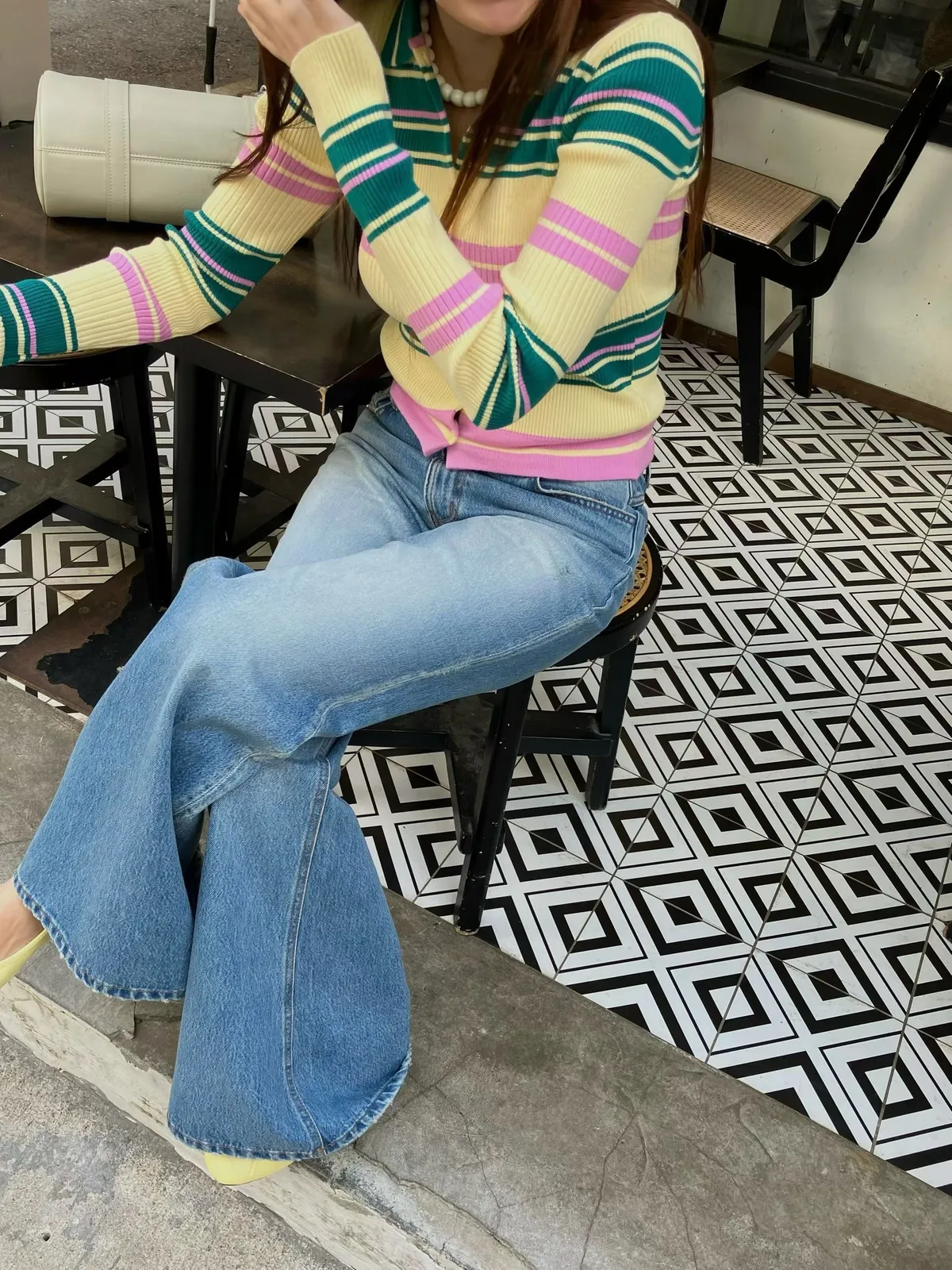 26CD08 POLO撞色條紋排扣坑條織線上衣 2色