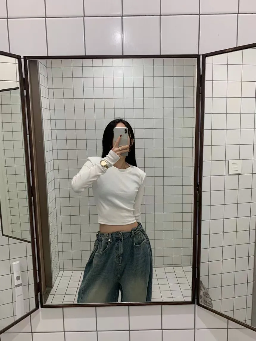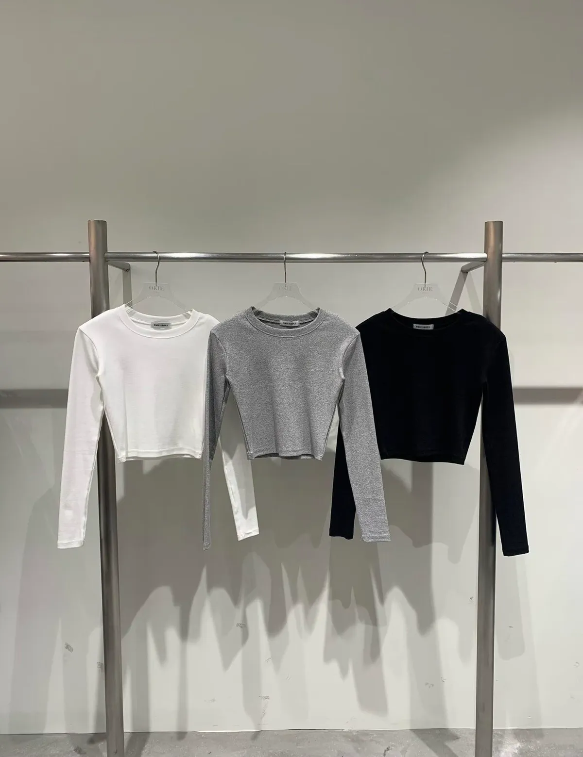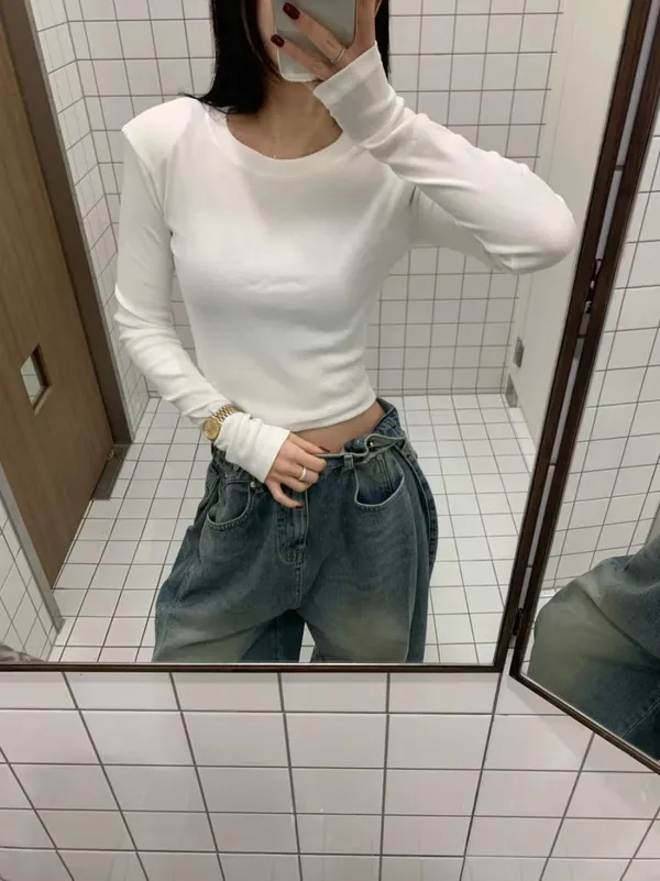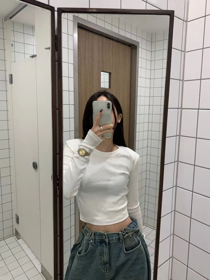 26CE15 螺紋素面短版合身長T 3色