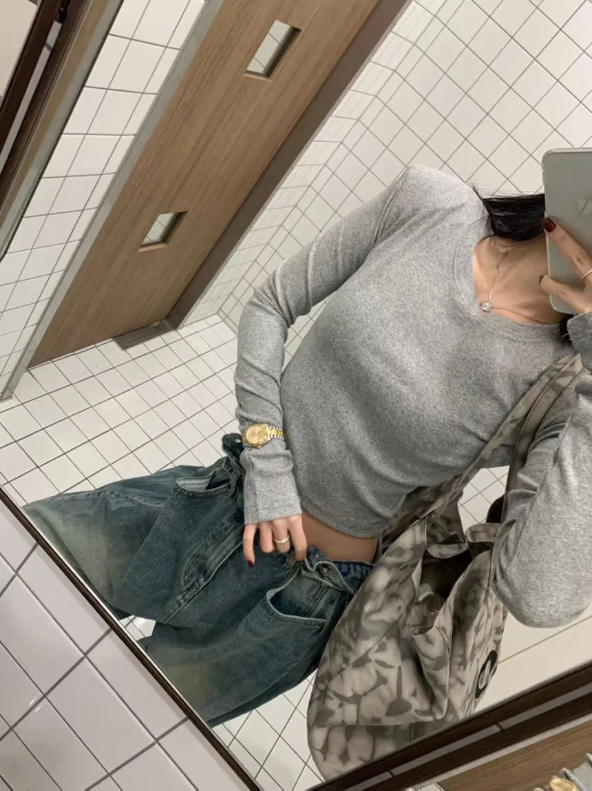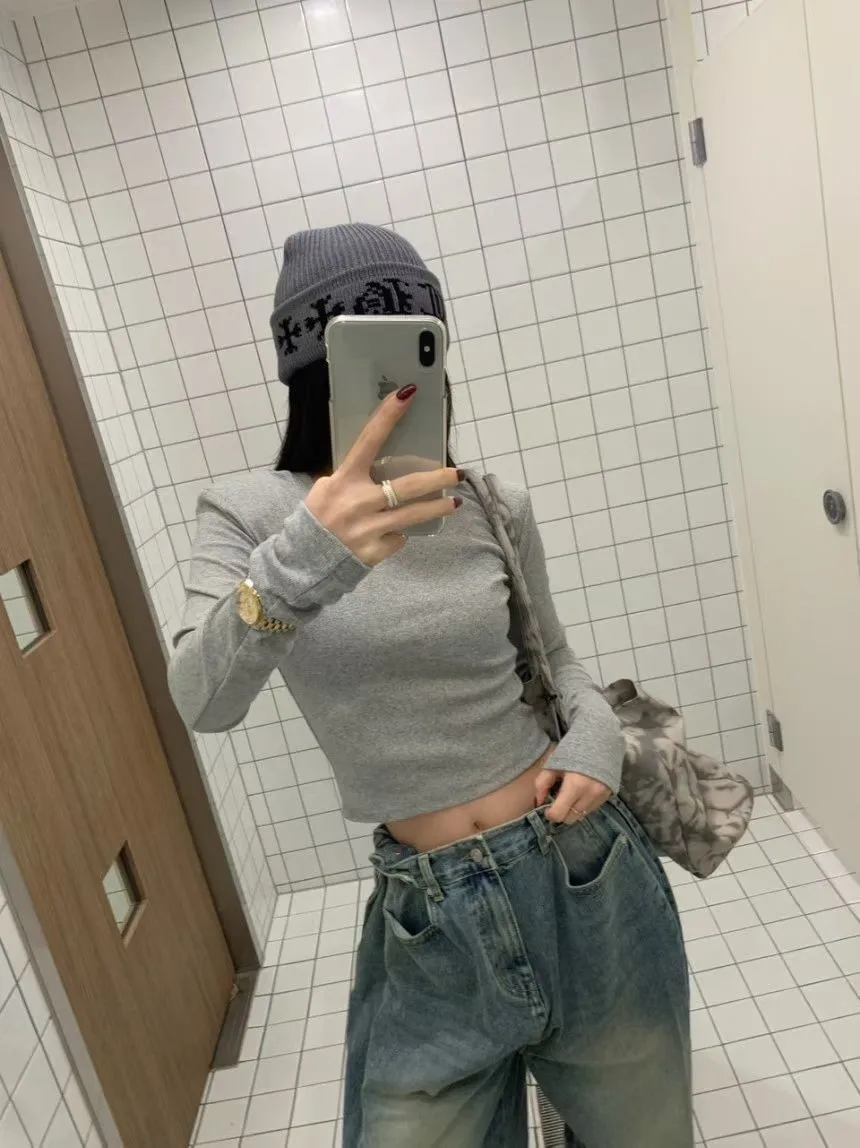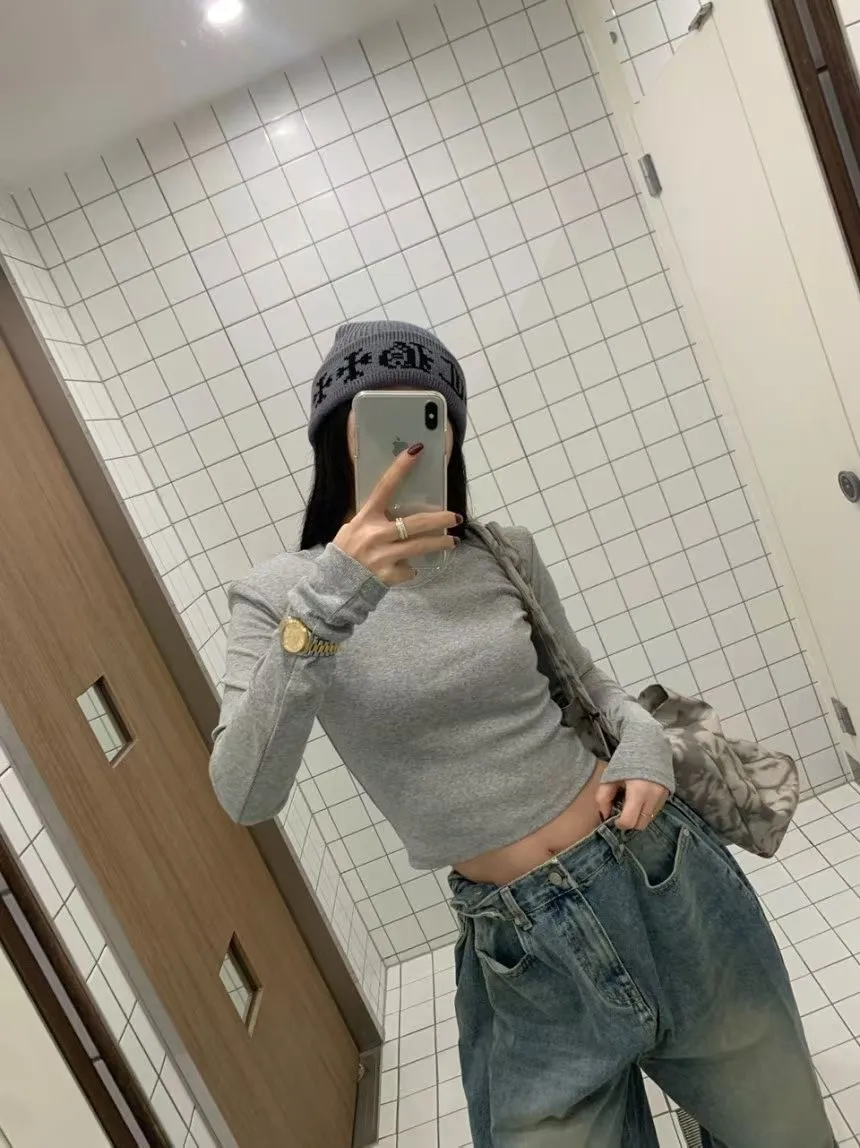 26CE15 螺紋素面短版合身長T 3色