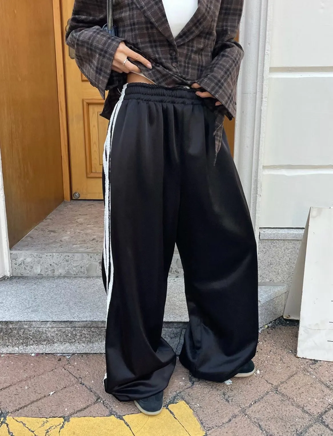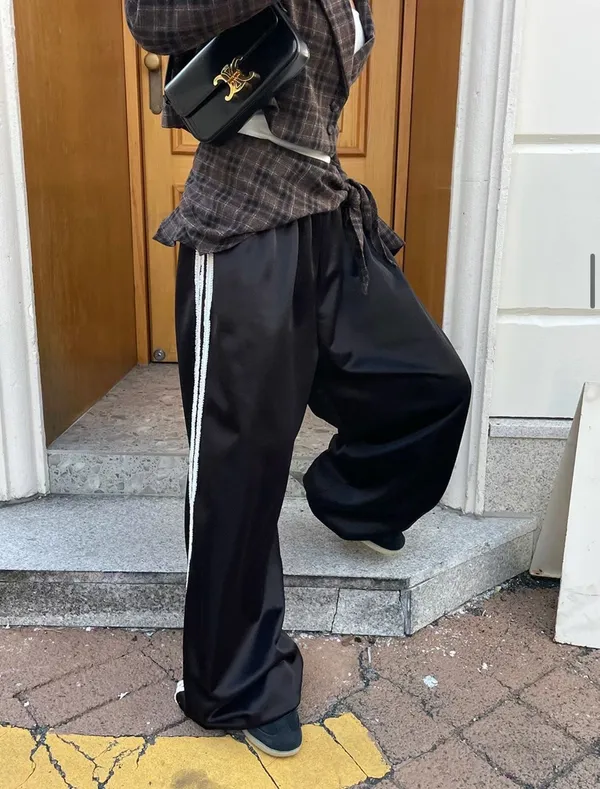 26CE16 奶油擠花邊條滑料兩穿縮腳長褲