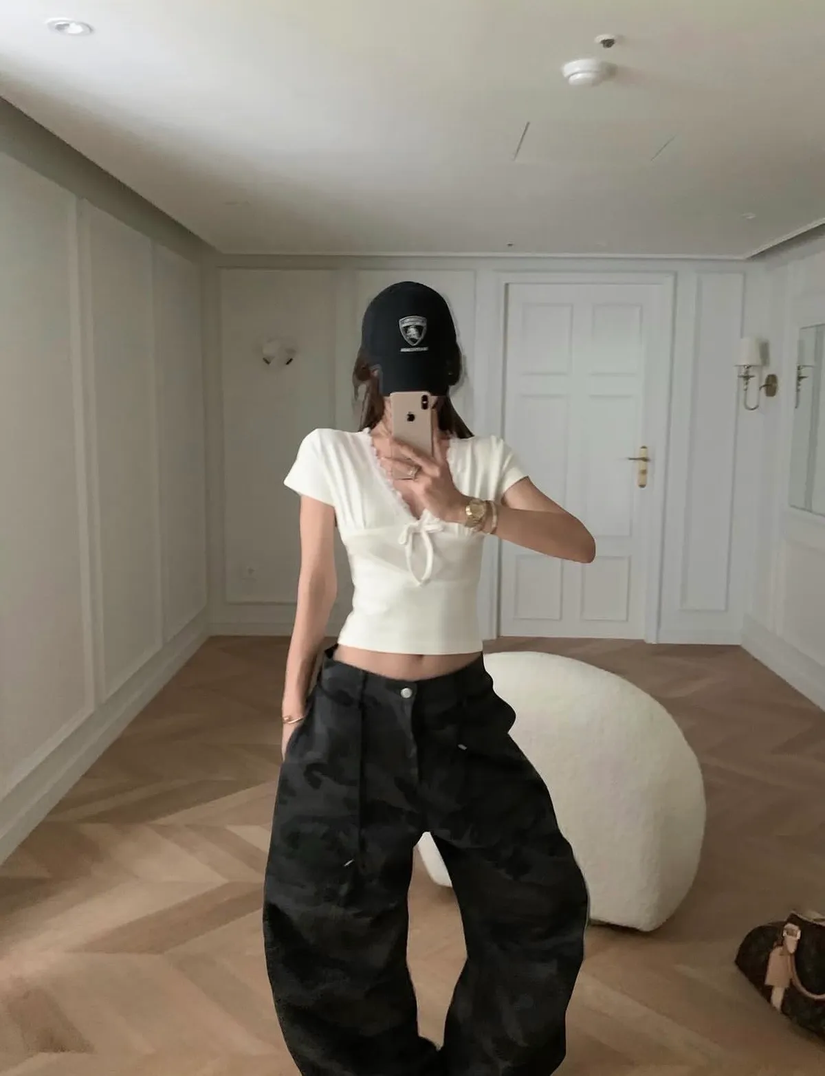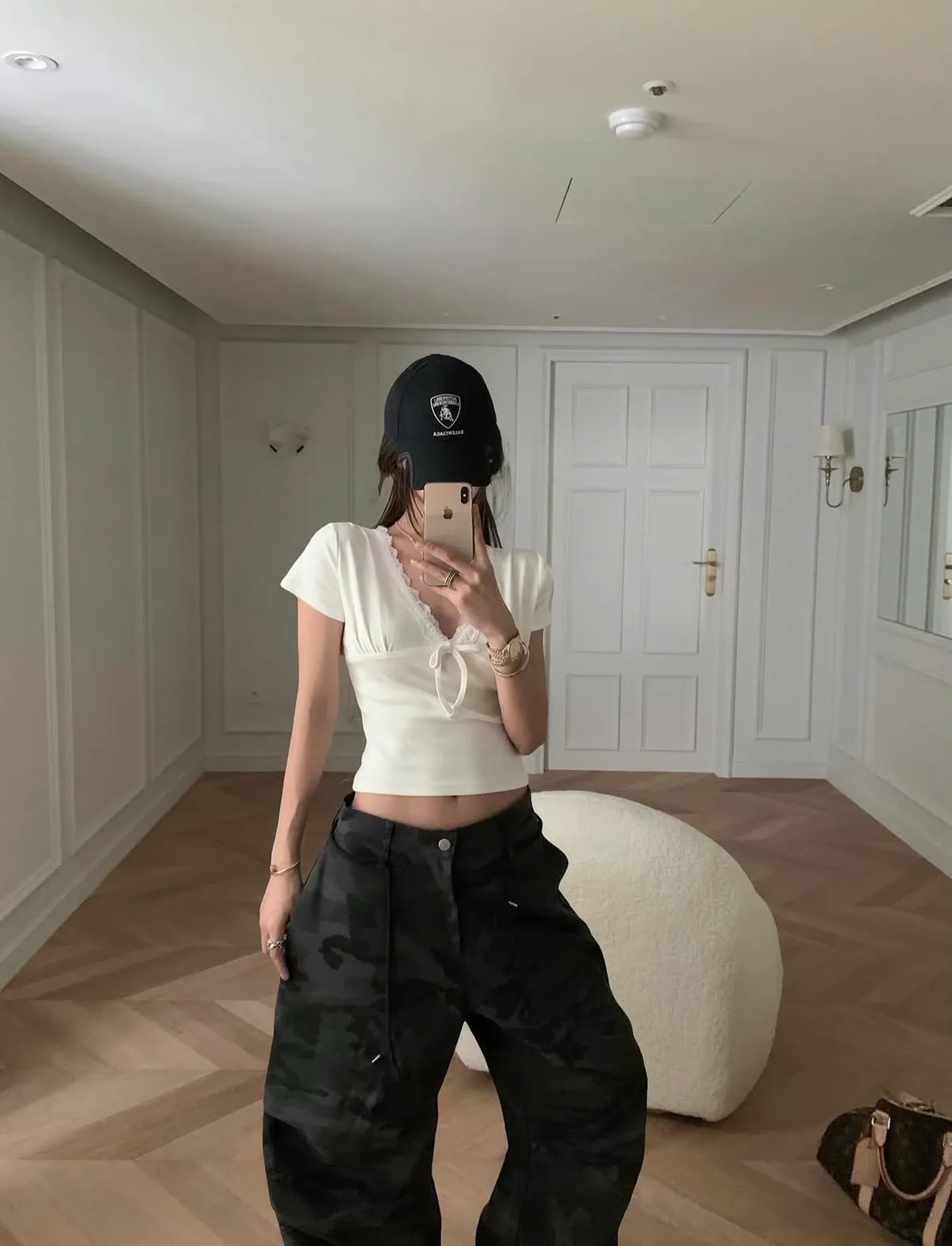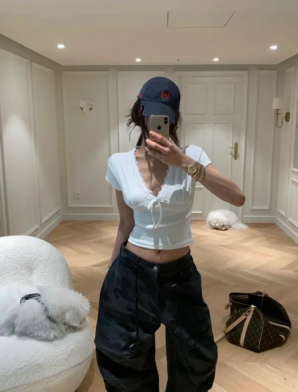 26CG12 蕾絲V領小蝴蝶結短T 3色
