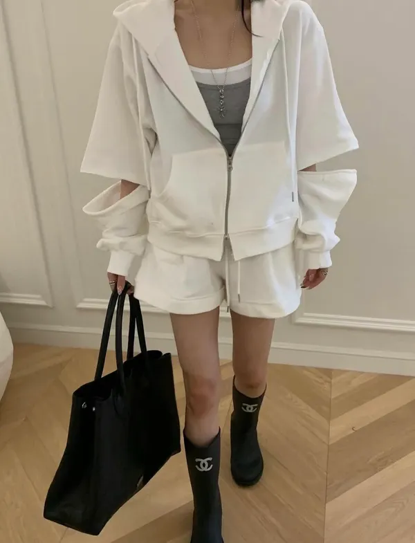 26CG20 可拆袖薄毛巾雙拉鍊連帽外套 3色