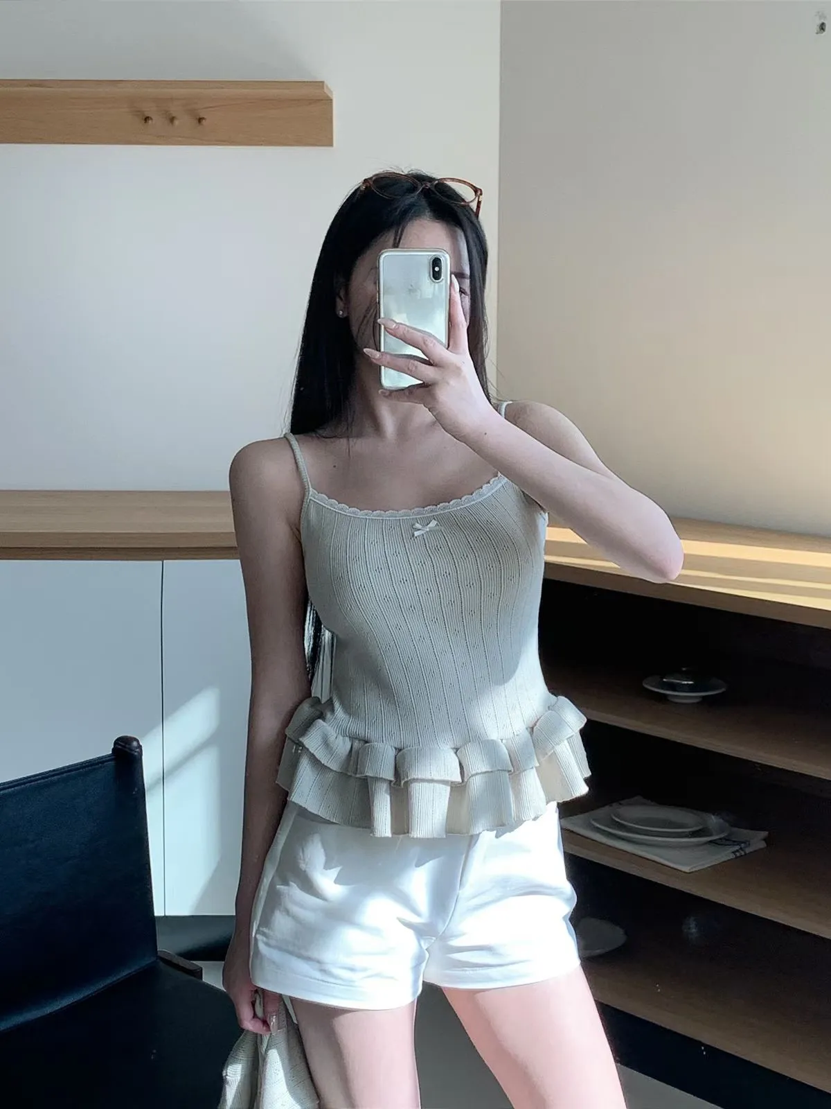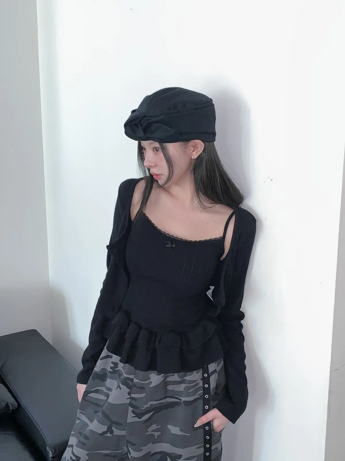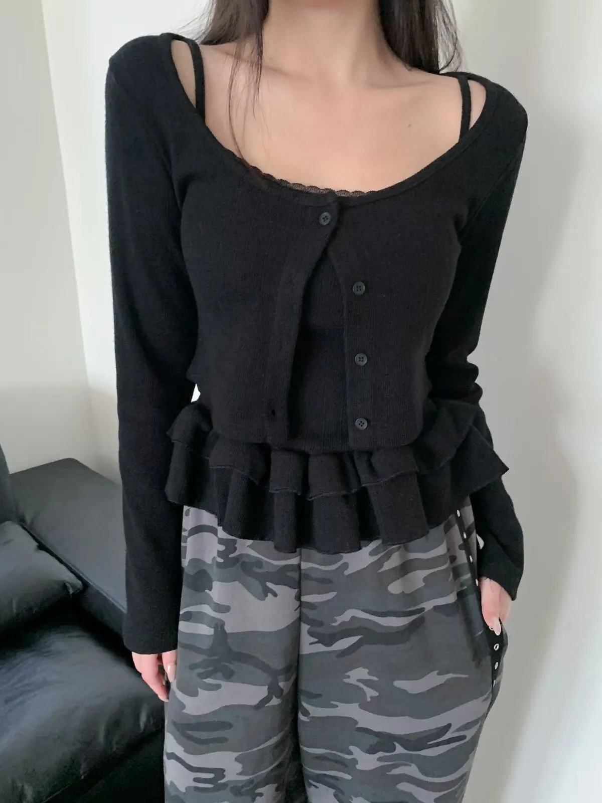 26CH03 (闆娘自留)洞洞織線荷葉下擺背心+短版外罩 set 3色