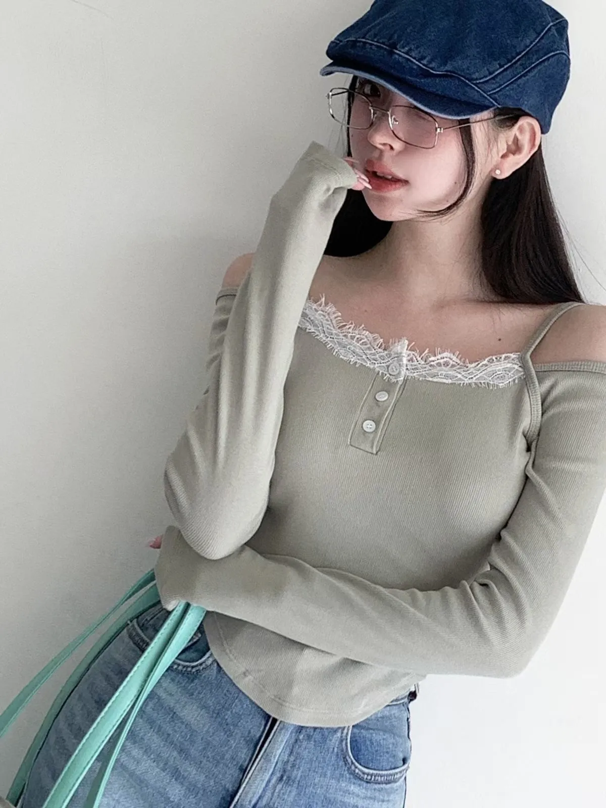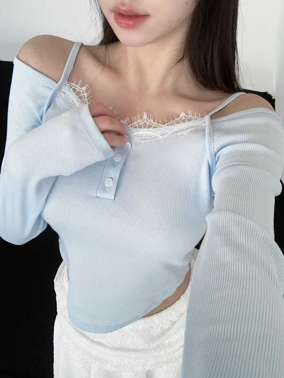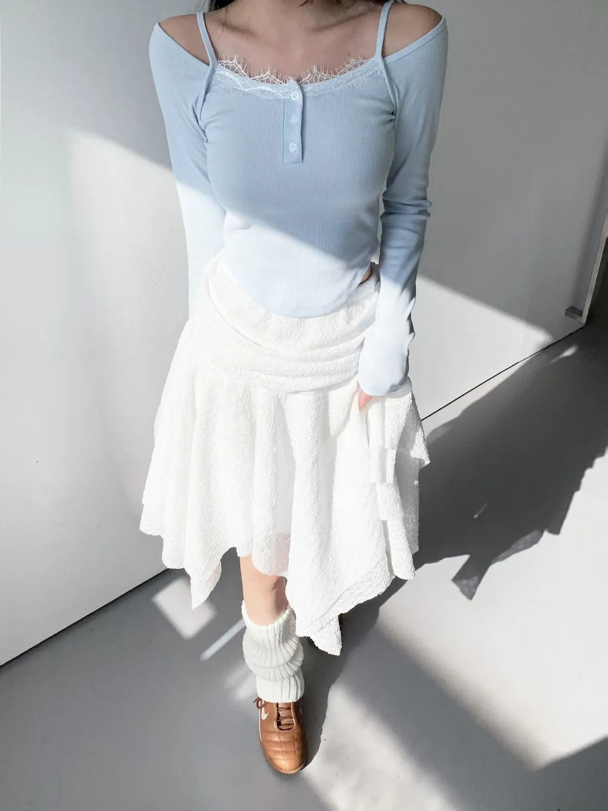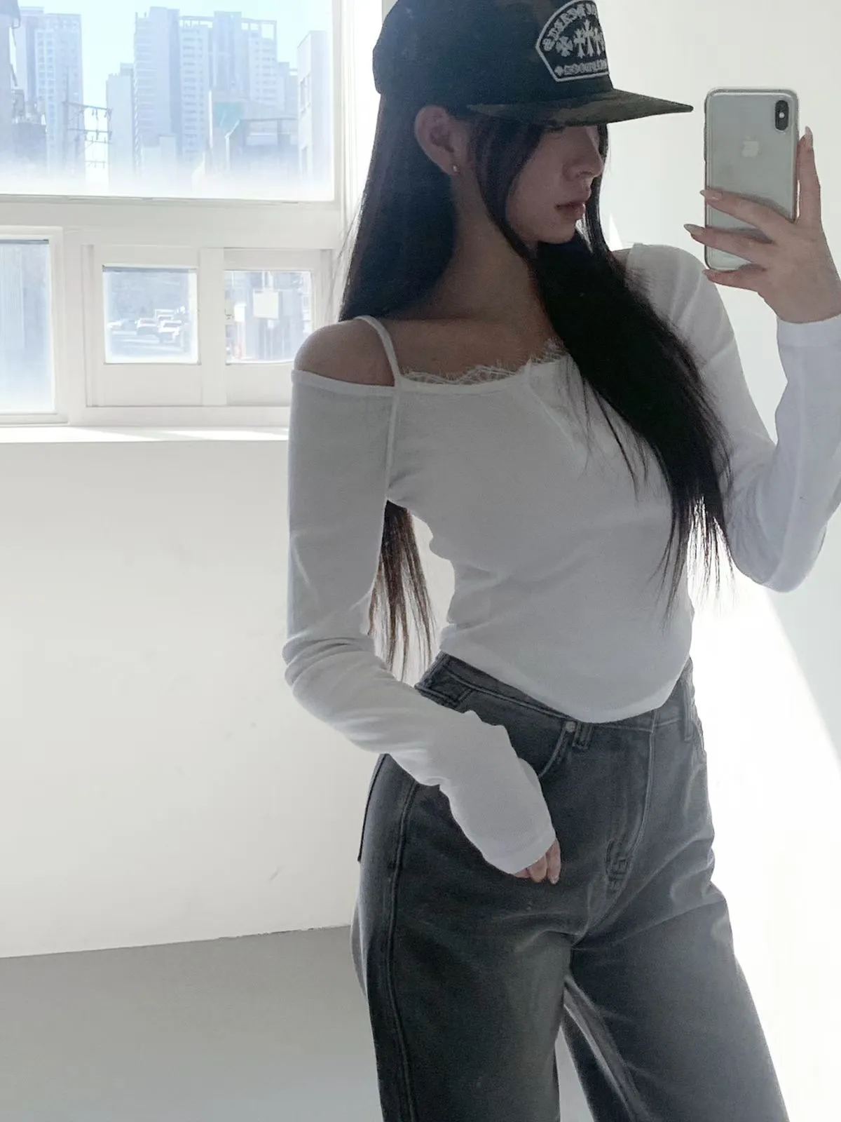26CH08 睫毛蕾絲背心假兩件平口上衣 4色