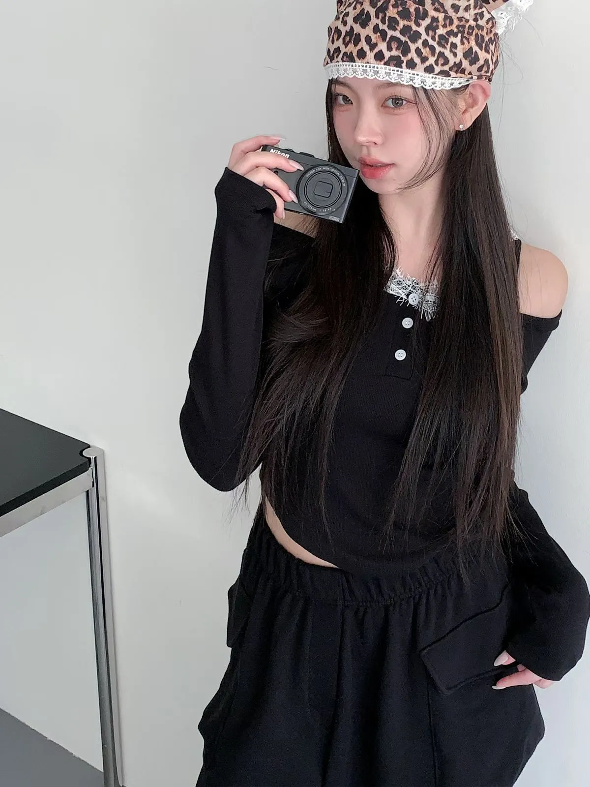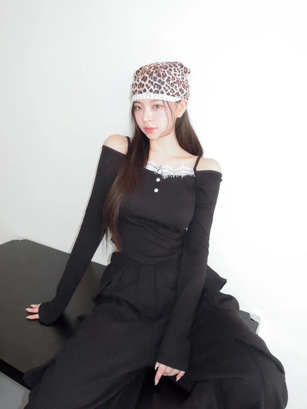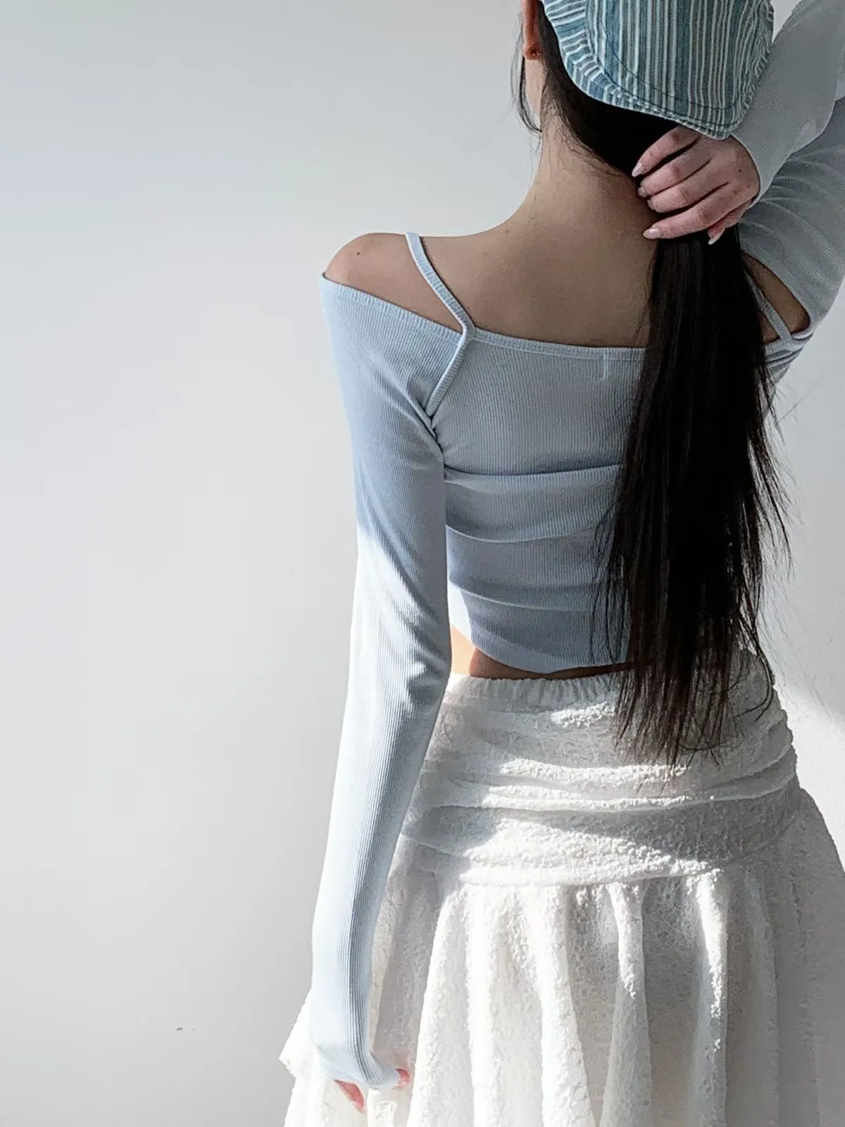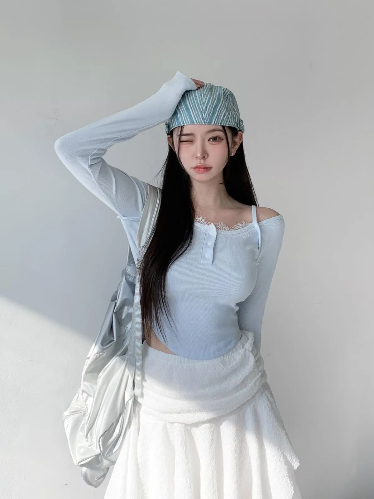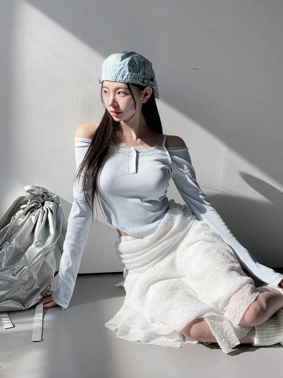 26CH08 睫毛蕾絲背心假兩件平口上衣 4色
