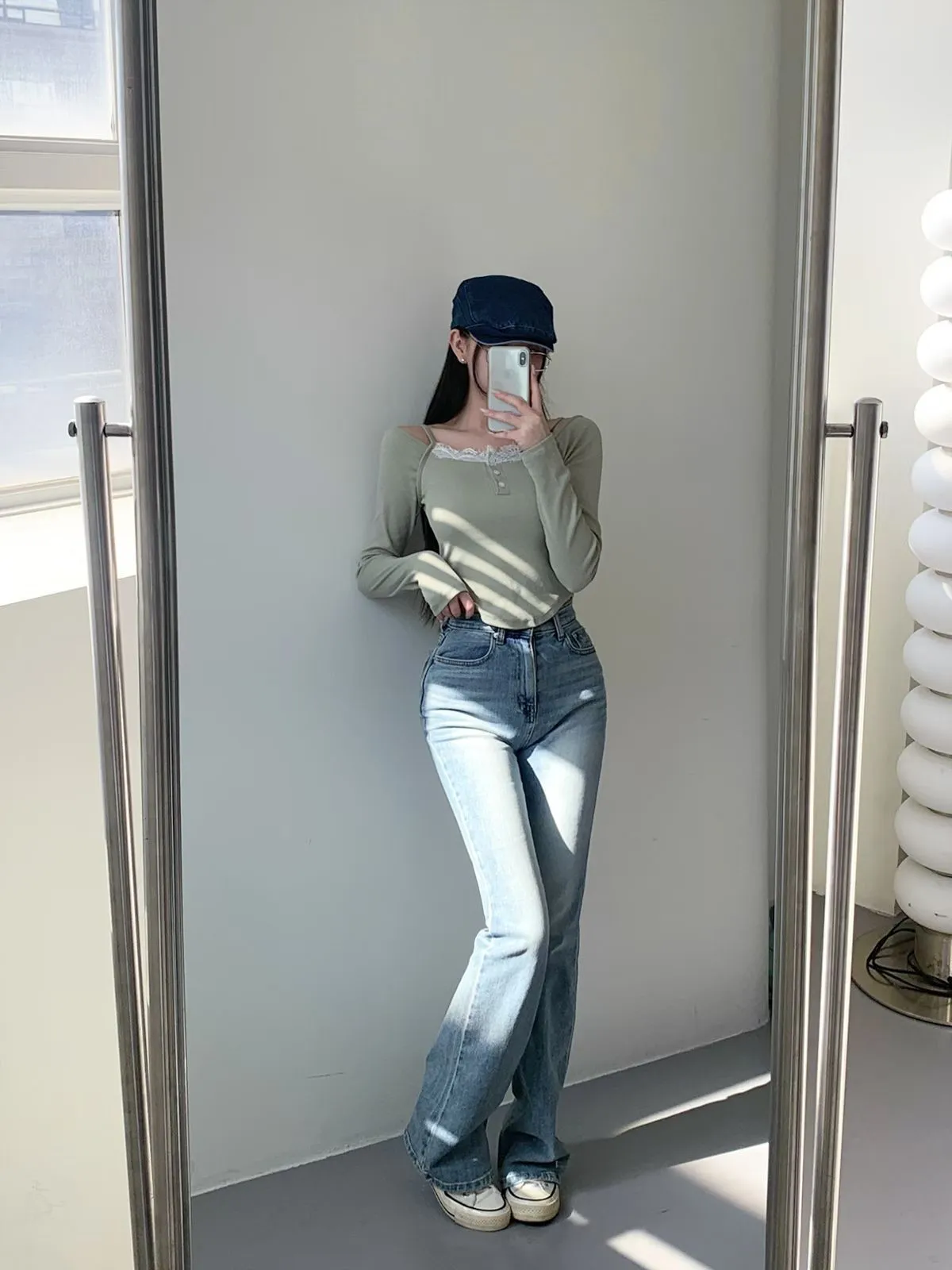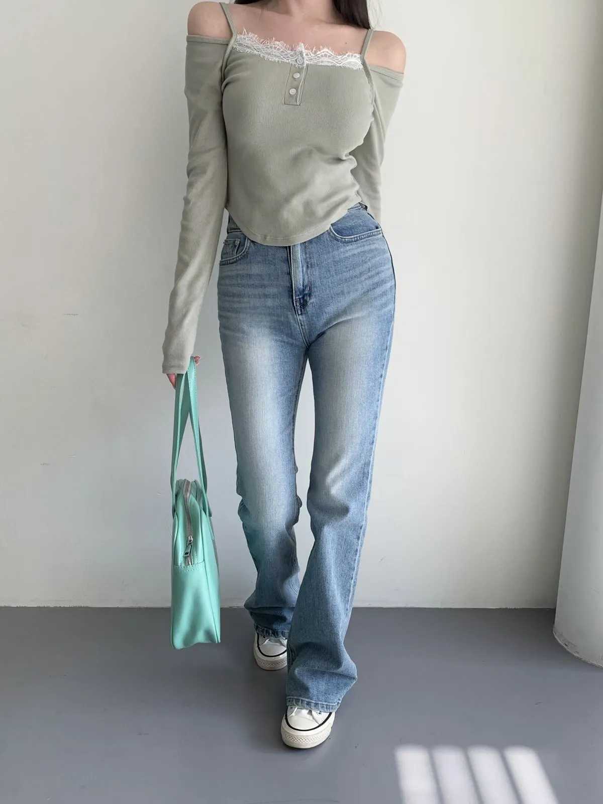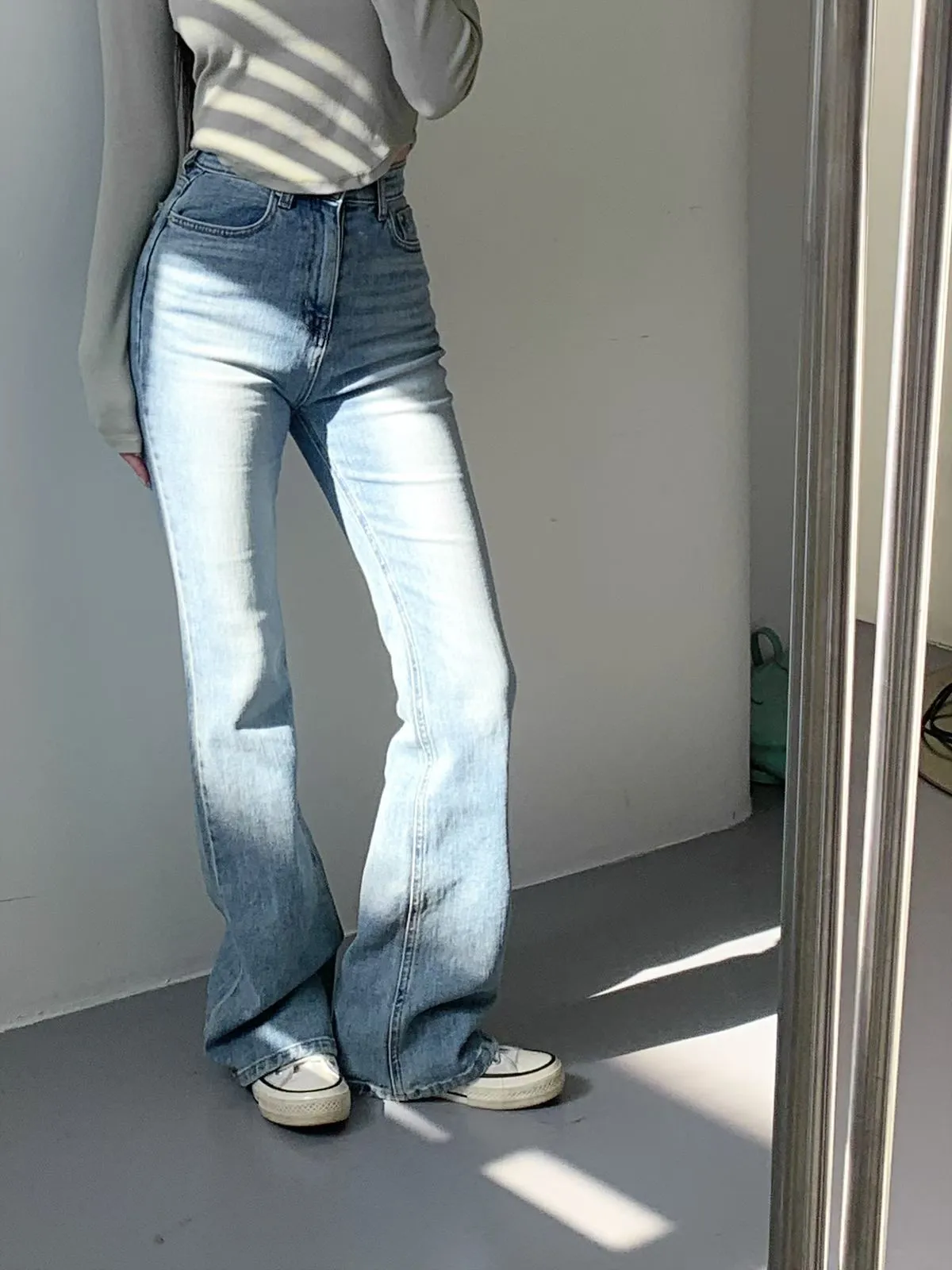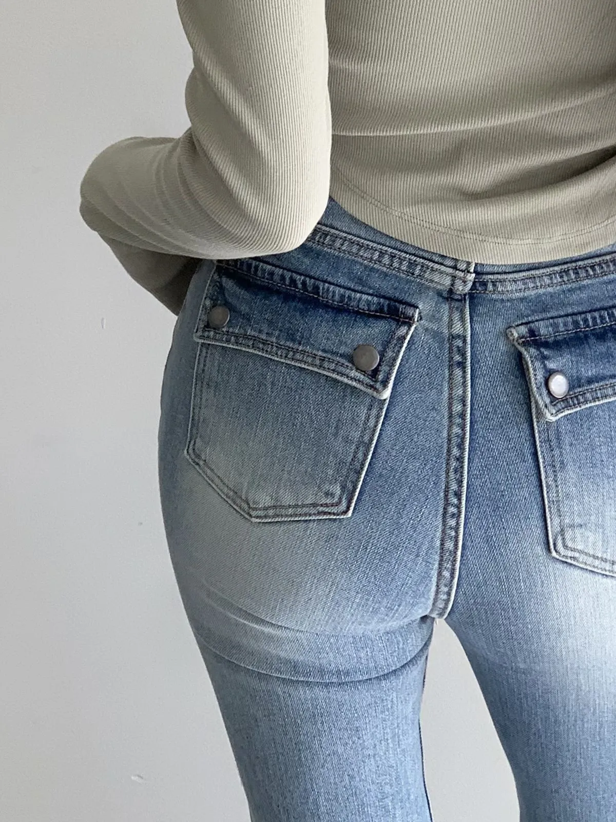 26CH11 版型偏小)後口袋喇叭牛仔長褲 SML