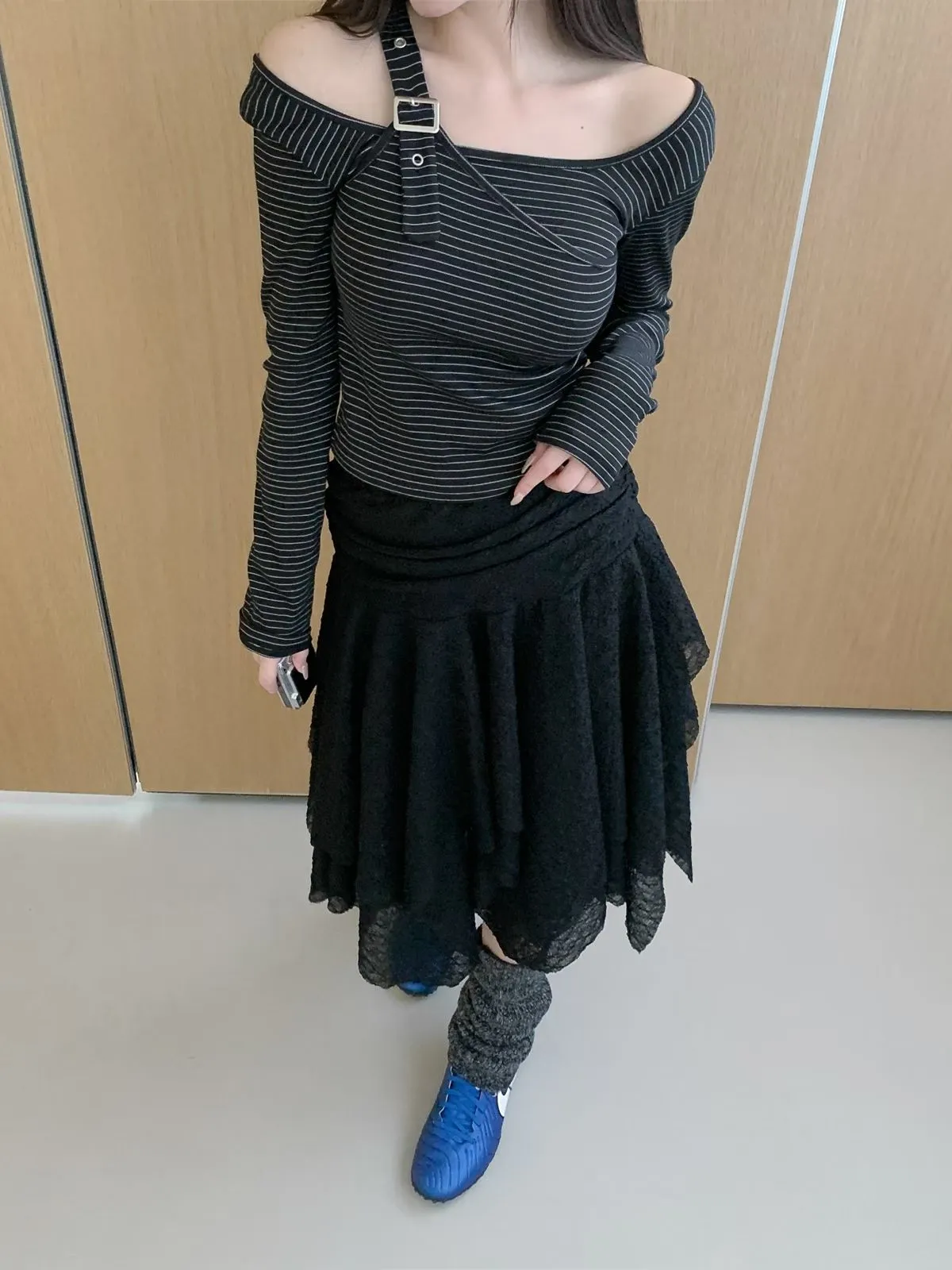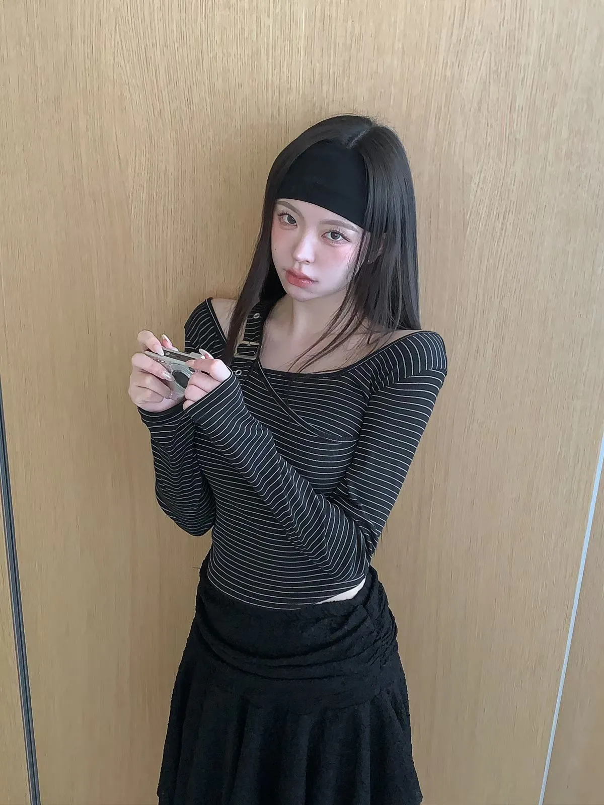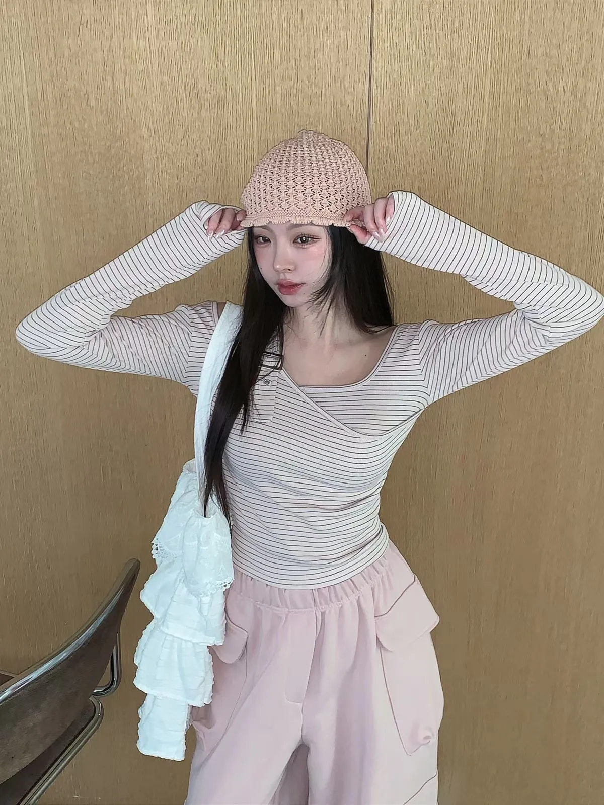 26CH13 細條紋調扣肩帶上衣 3色