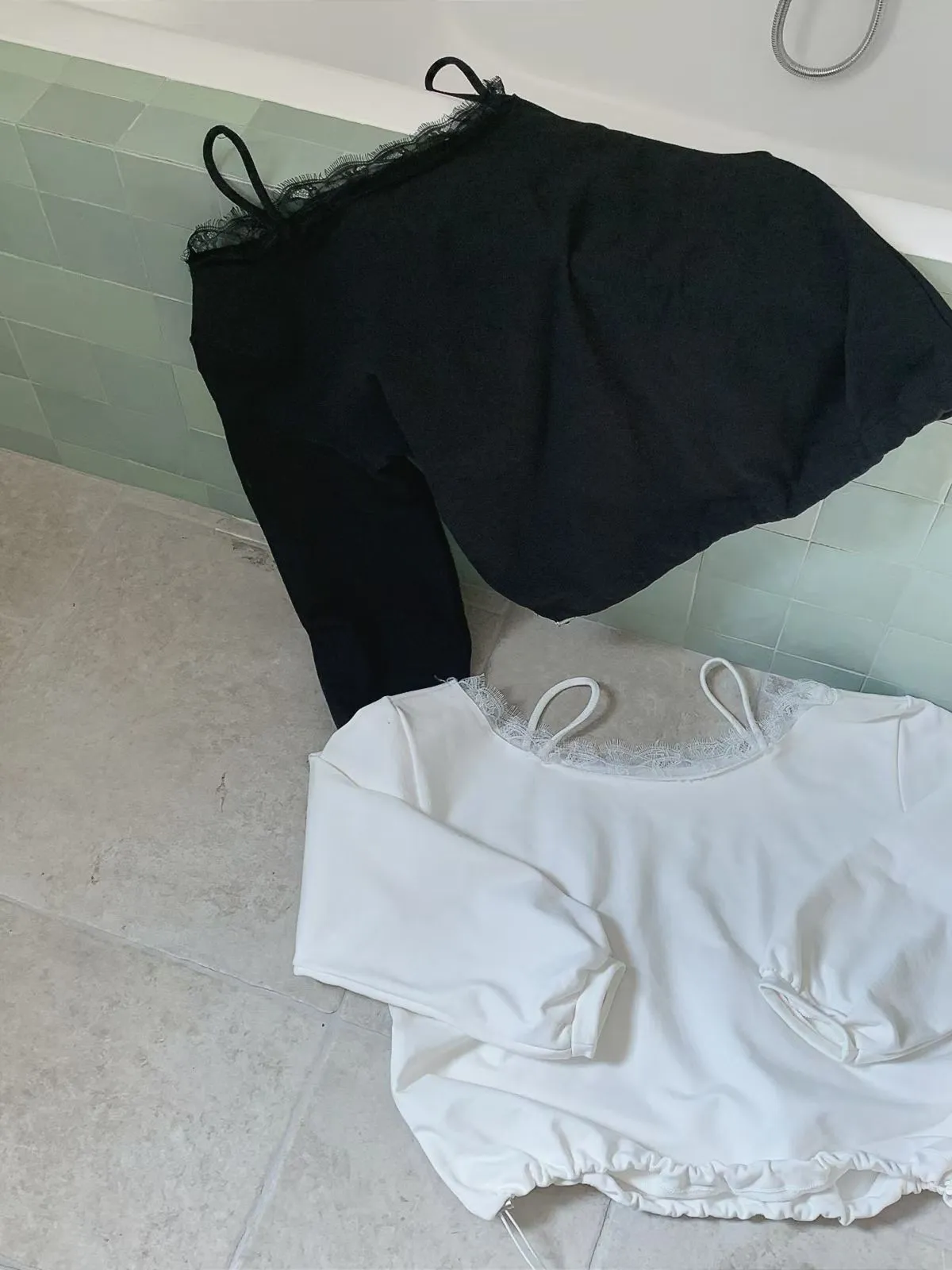 26CH19 睫毛蕾絲背心平口薄毛巾上衣 2色