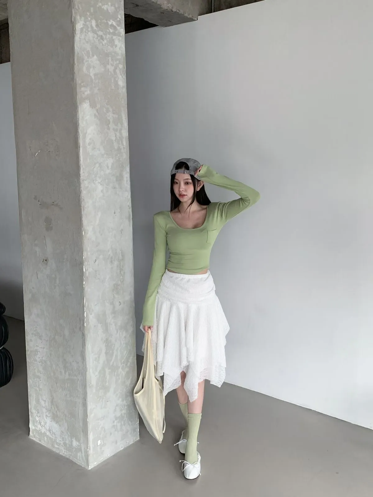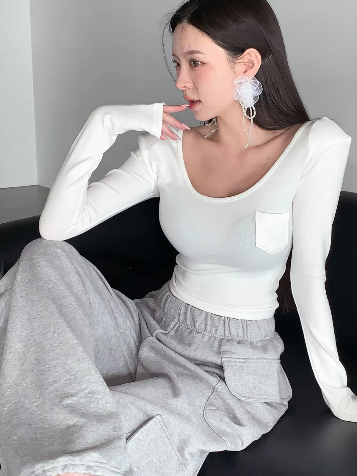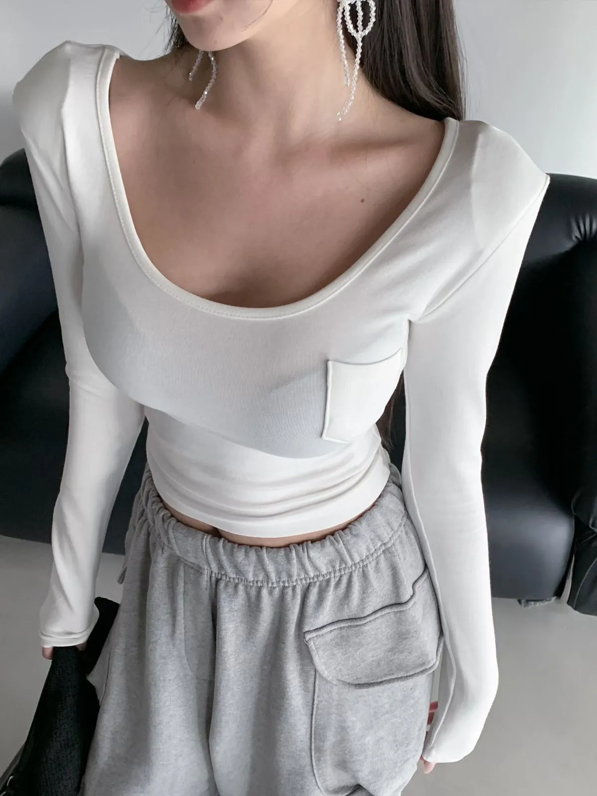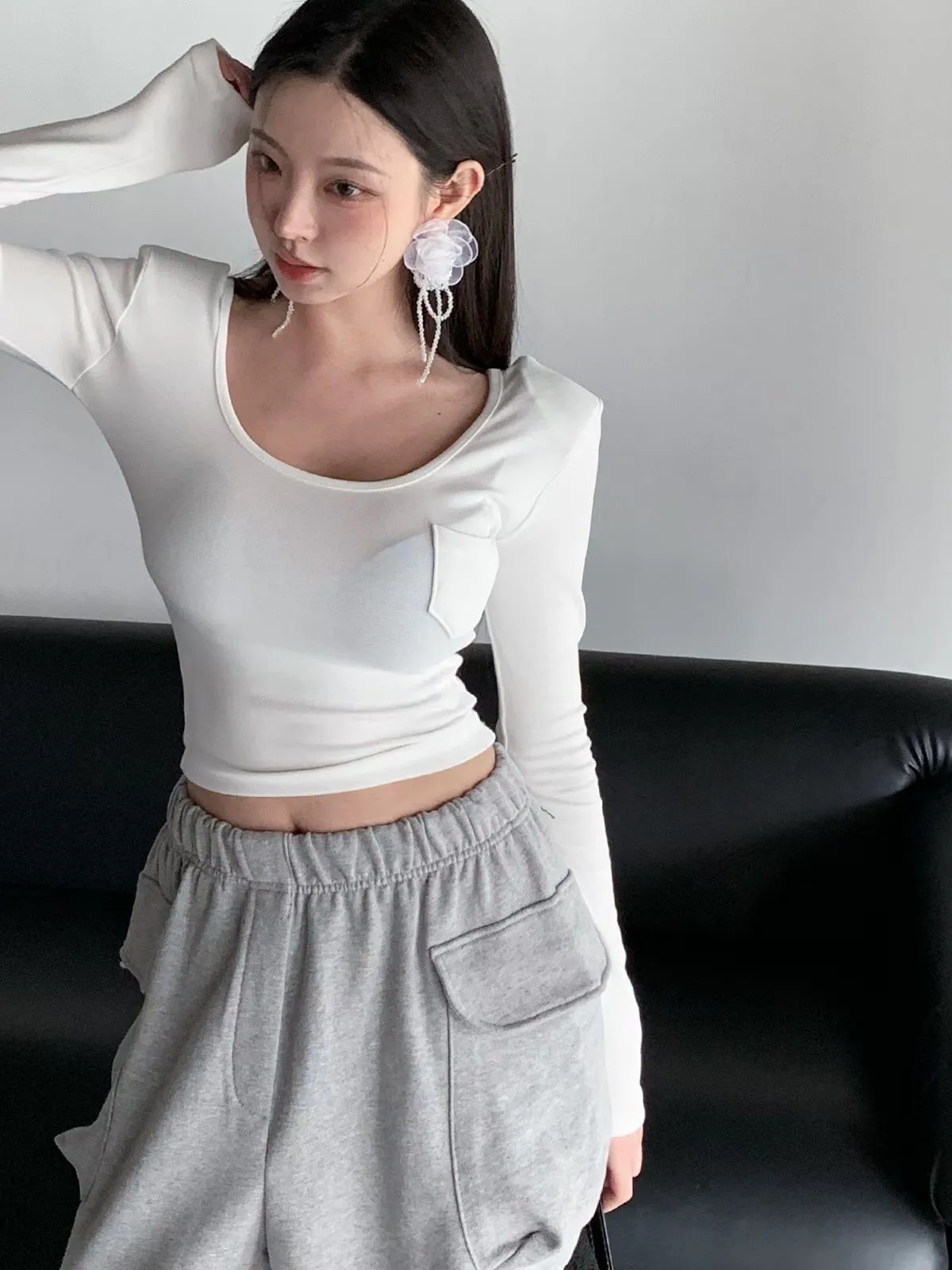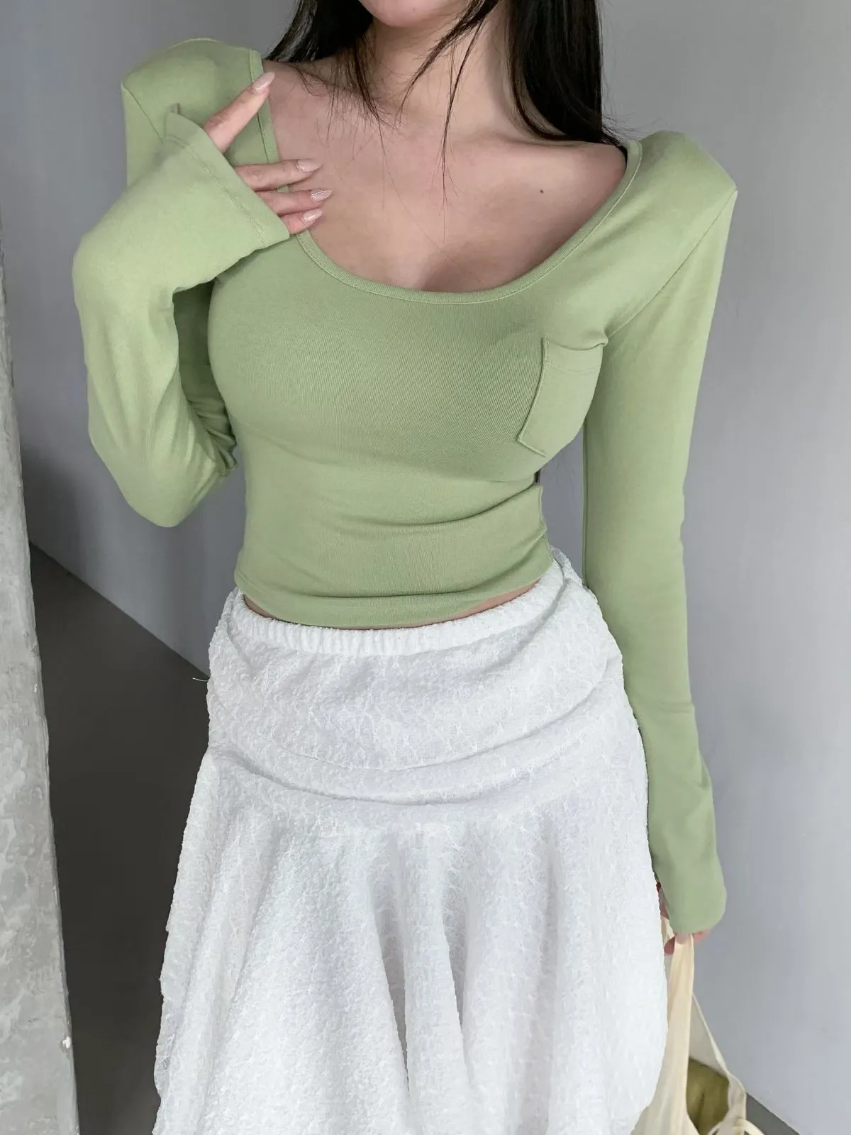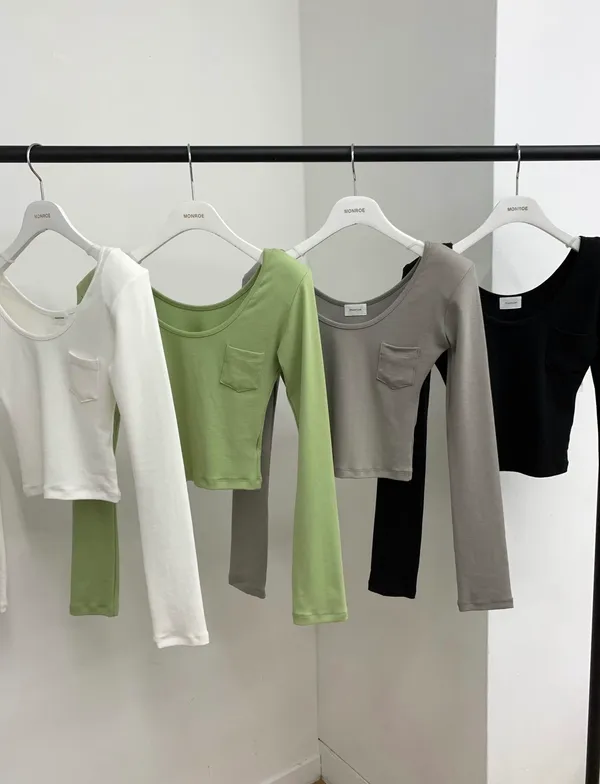 26CH22 小口袋U領短版長上衣 4色