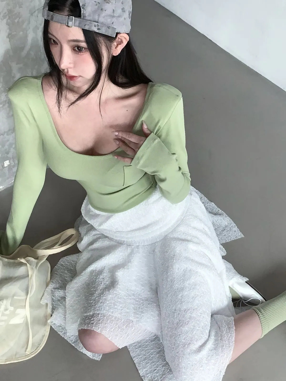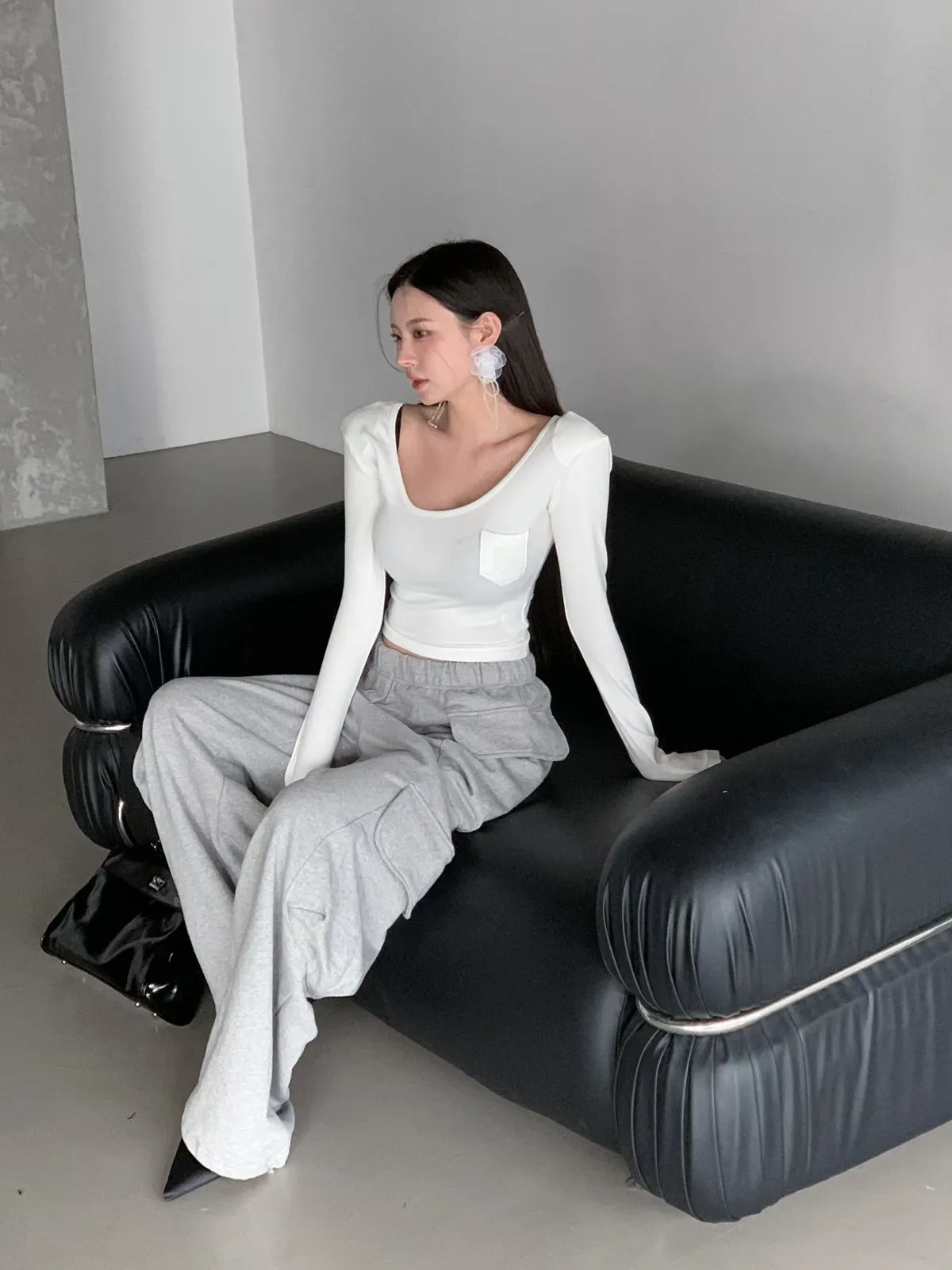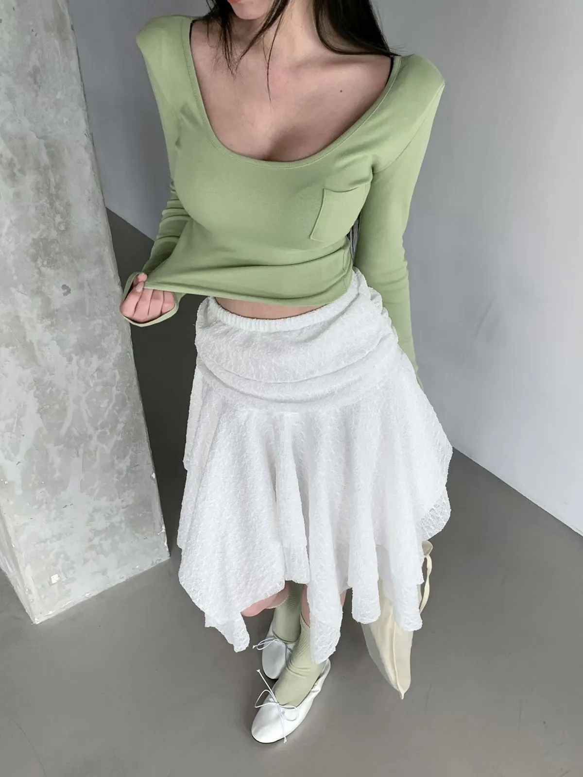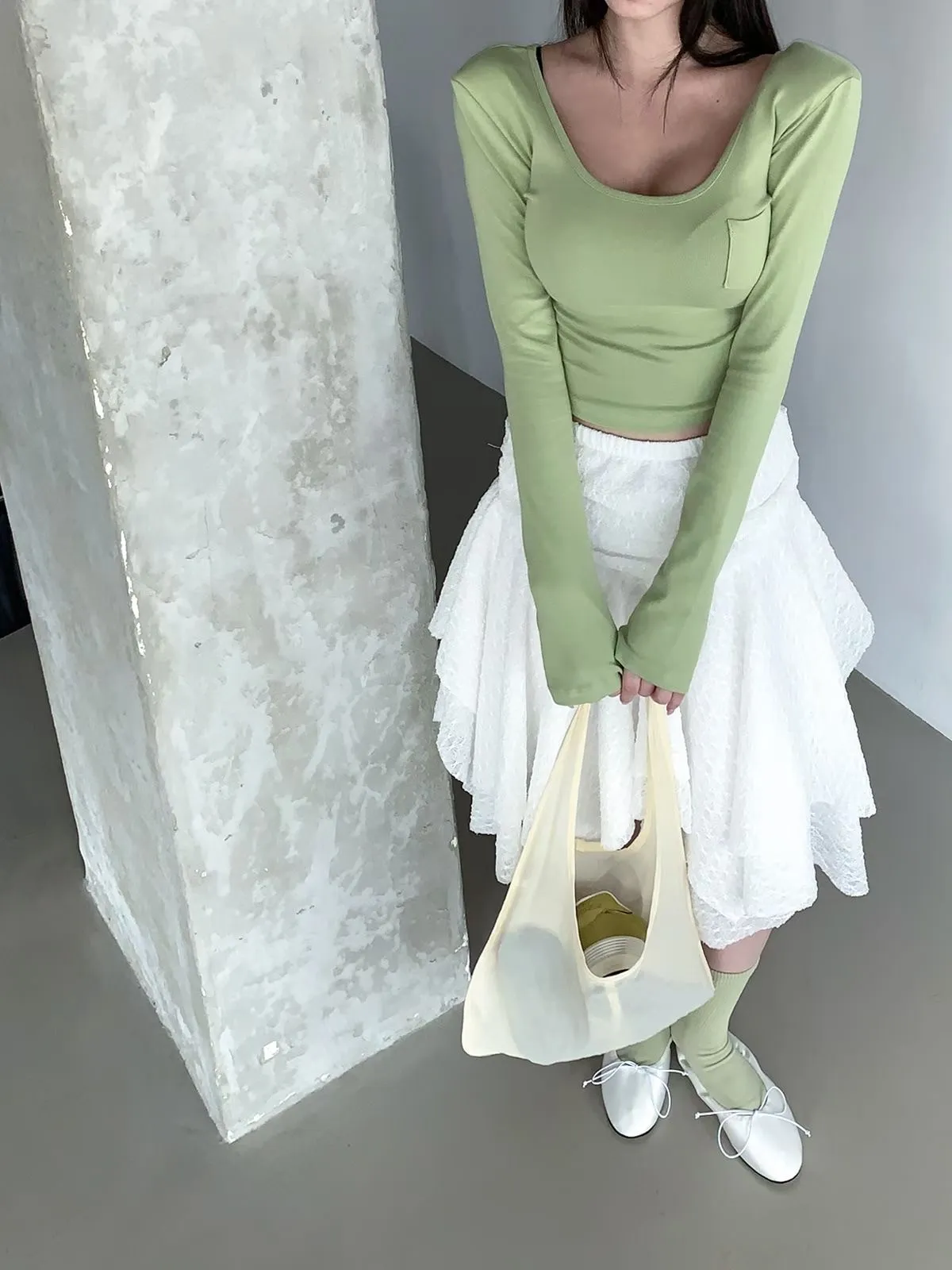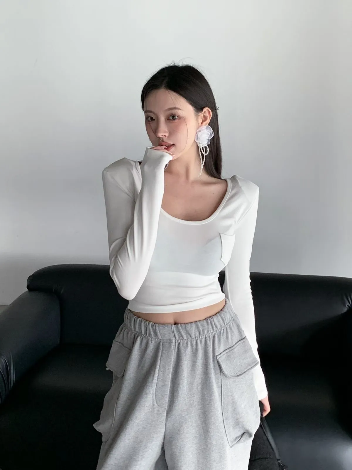 26CH22 小口袋U領短版長上衣 4色