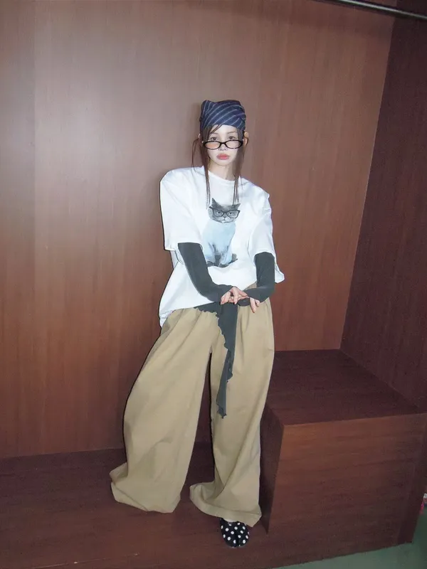 26DA12 洗色打褶斜紋卡其長褲 3色