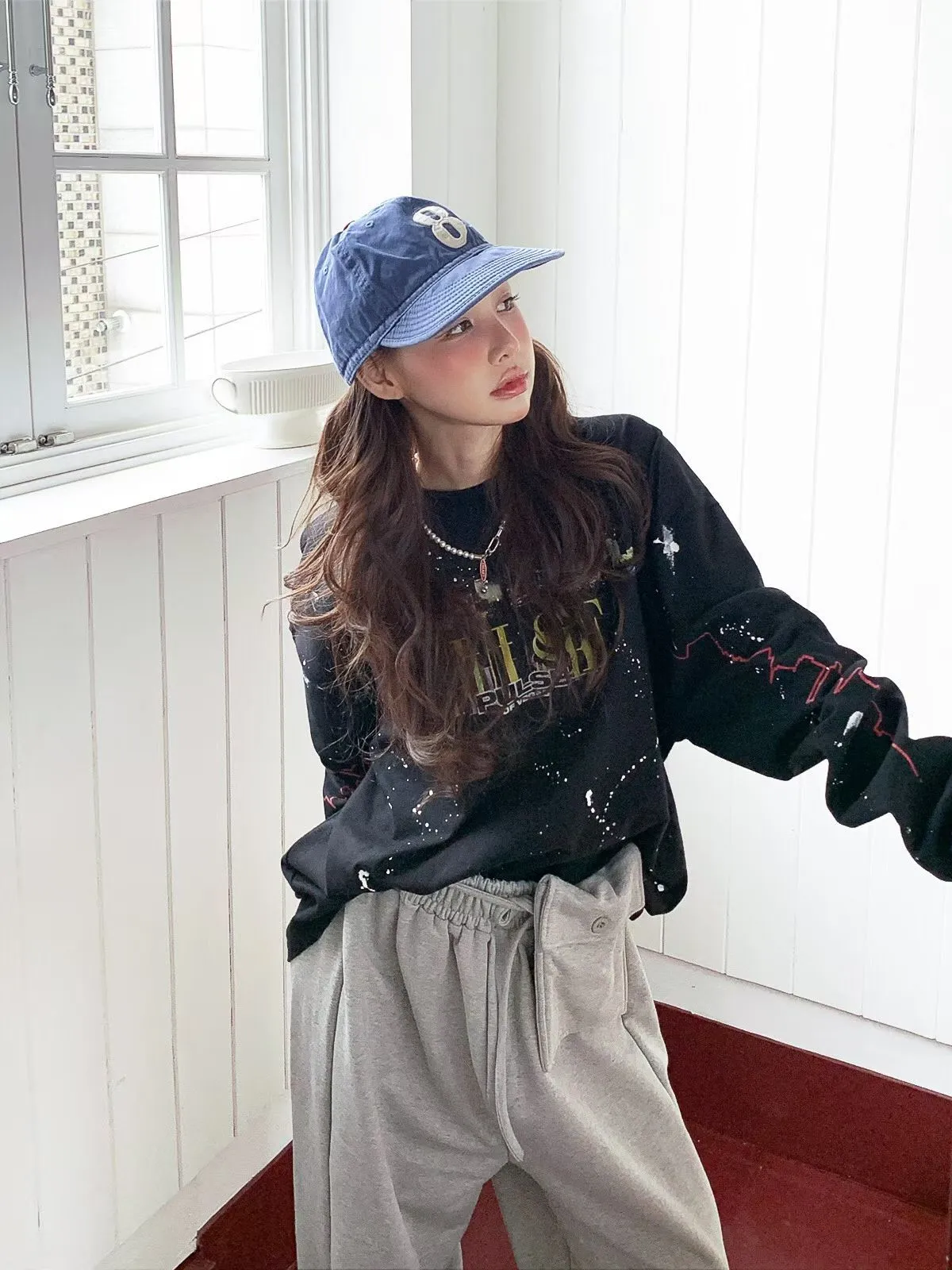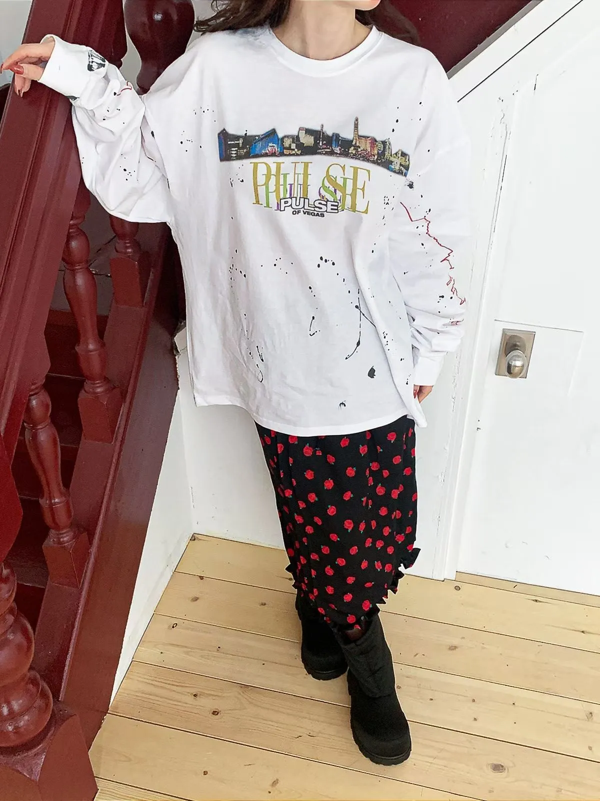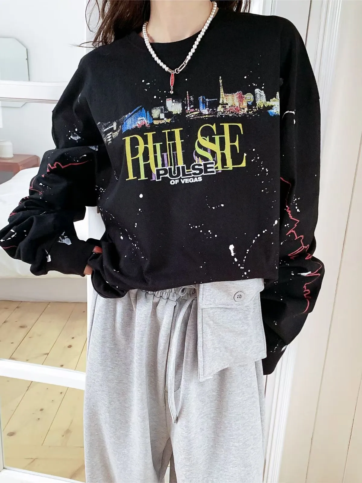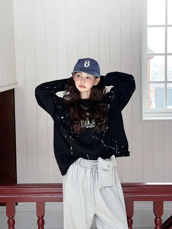 26DA17 手工潑漆城市寬鬆長T 2色