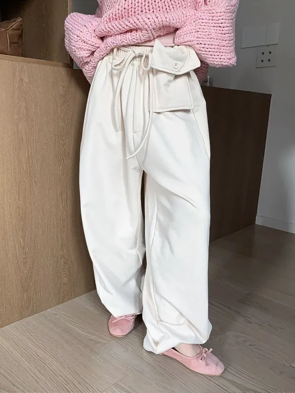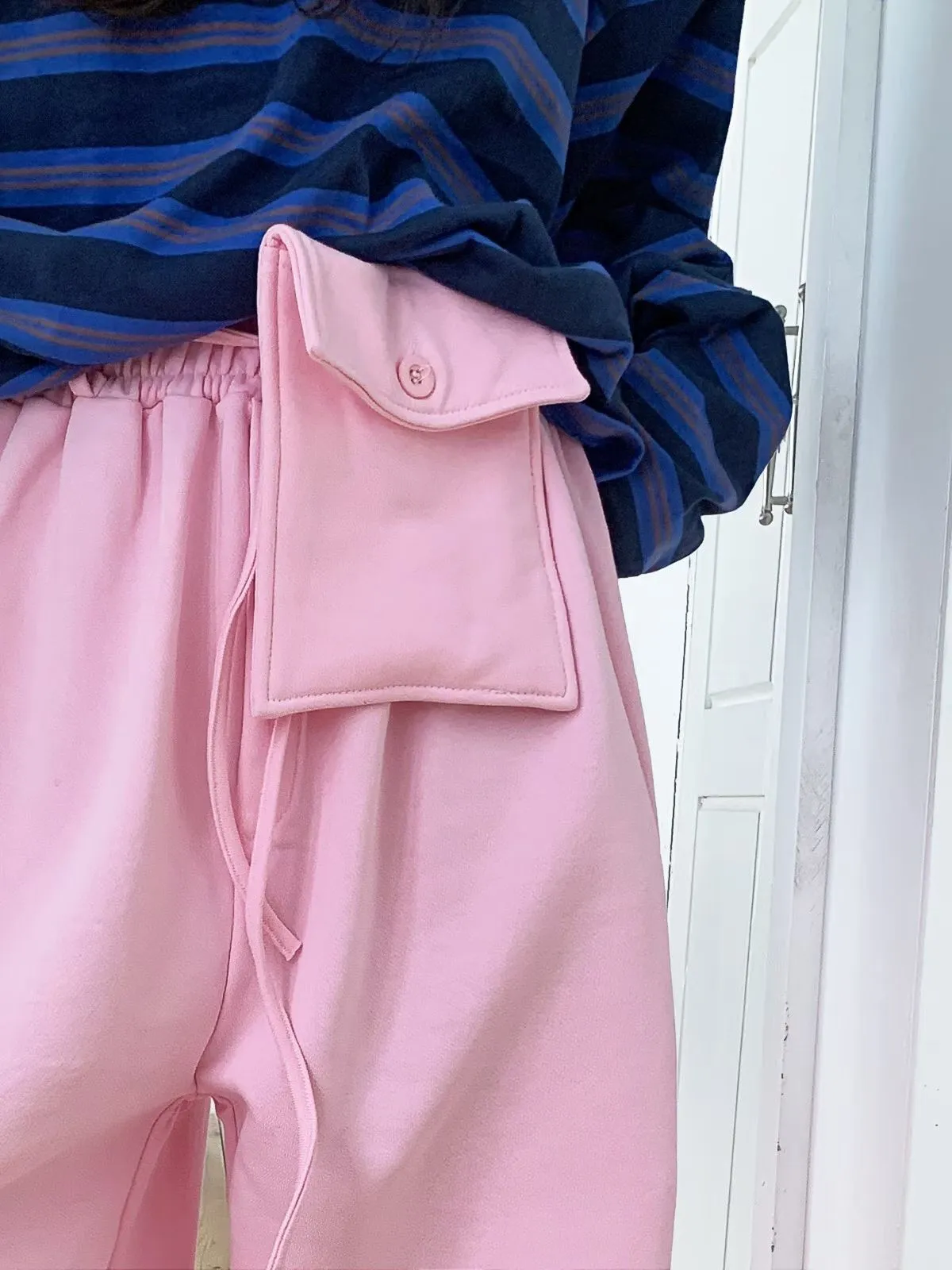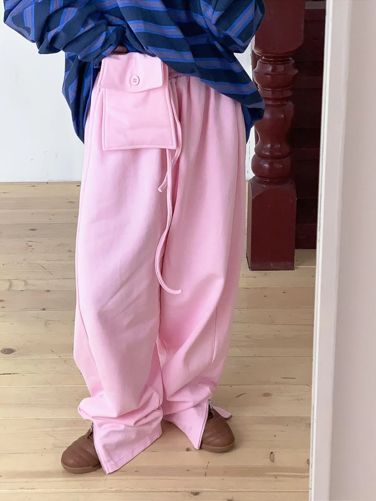 26DA18 綁帶腰包+彎彎拉鏈褲腳薄毛巾棉長褲 3色