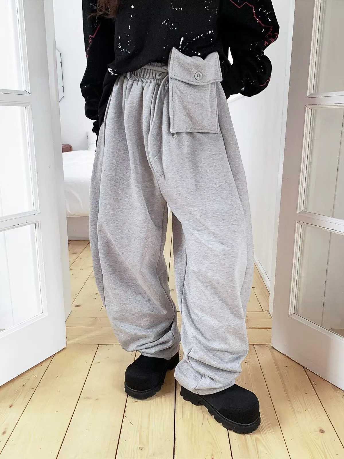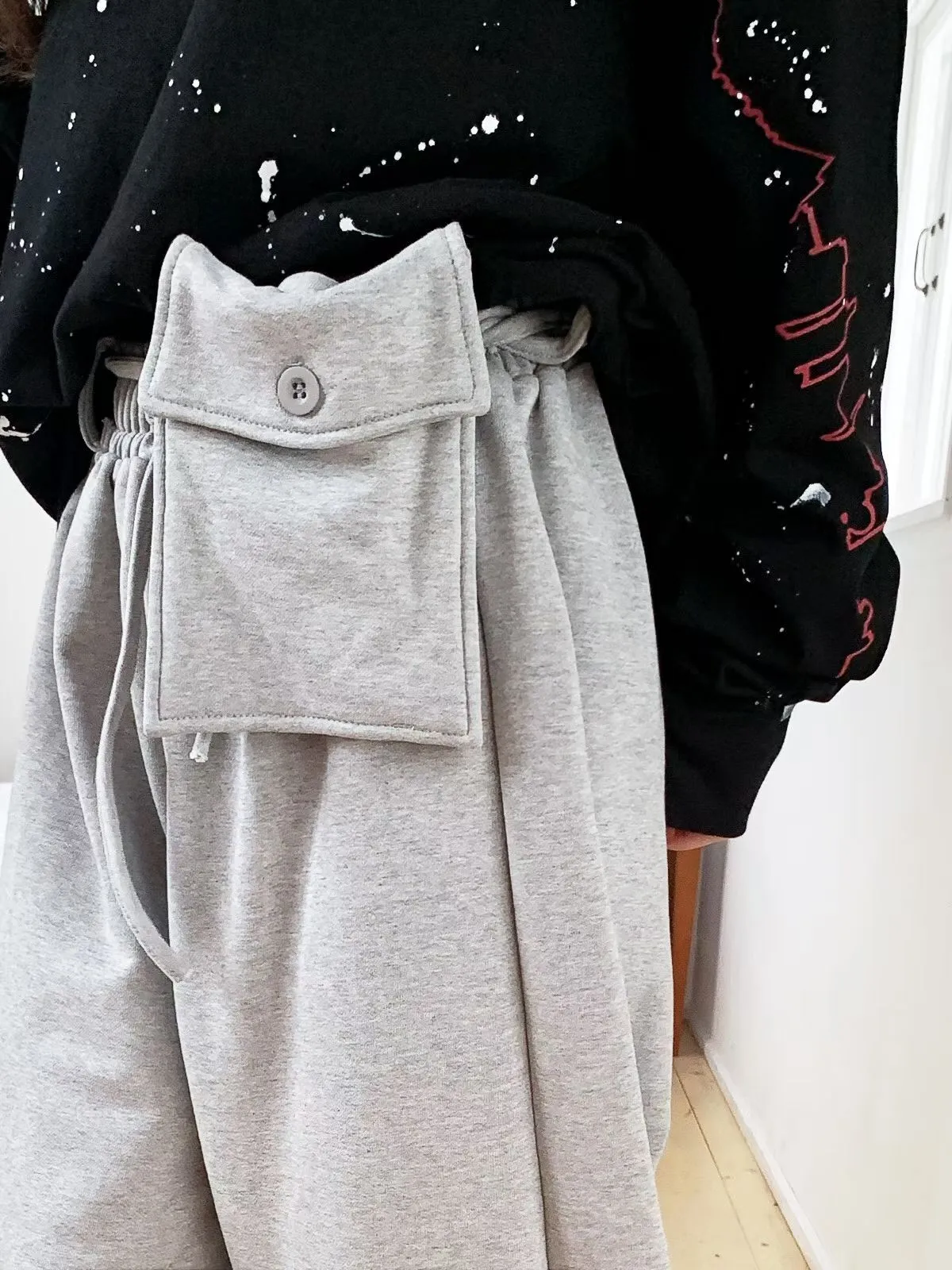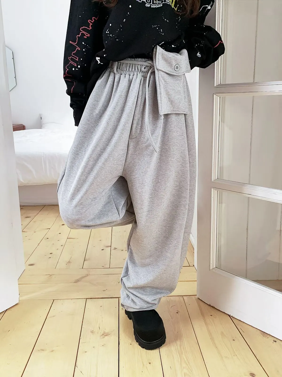 26DA18 綁帶腰包+彎彎拉鏈褲腳薄毛巾棉長褲 3色