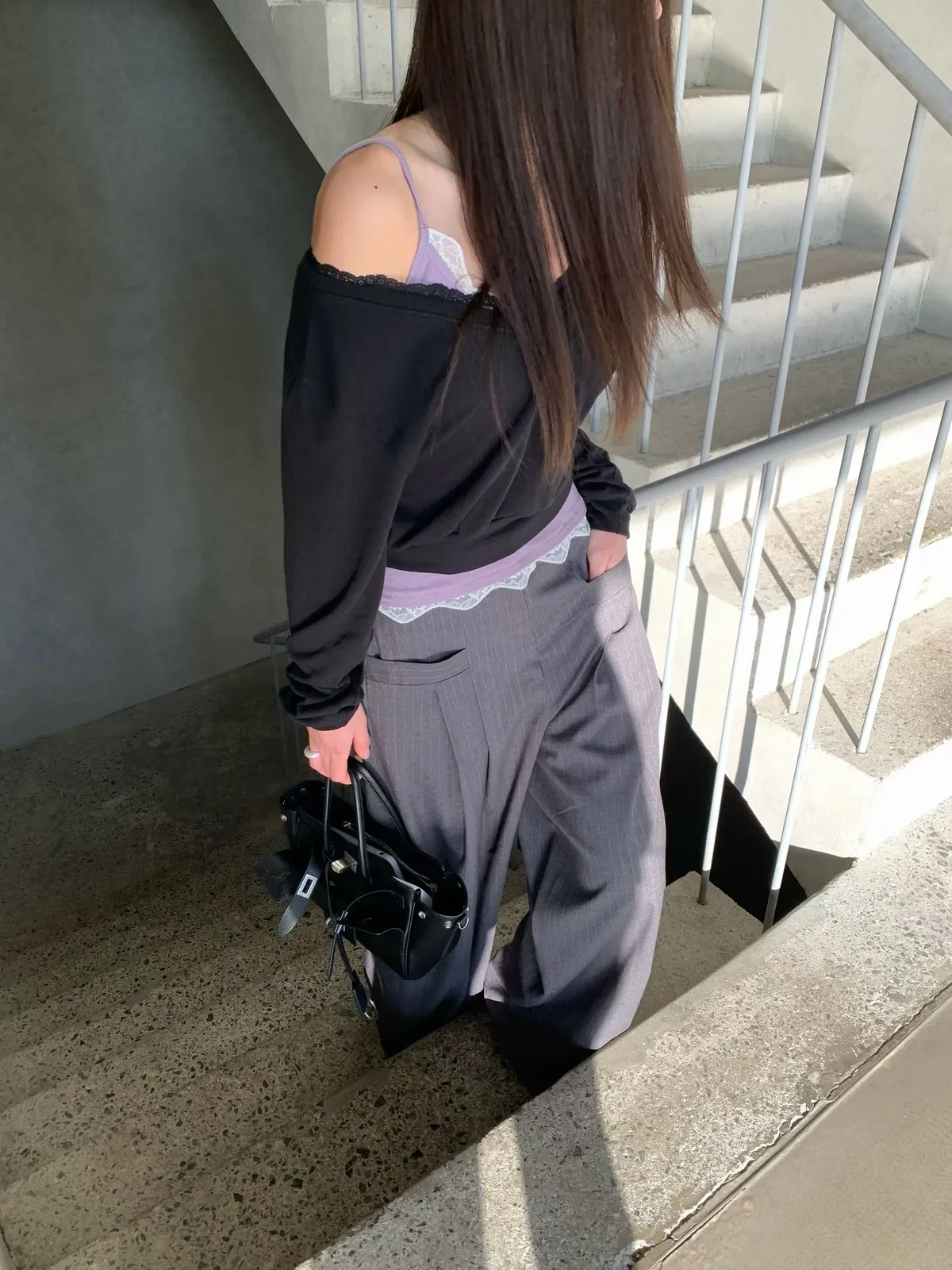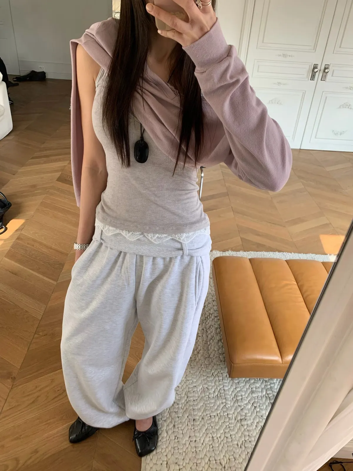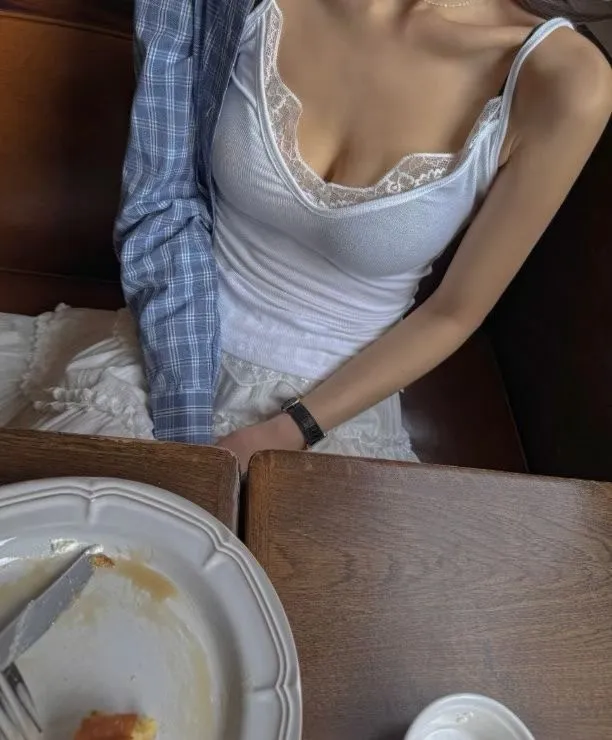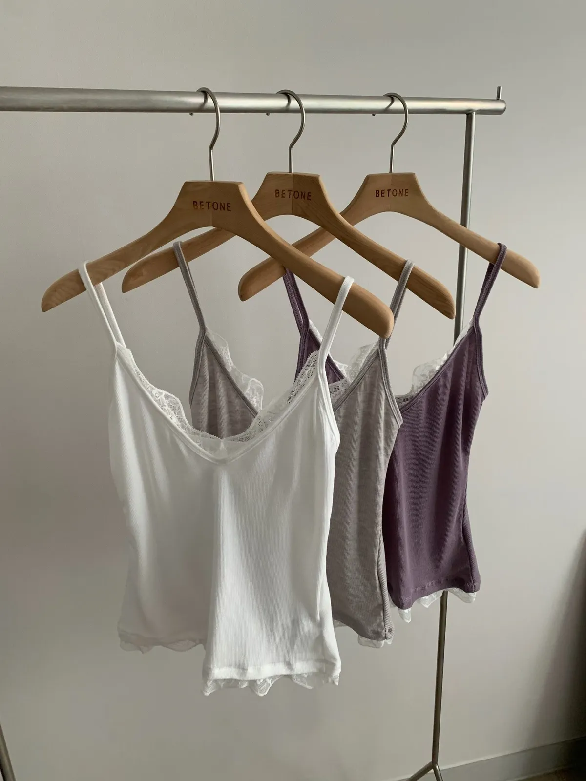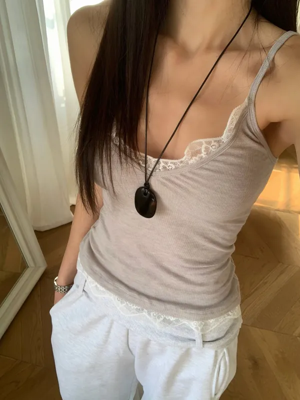 26DB08 may款)V領細羅紋拼蕾絲背心 3色