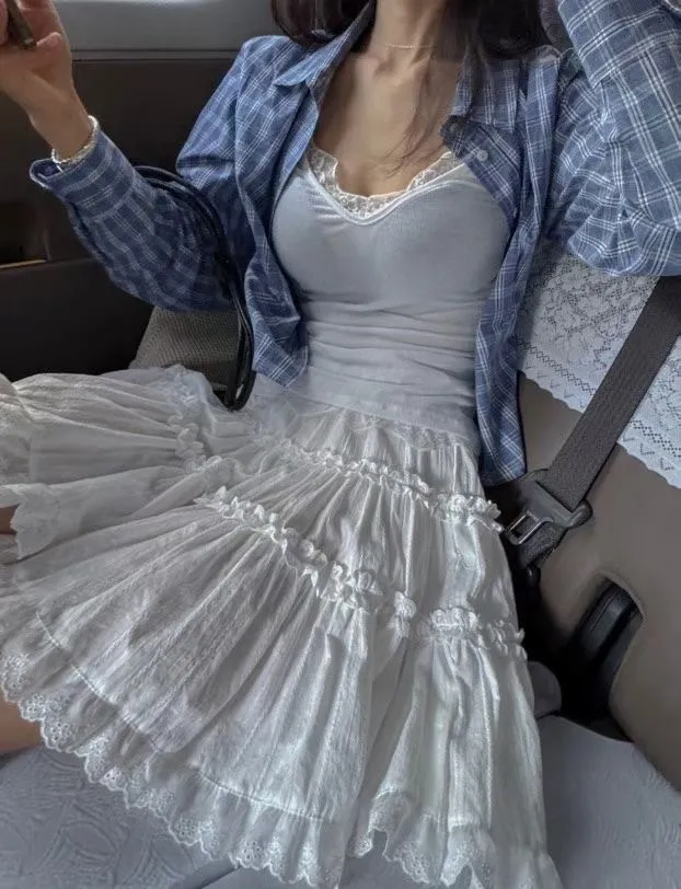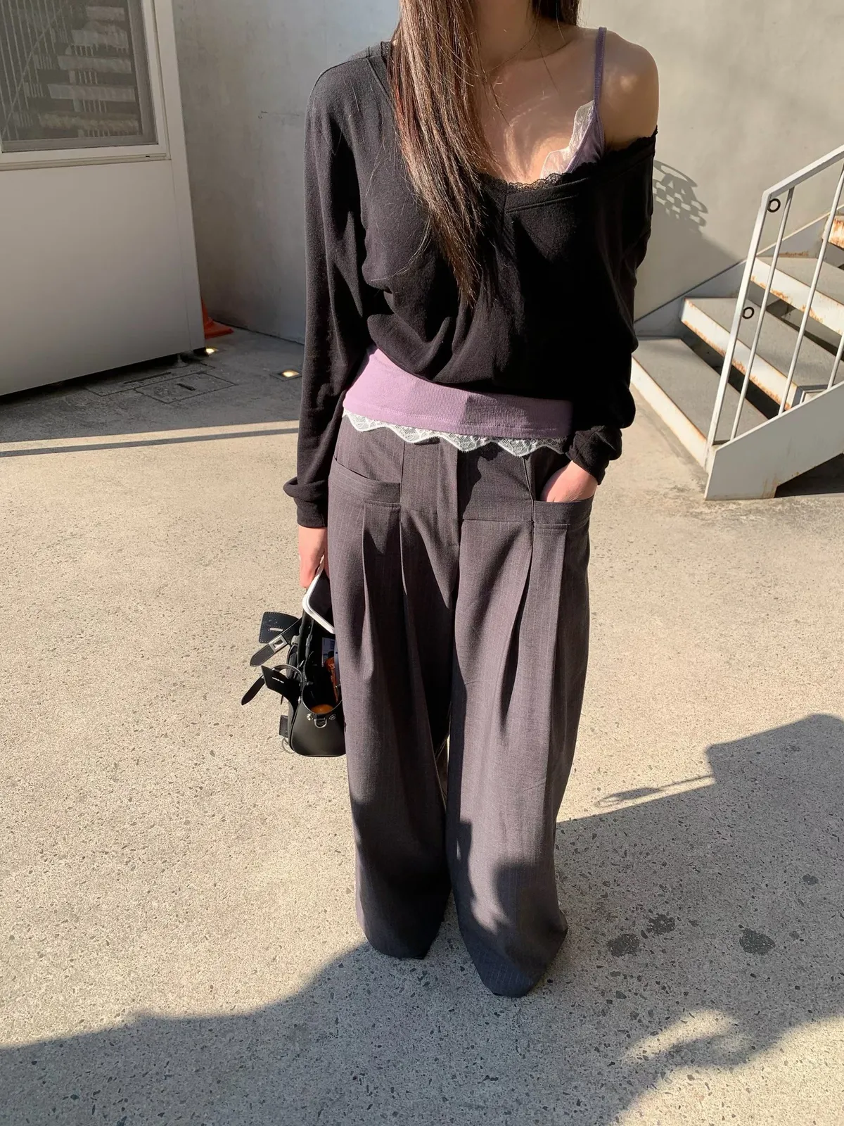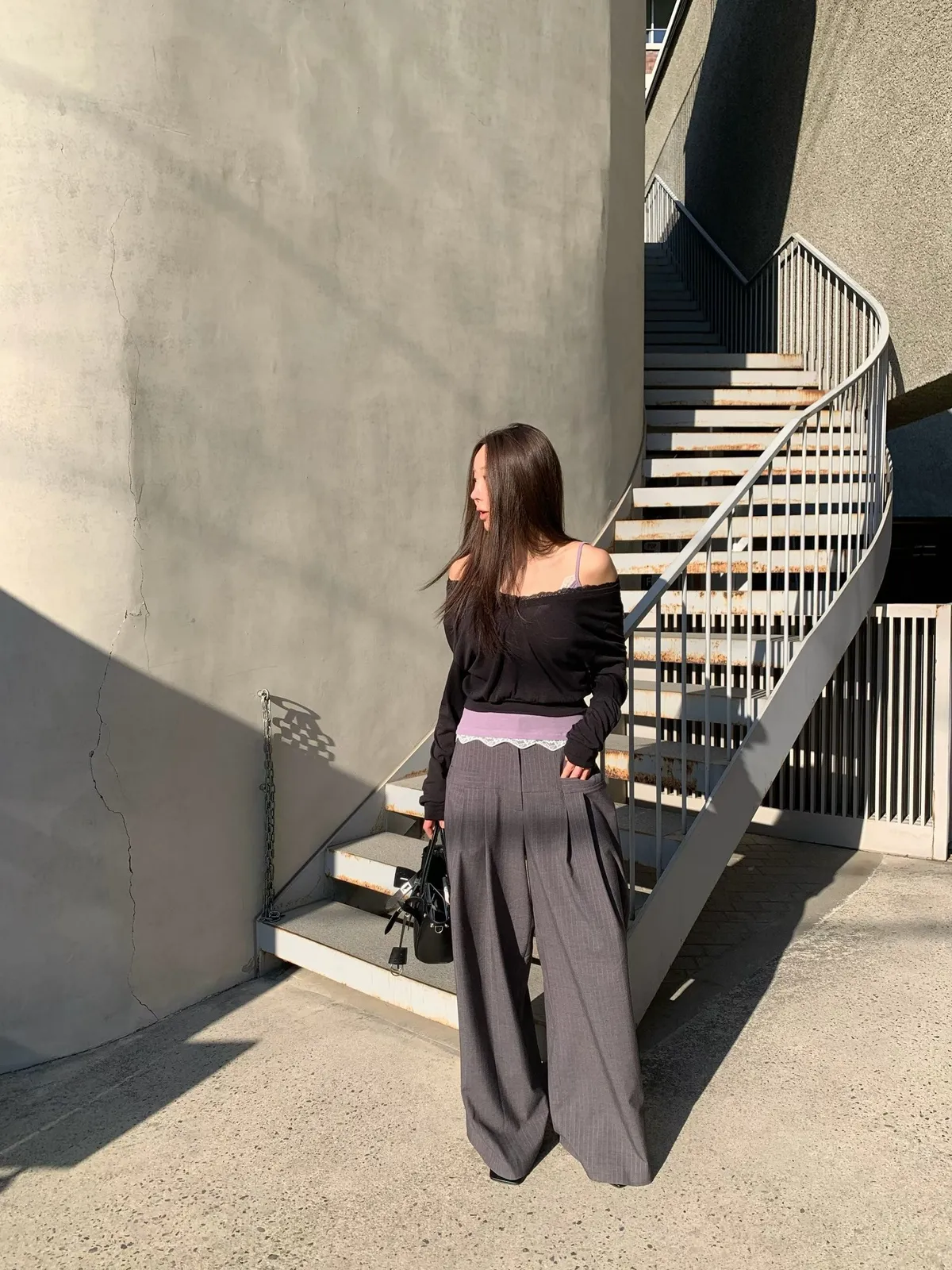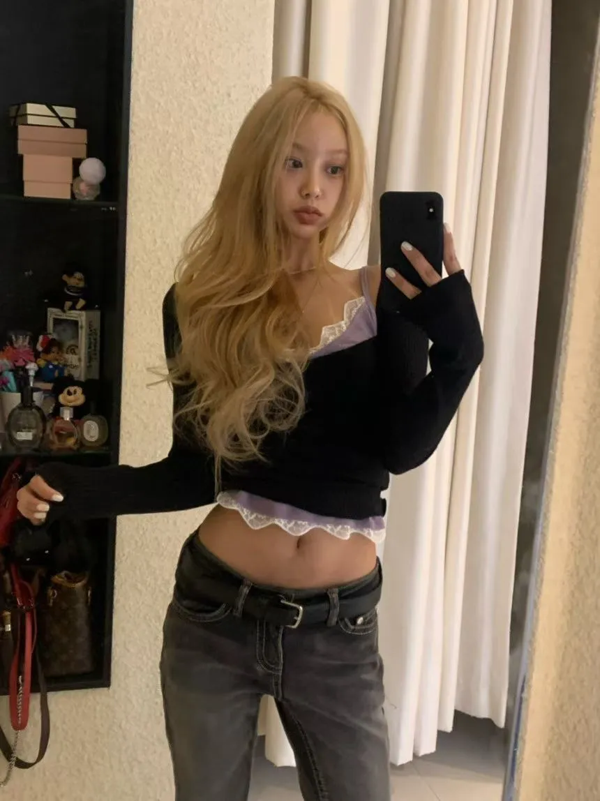 26DB08 may款)V領細羅紋拼蕾絲背心 3色