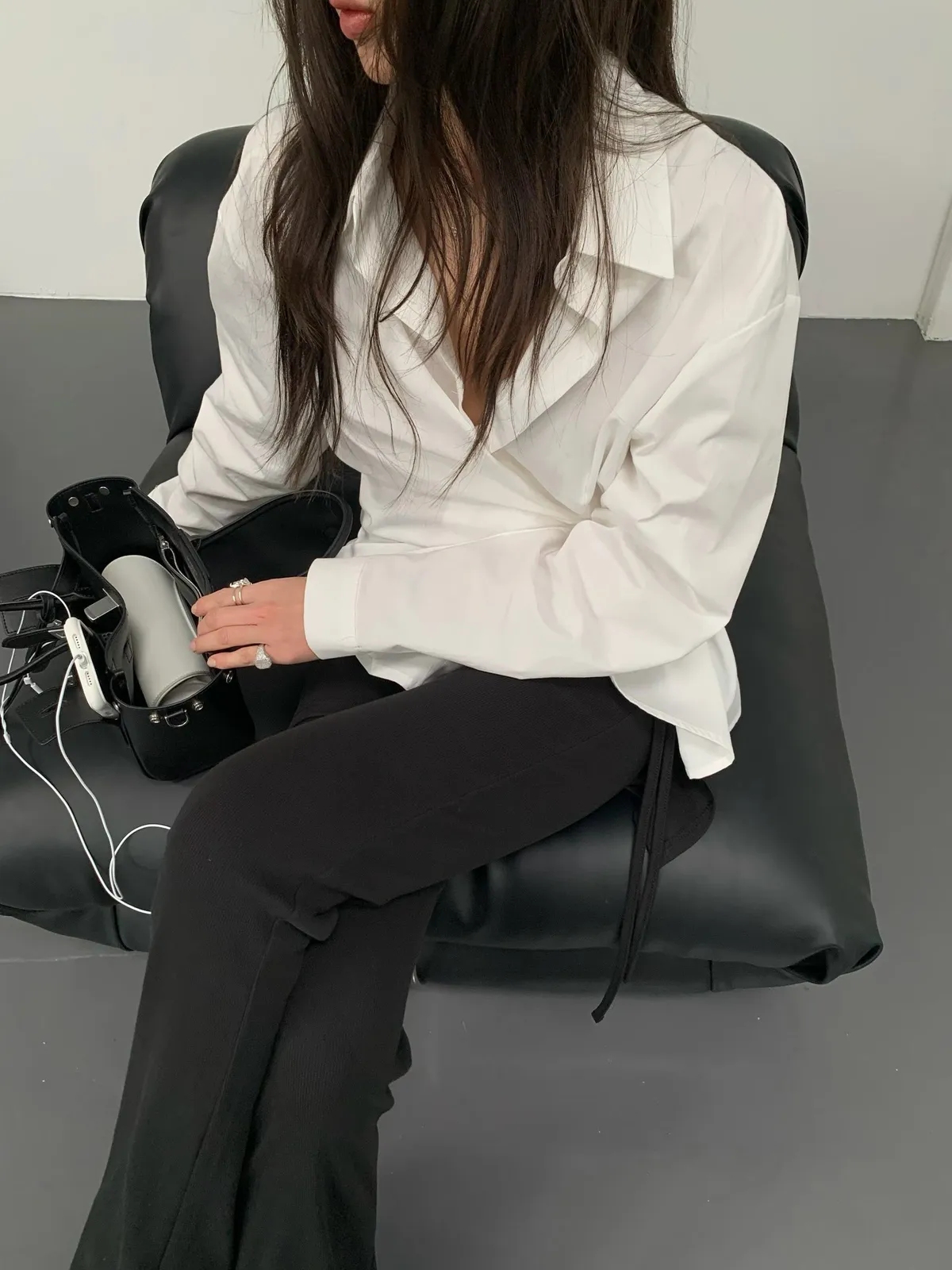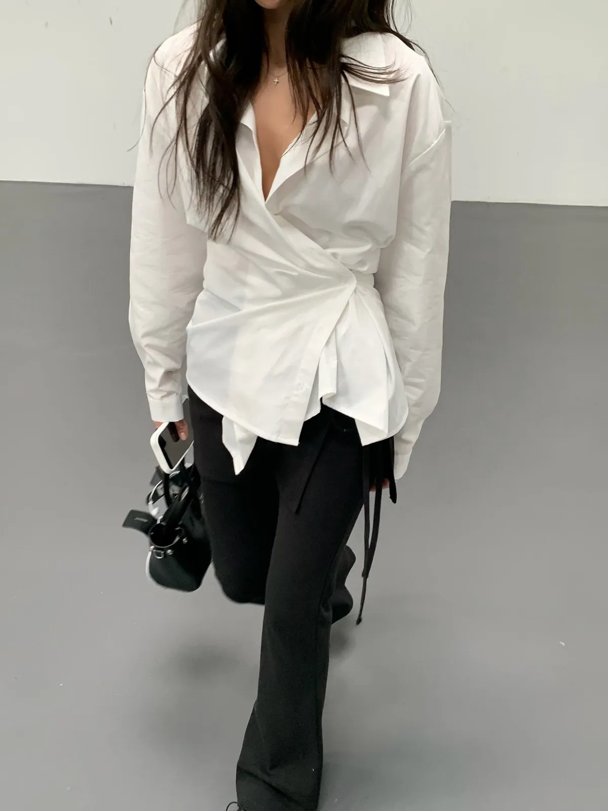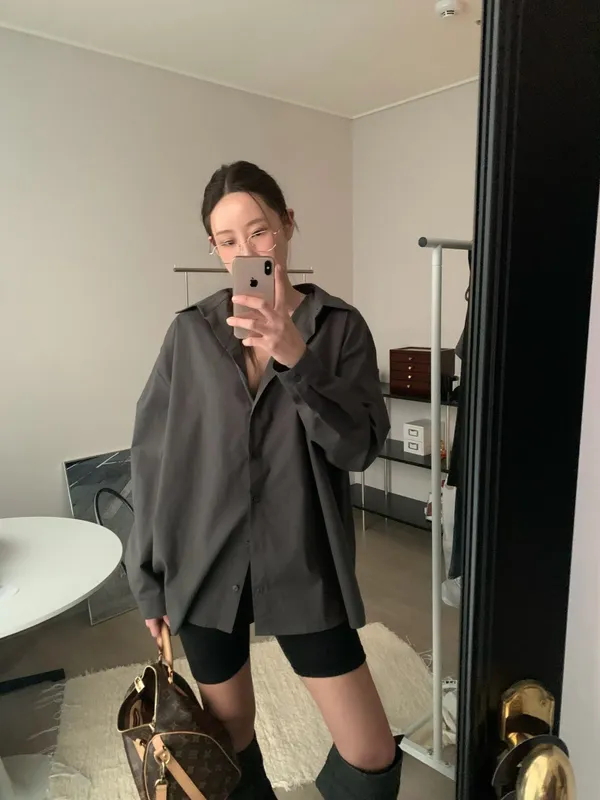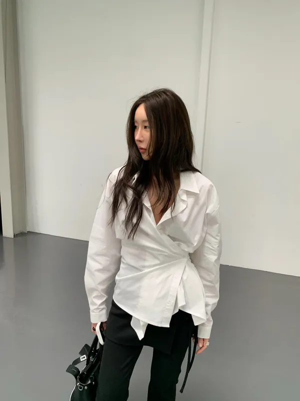 26DB10 造型多扣收腰襯衫上衣 2色