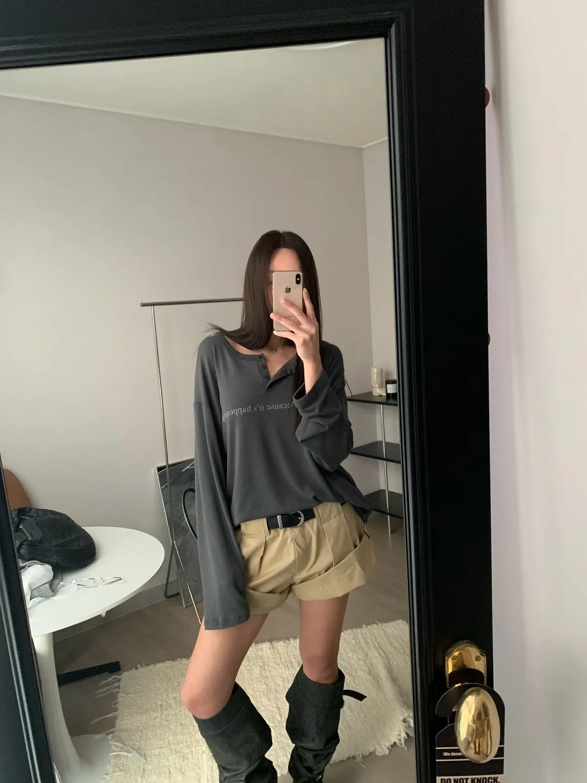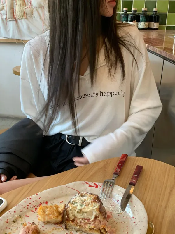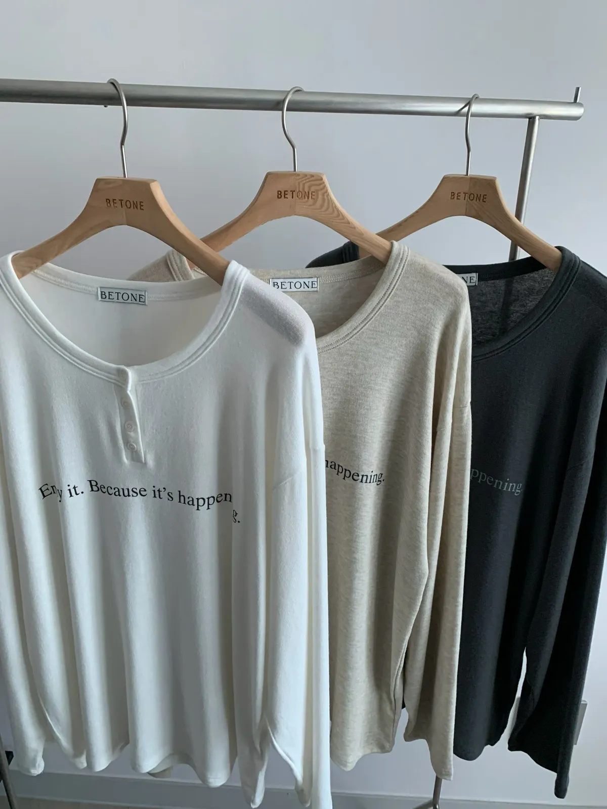 26DB16 慵懶感英字鈕扣中長版寬鬆長T 3色