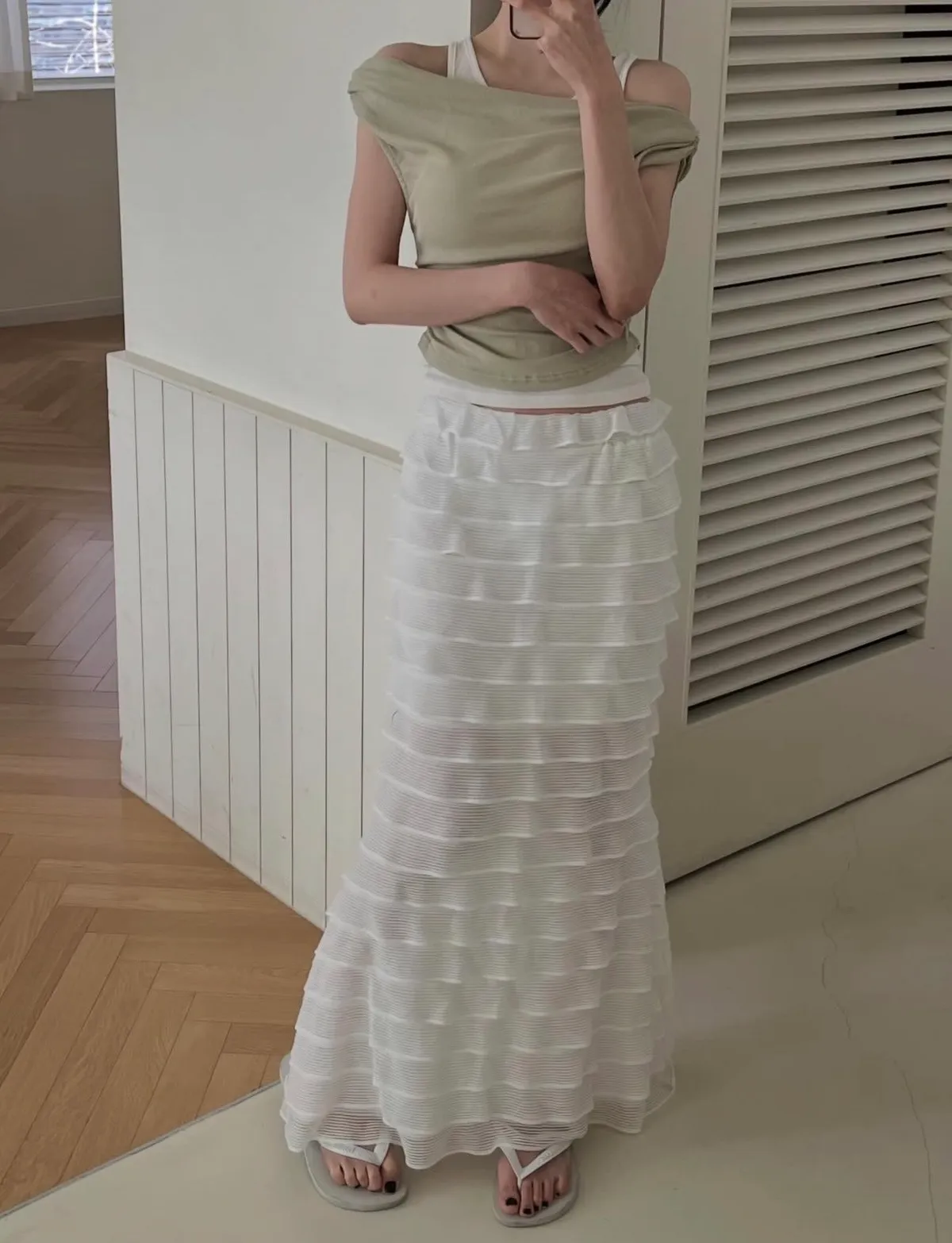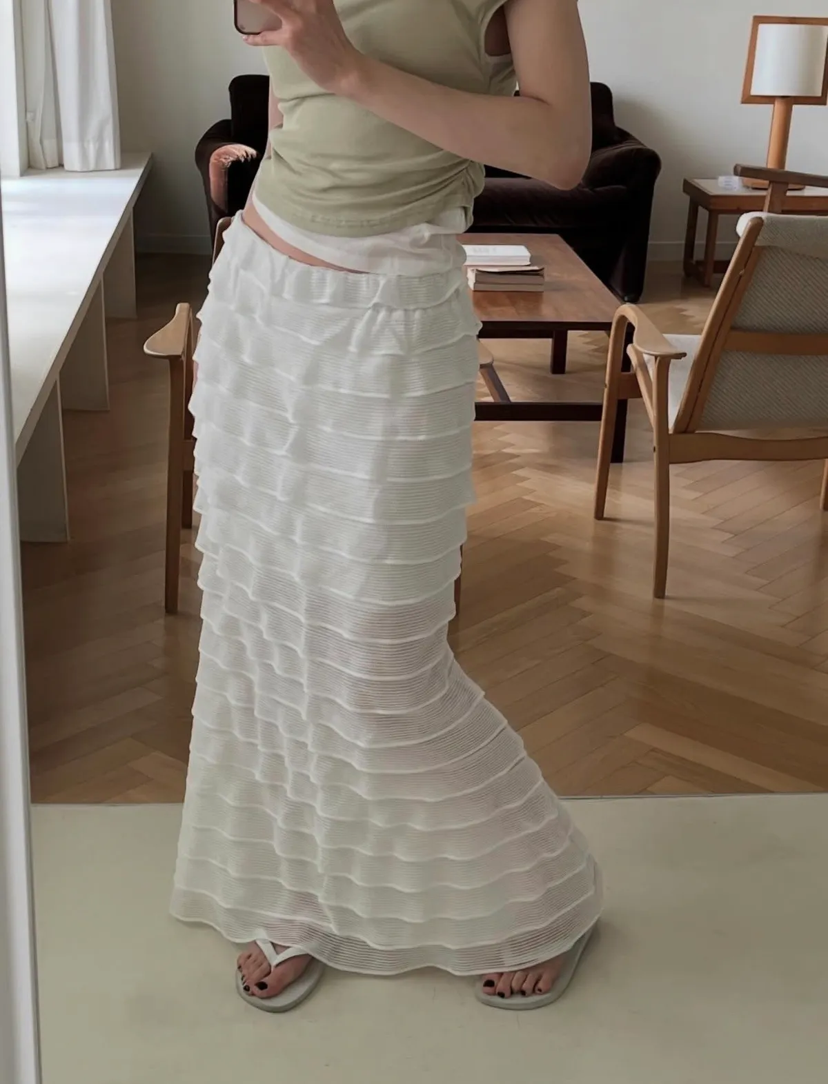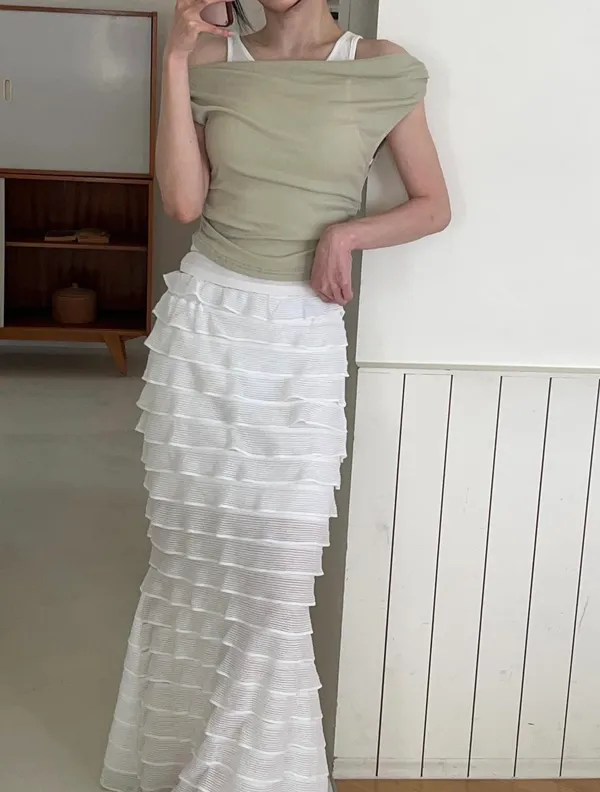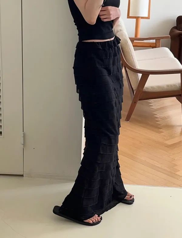 26DC15 千層彈力魚尾長裙 2色