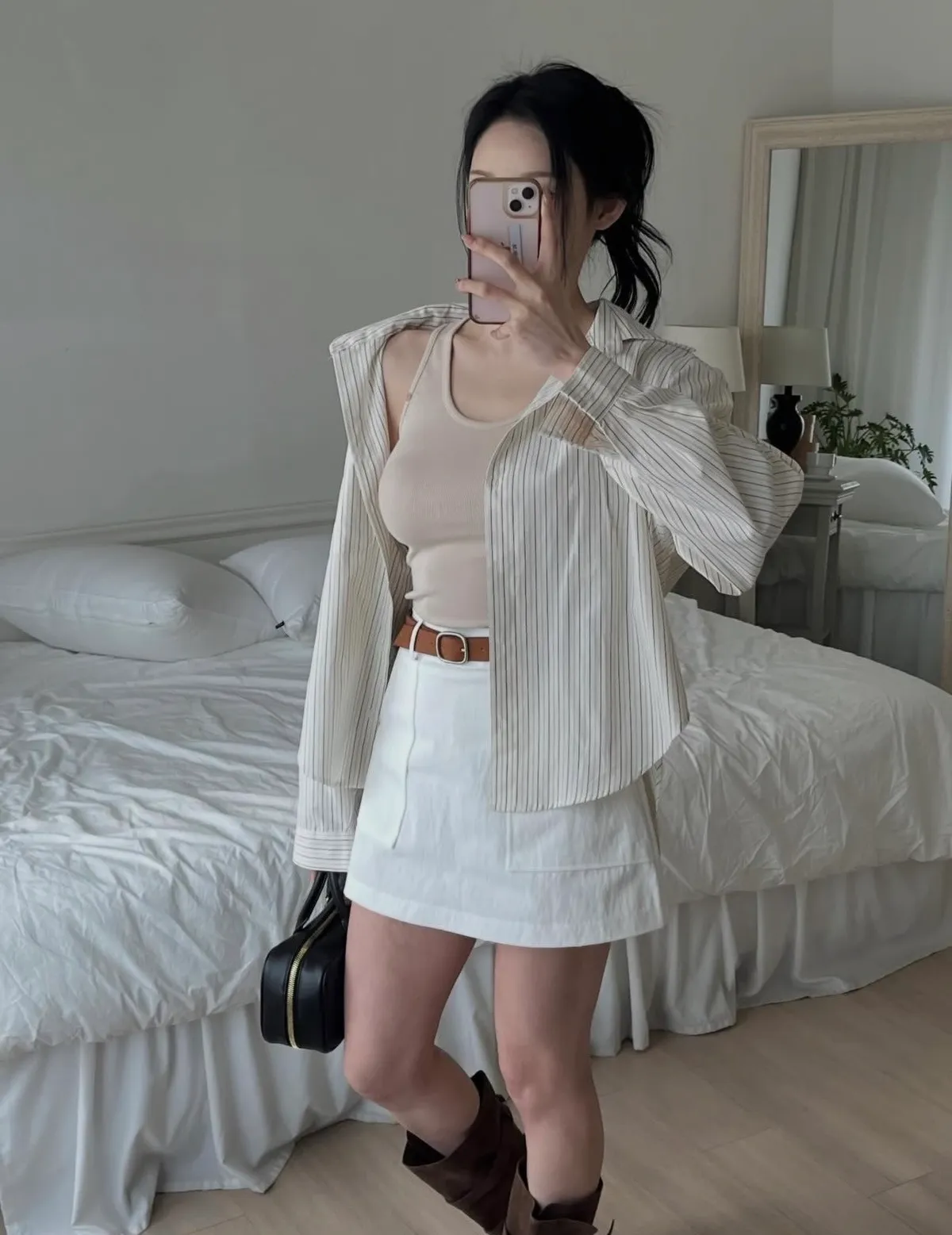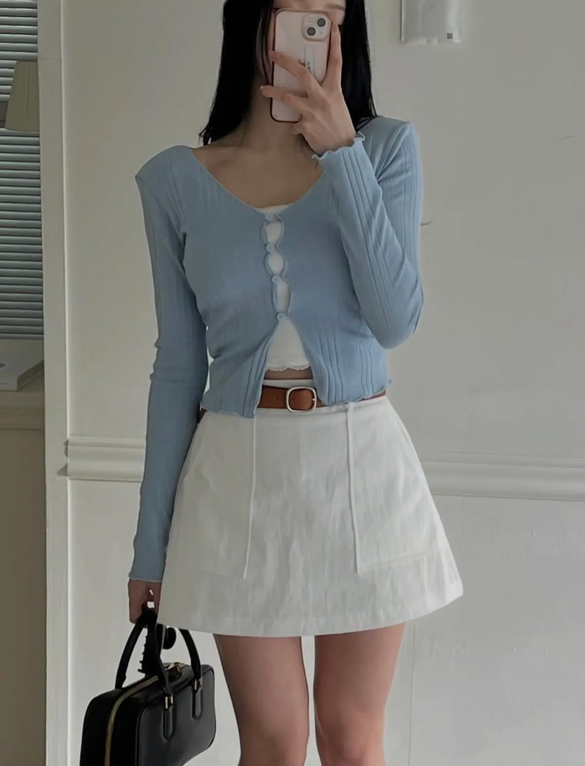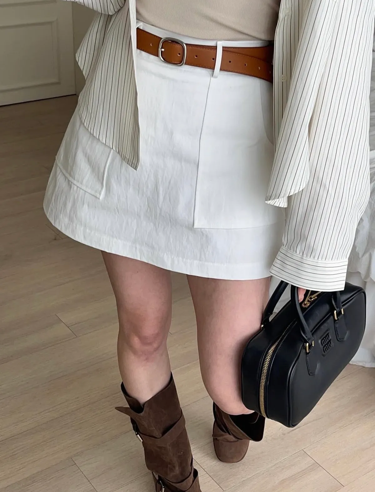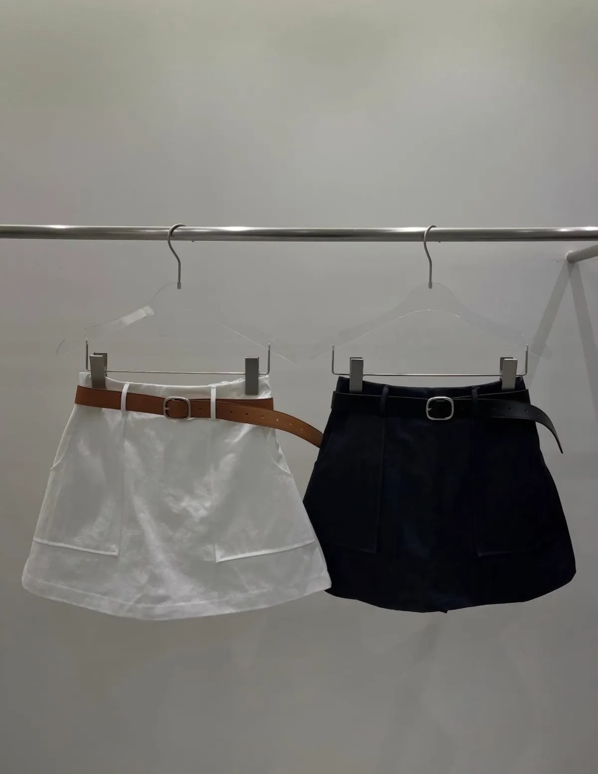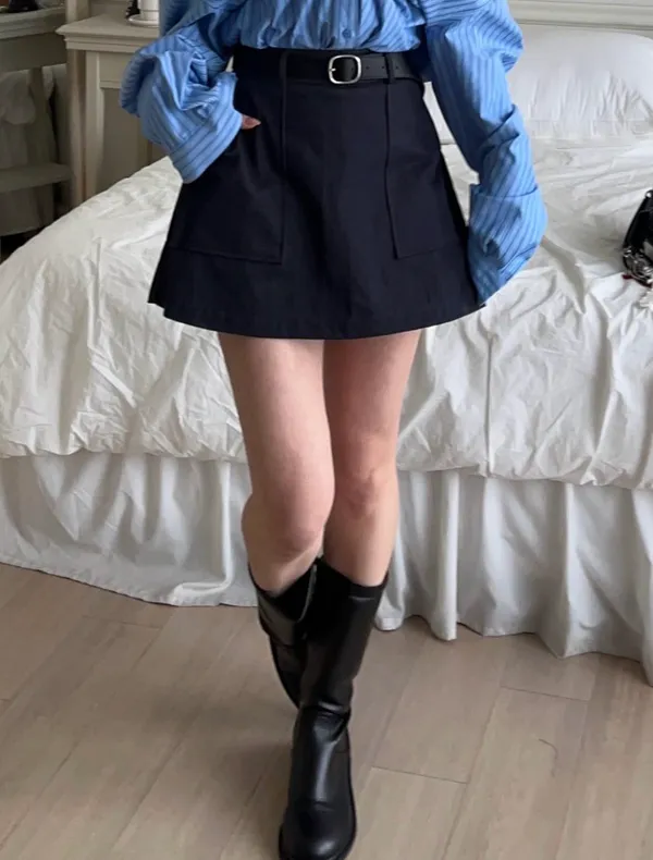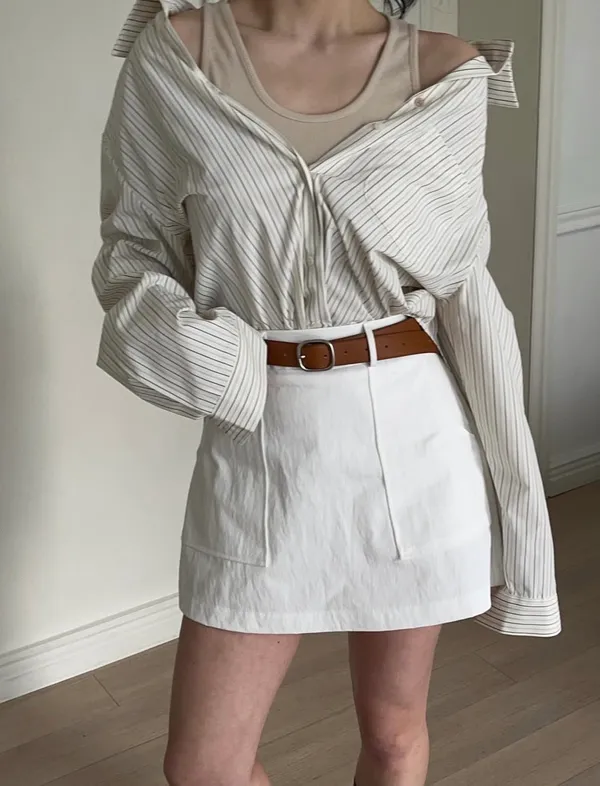 26DC18 腰帶+斜紋後鬆緊短褲裙 set 2色