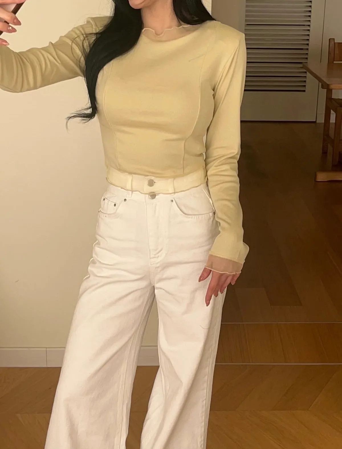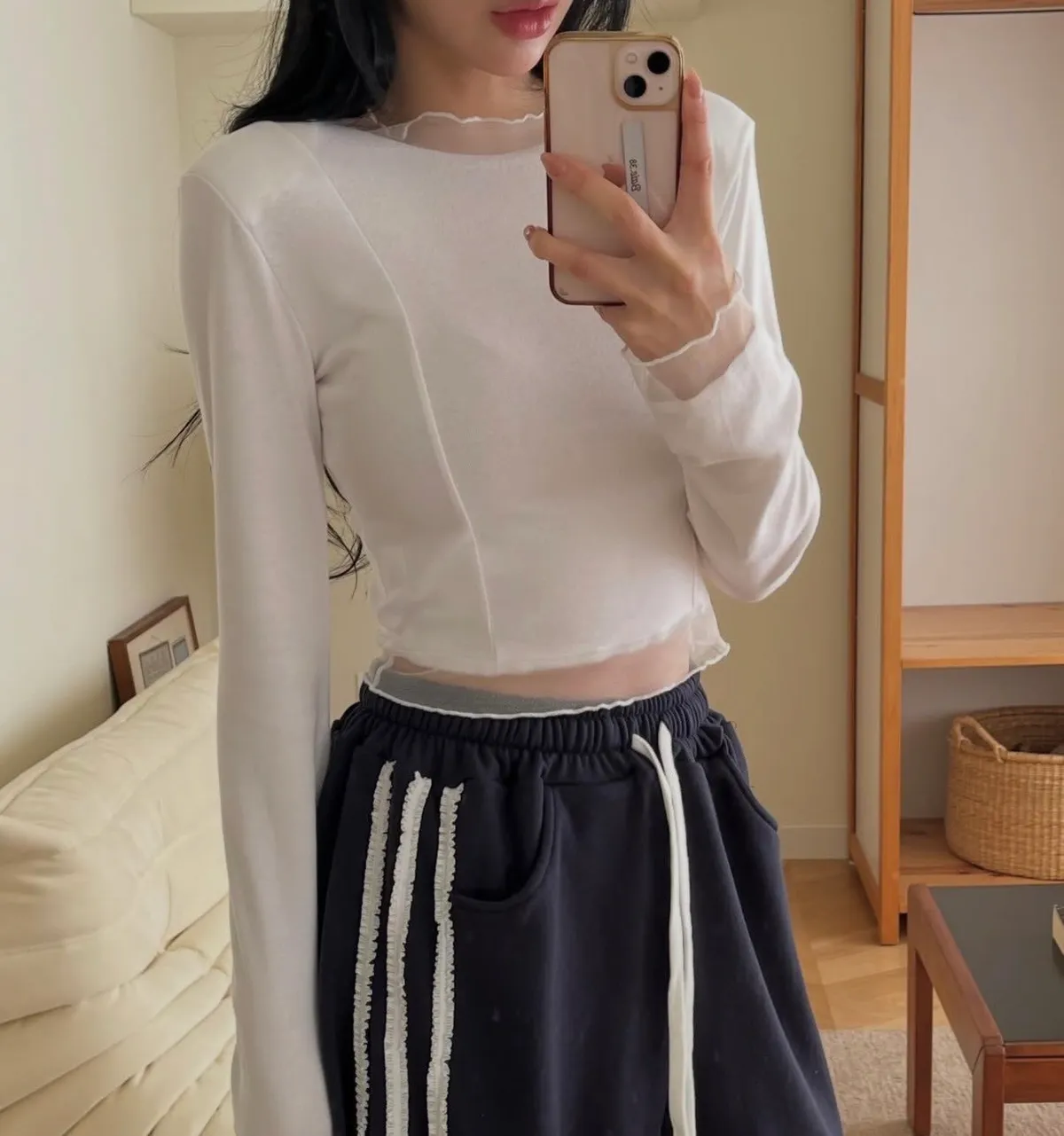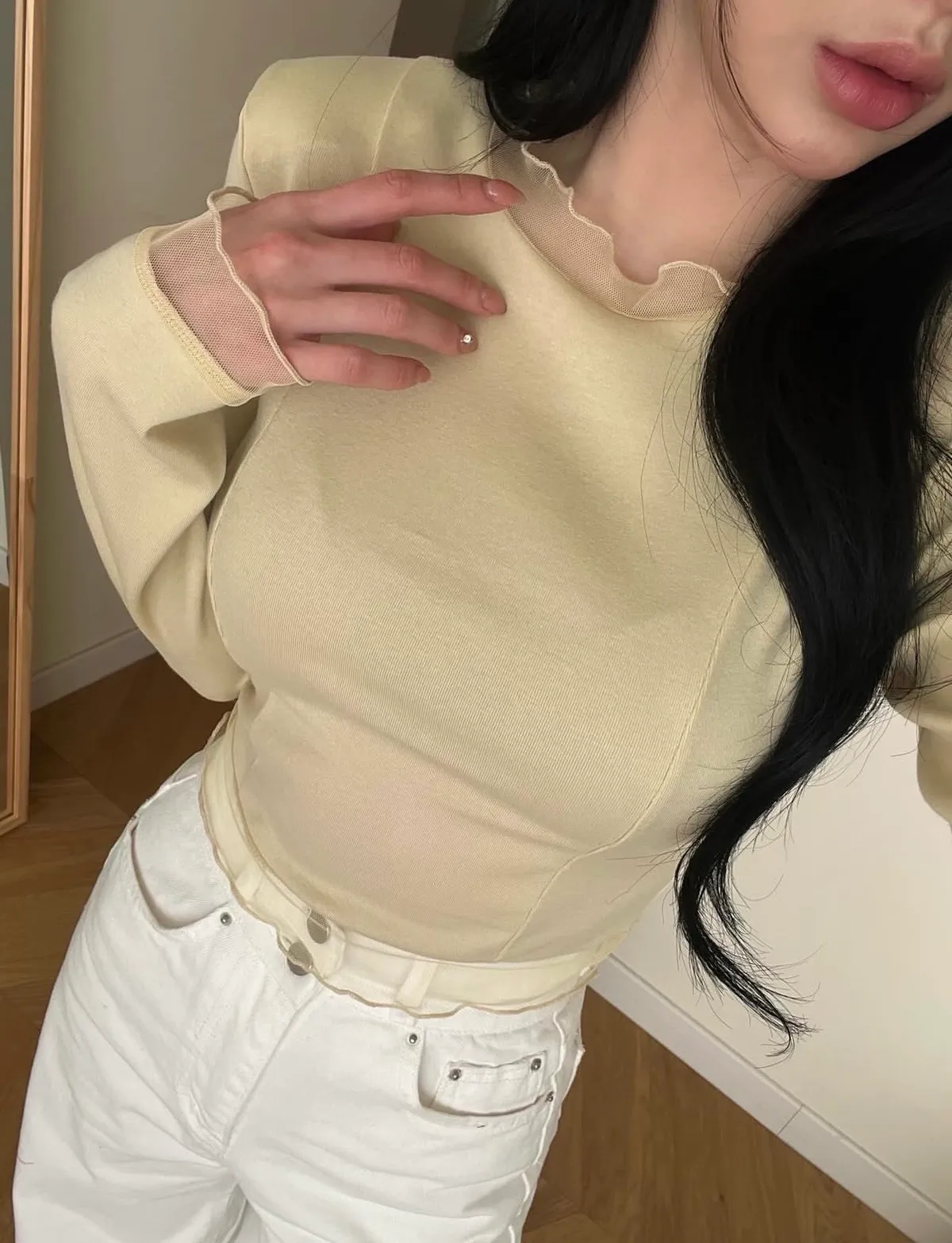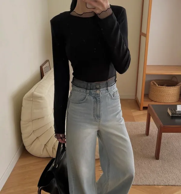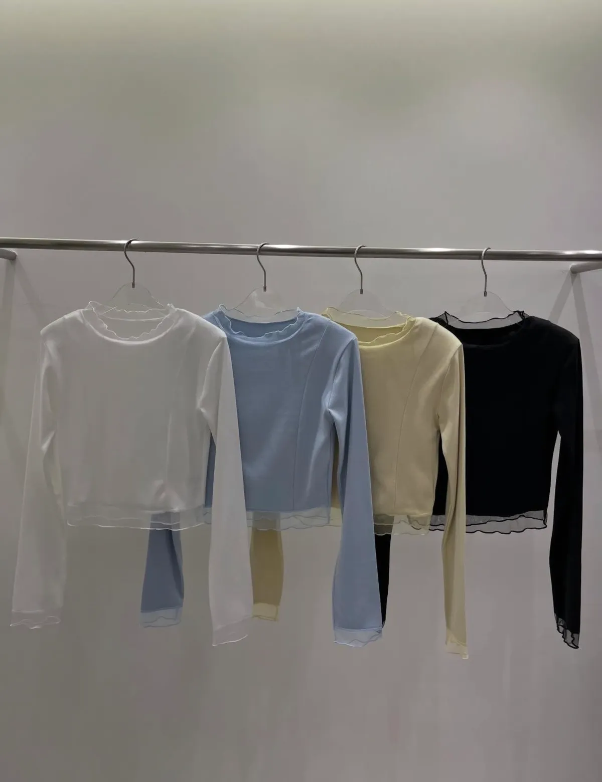 26DC23 網紗拼接長T 4色