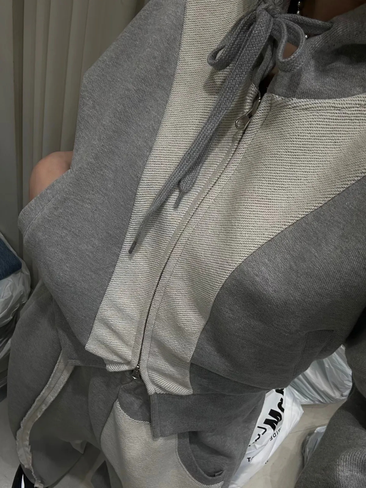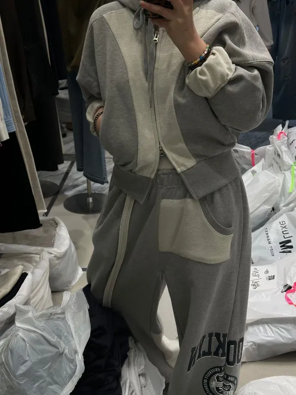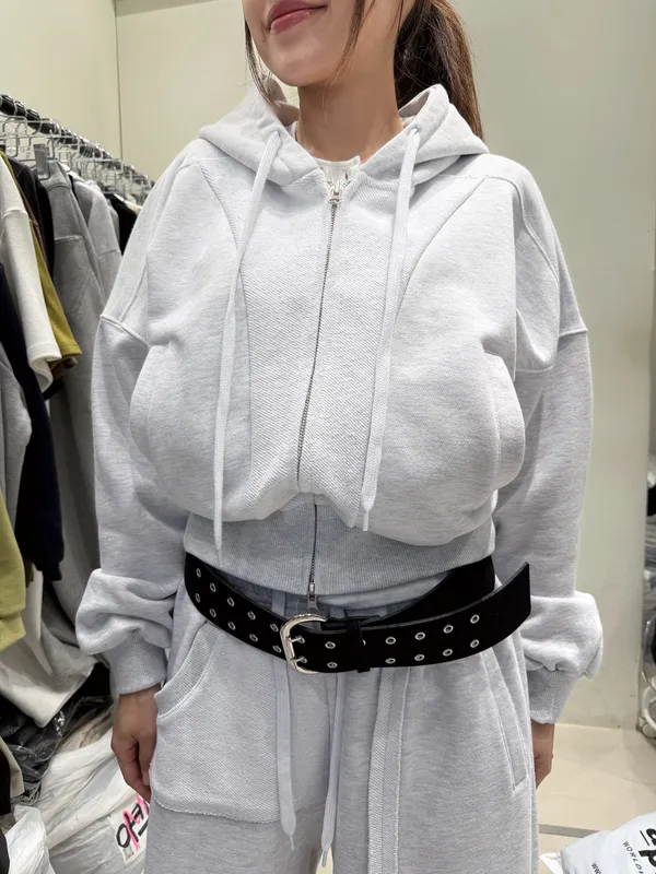 26DD06 薄毛巾拼接收腰連帽外套 3色