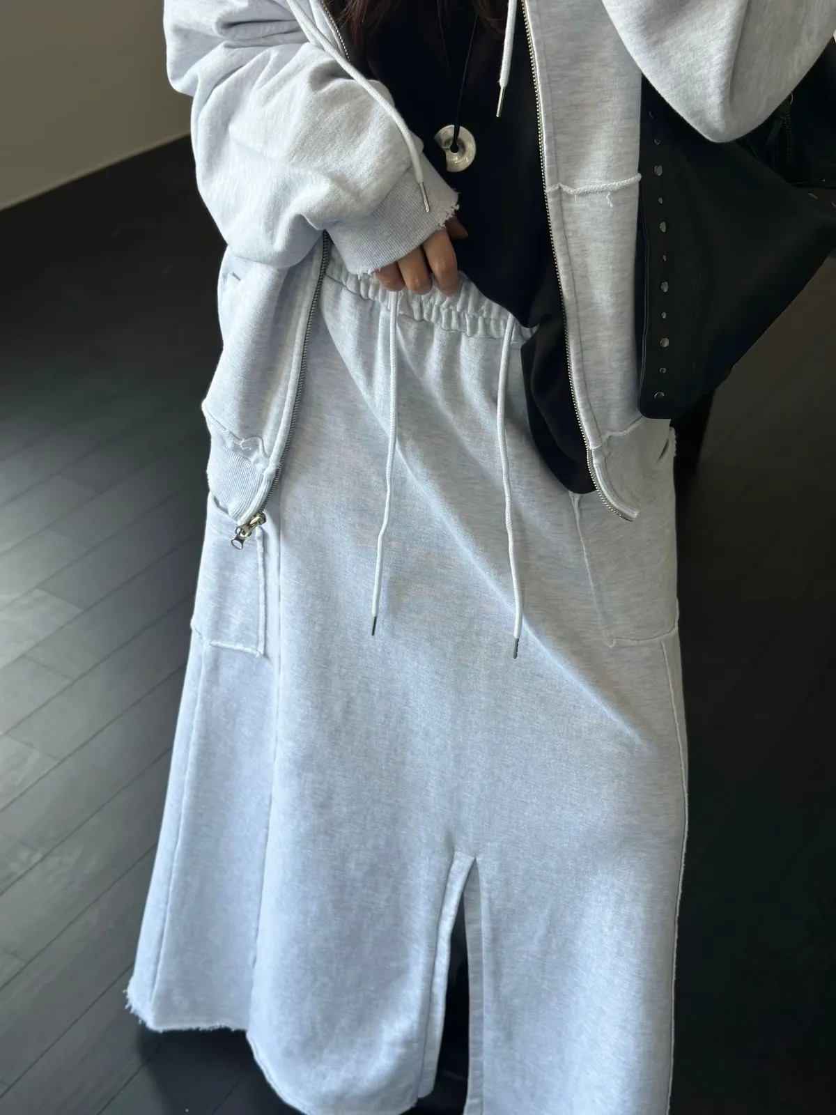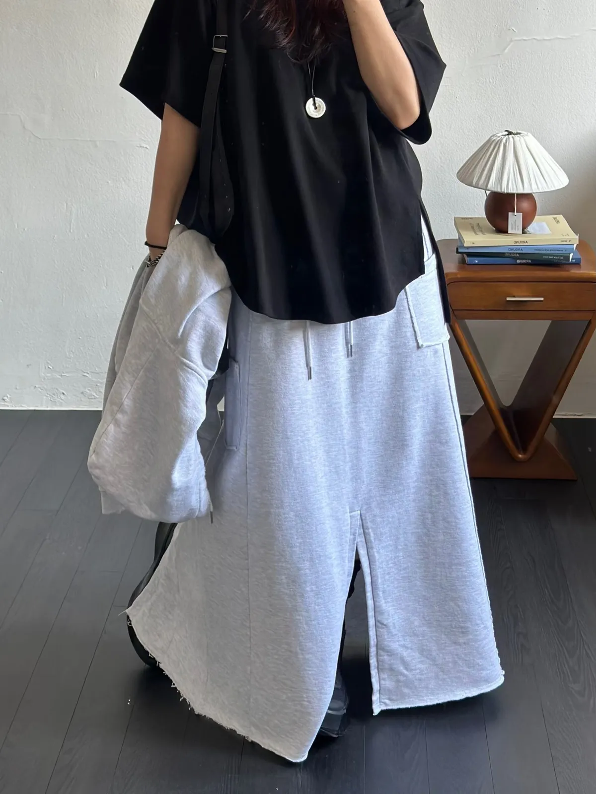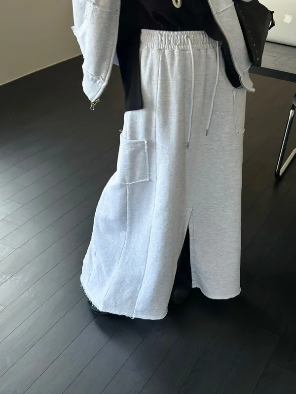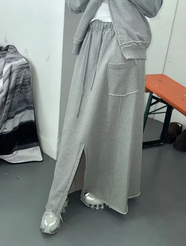 26DD18 破壞棉不對稱開叉薄毛巾棉長裙 3色