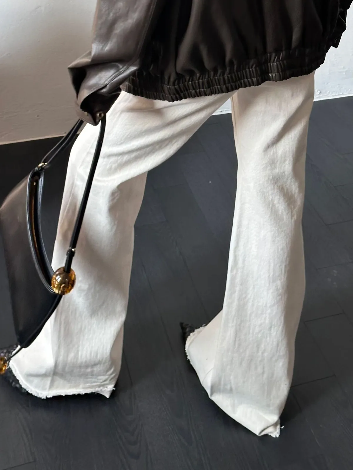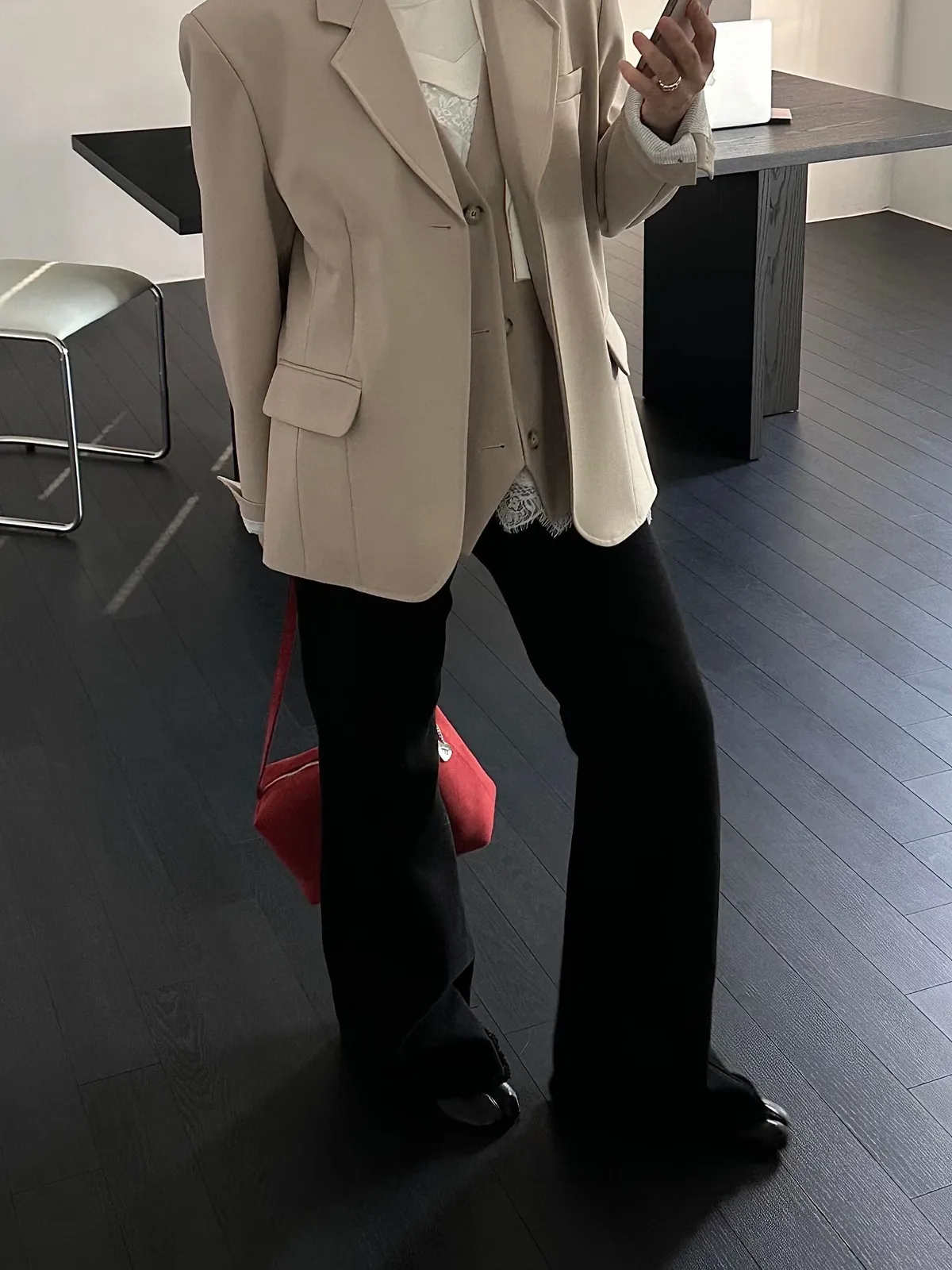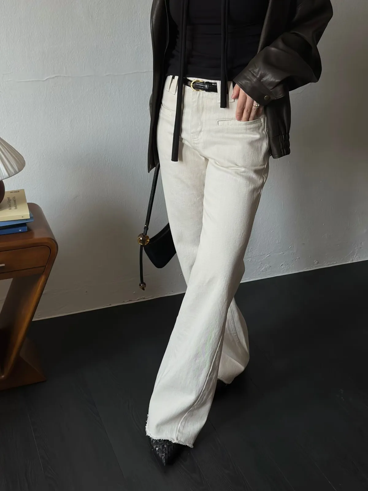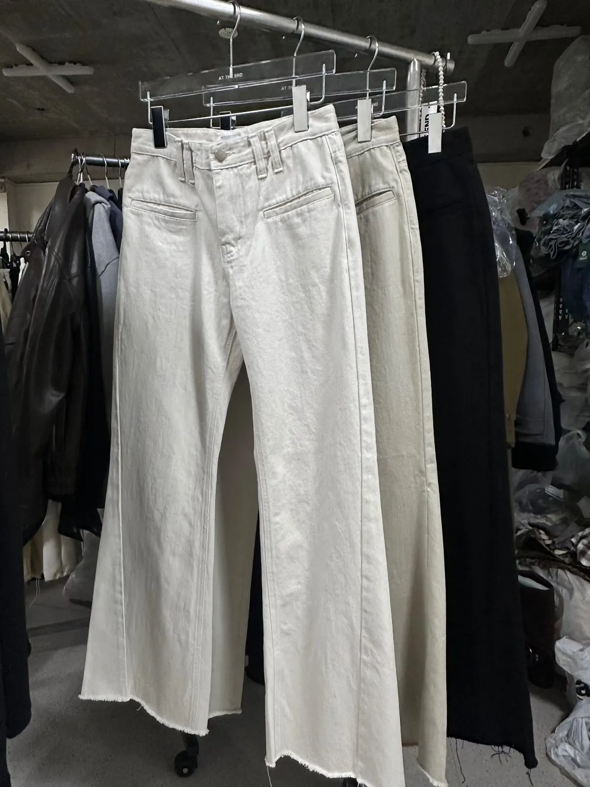 26DD20 前口袋斜紋中腰小喇叭長褲 3色 SM