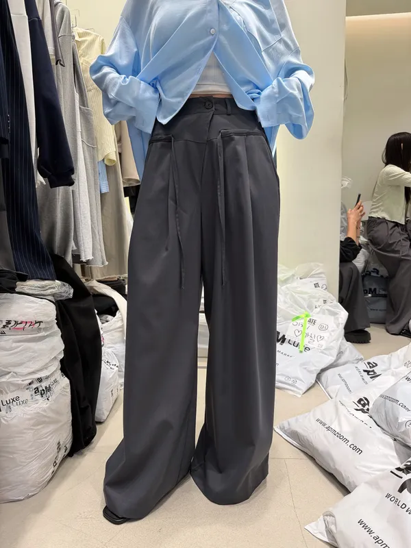 26DD23 寬鬆腰繩雪紡寬管西褲 4色