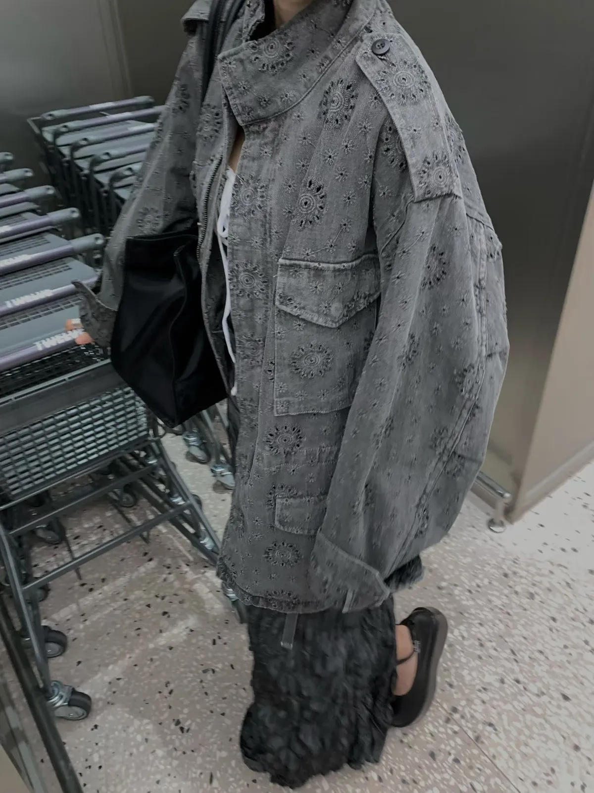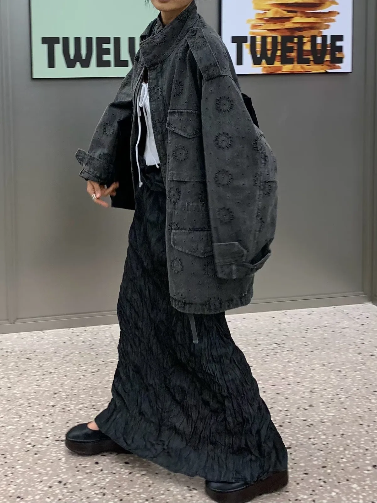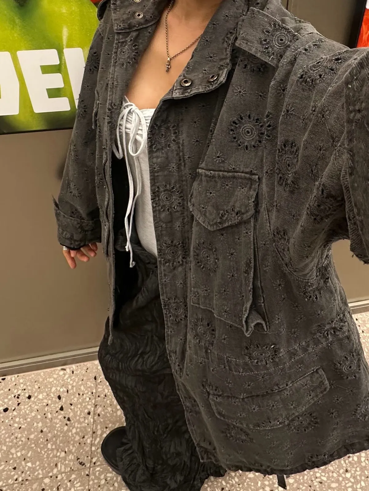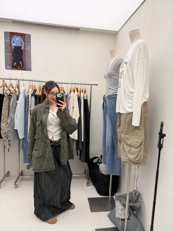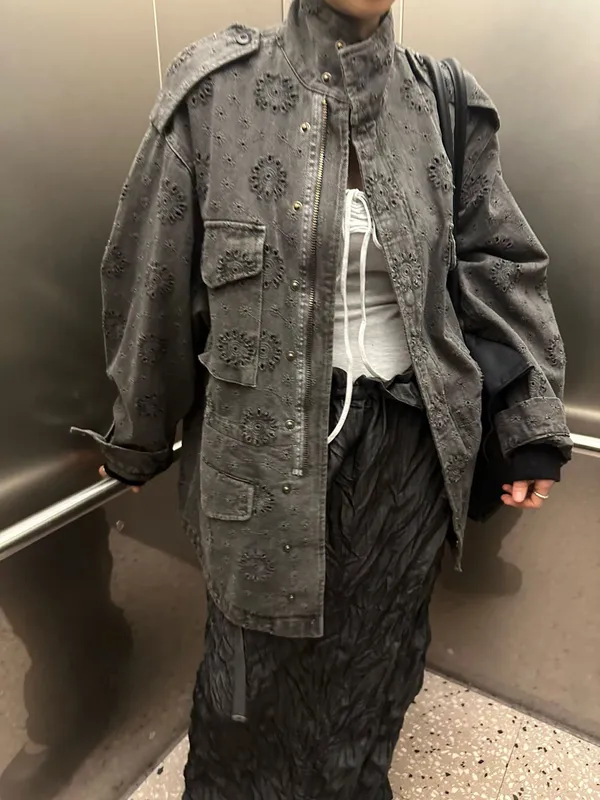 26DE03 神美)燒花中長版軍外套 2色